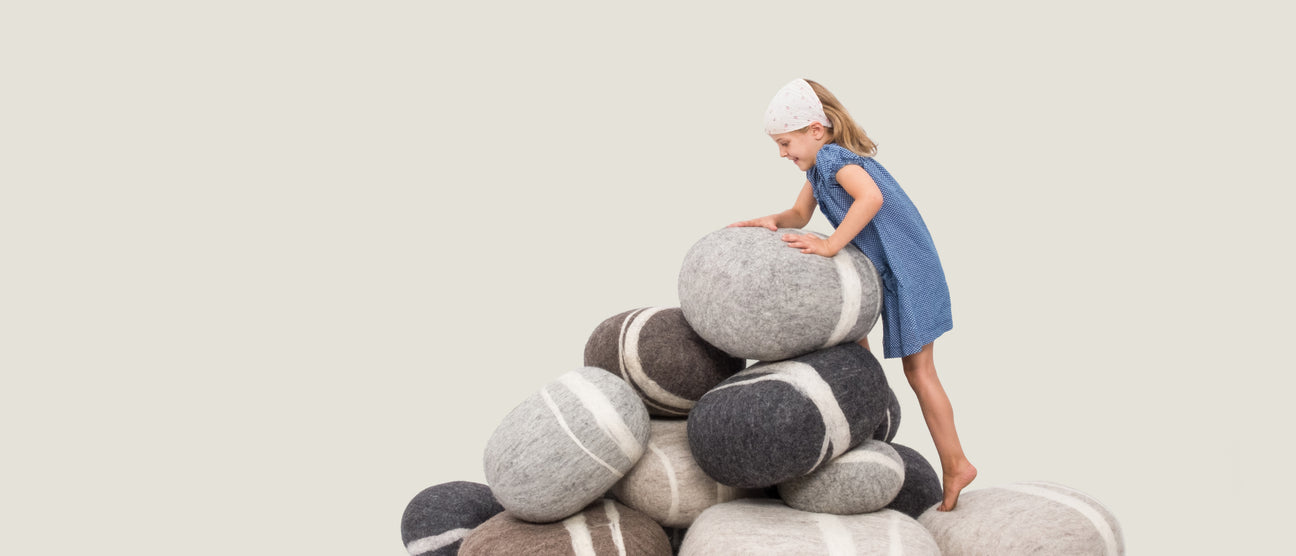 Jedes Kind ist einzigartig und so sind auch unsere Kieselsteine aus Filz und die bunt verspielten Colour Poufs in Handarbeit gefertigte Unikate. Sie werten das Kinderzimmer als natürliches Gestaltungselement, als Accessoire in Kombination mit den verschiedenen myfelt Filzteppichen oder als weiches Sitz- und Spielelement sichtbar auf. Zwei übereinander gestapelte Poufs bieten darüber hinaus auch eine praktische Sitzhöhe für Erwachsene.