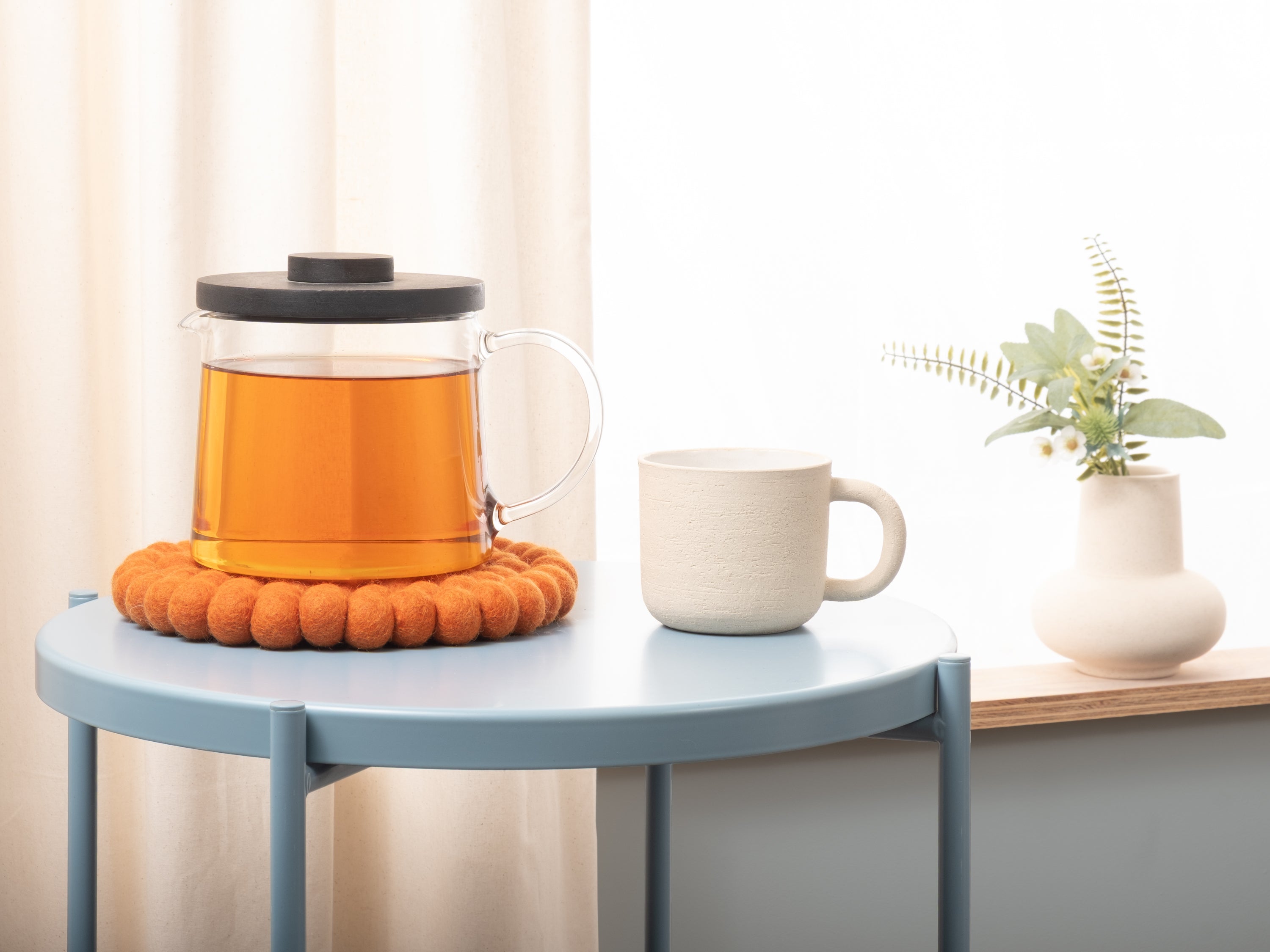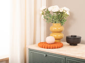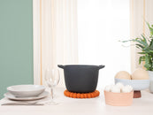 Runder, orangefarbener Topfuntersetzer aus reiner Schurwolle