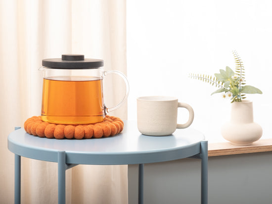 Der Topfuntersetzer Afra in der Farbe Orange verbindet Funktion mit charmanter Optik. Robust, hitzebeständig, wasser- und schmutzabweisend sowie beidseitig verwendbar. Gefertigt aus reiner Schurwolle, von Hand in Nepal hergestellt und unter fairen Bedingungen produziert.