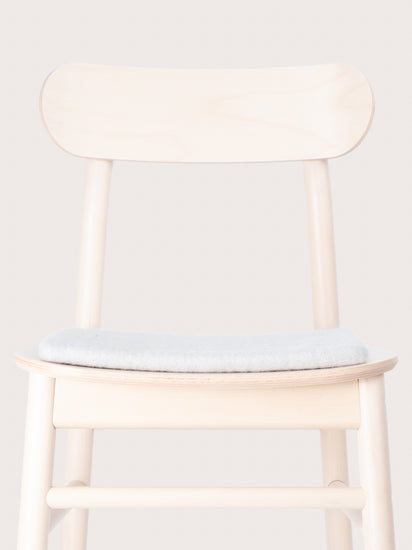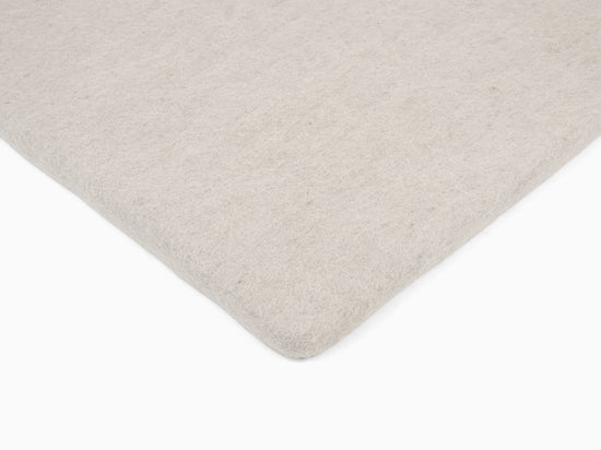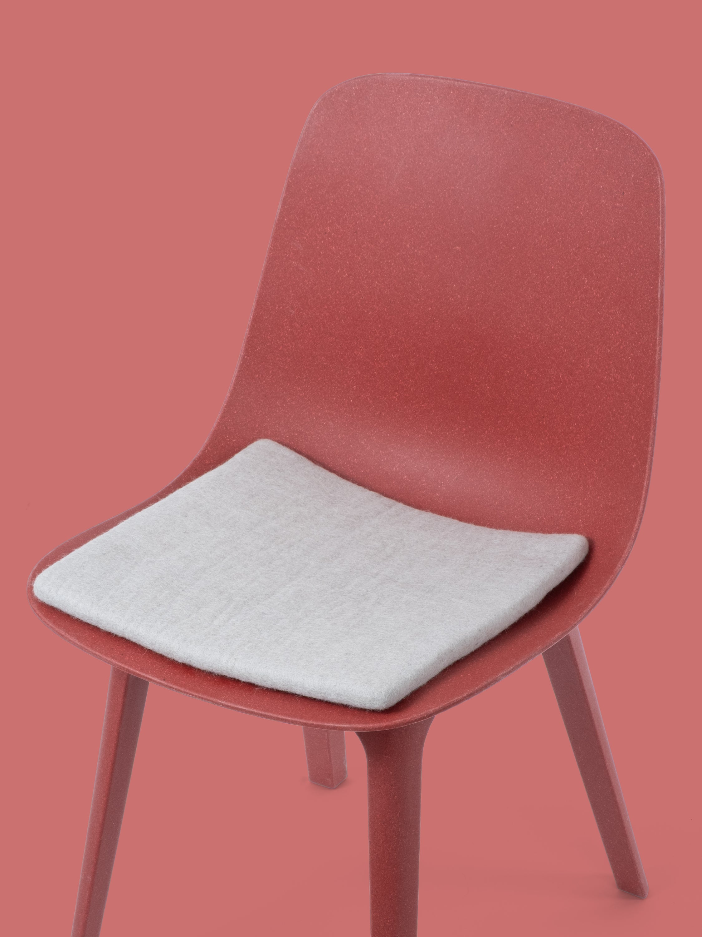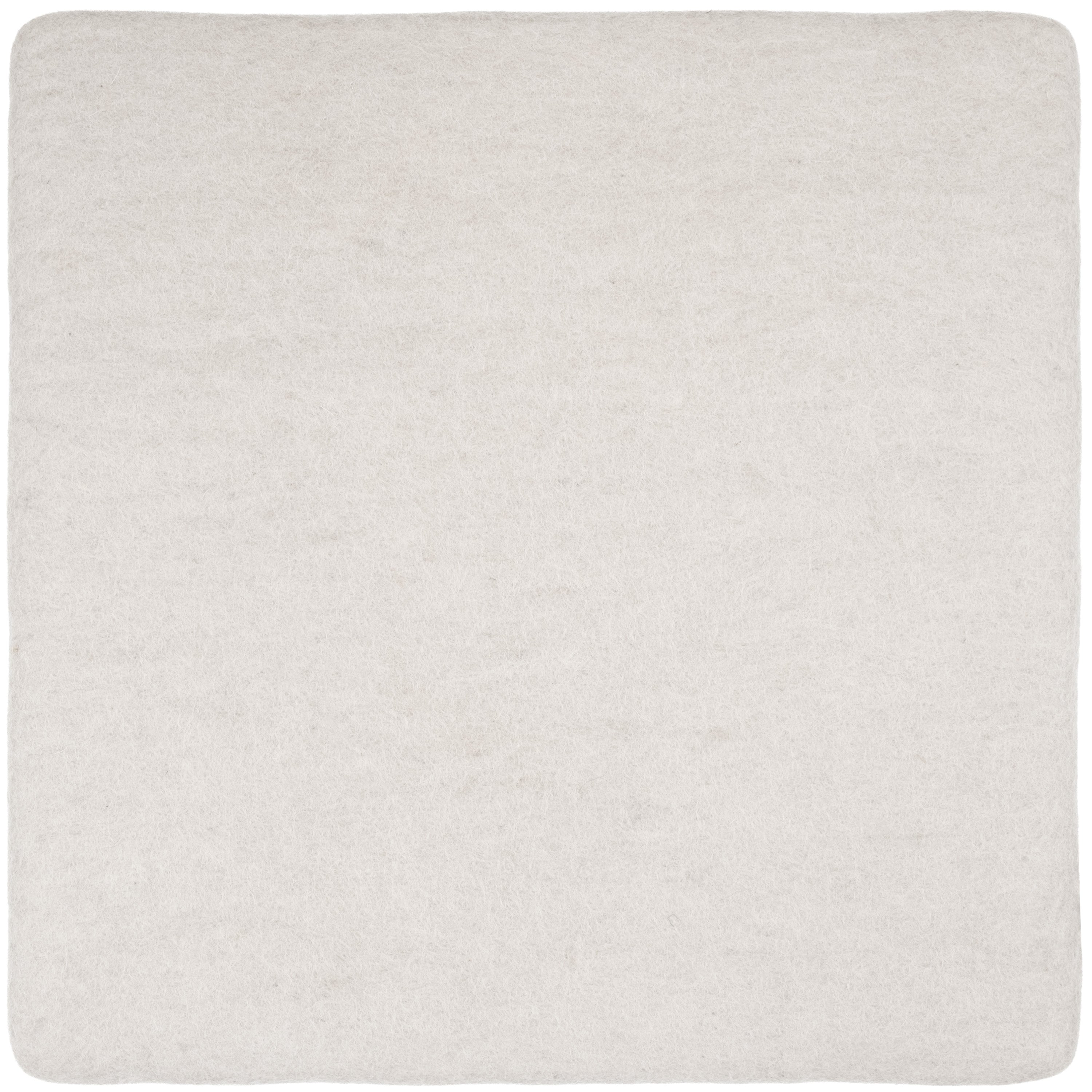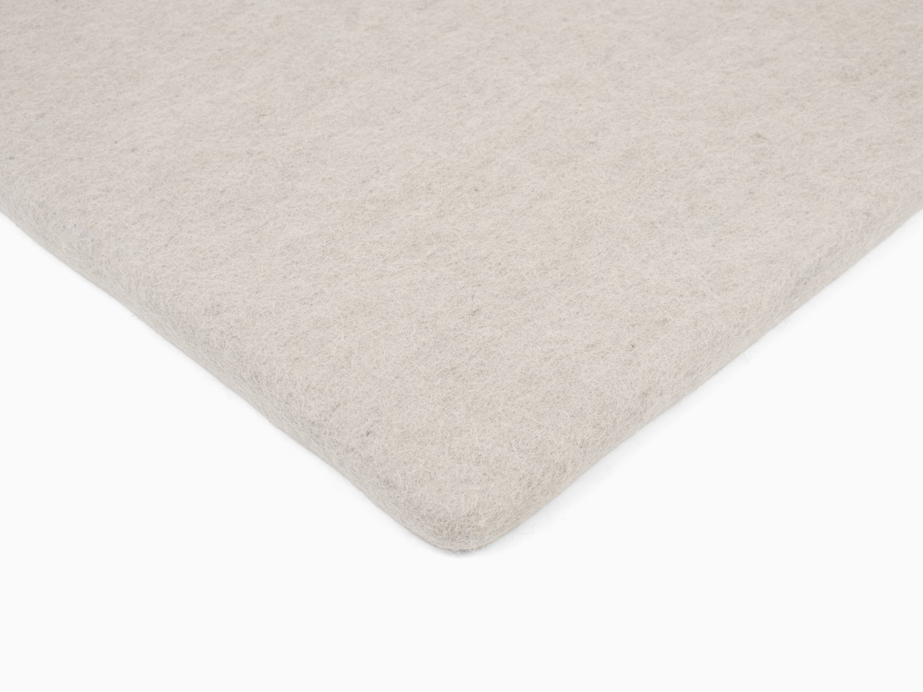 Quadratische, hellgraue flache Sitzauflage aus reiner Schurwolle.
