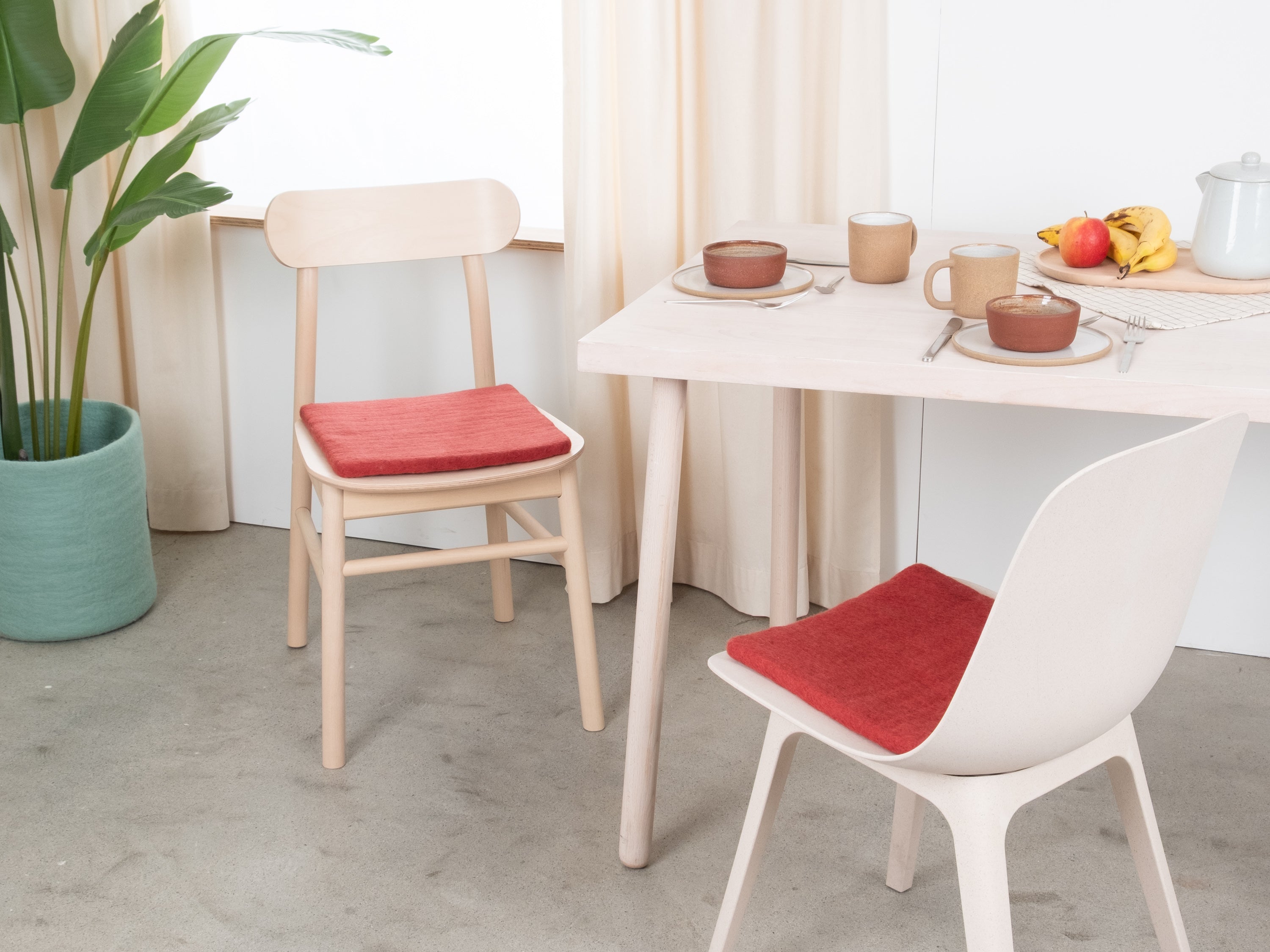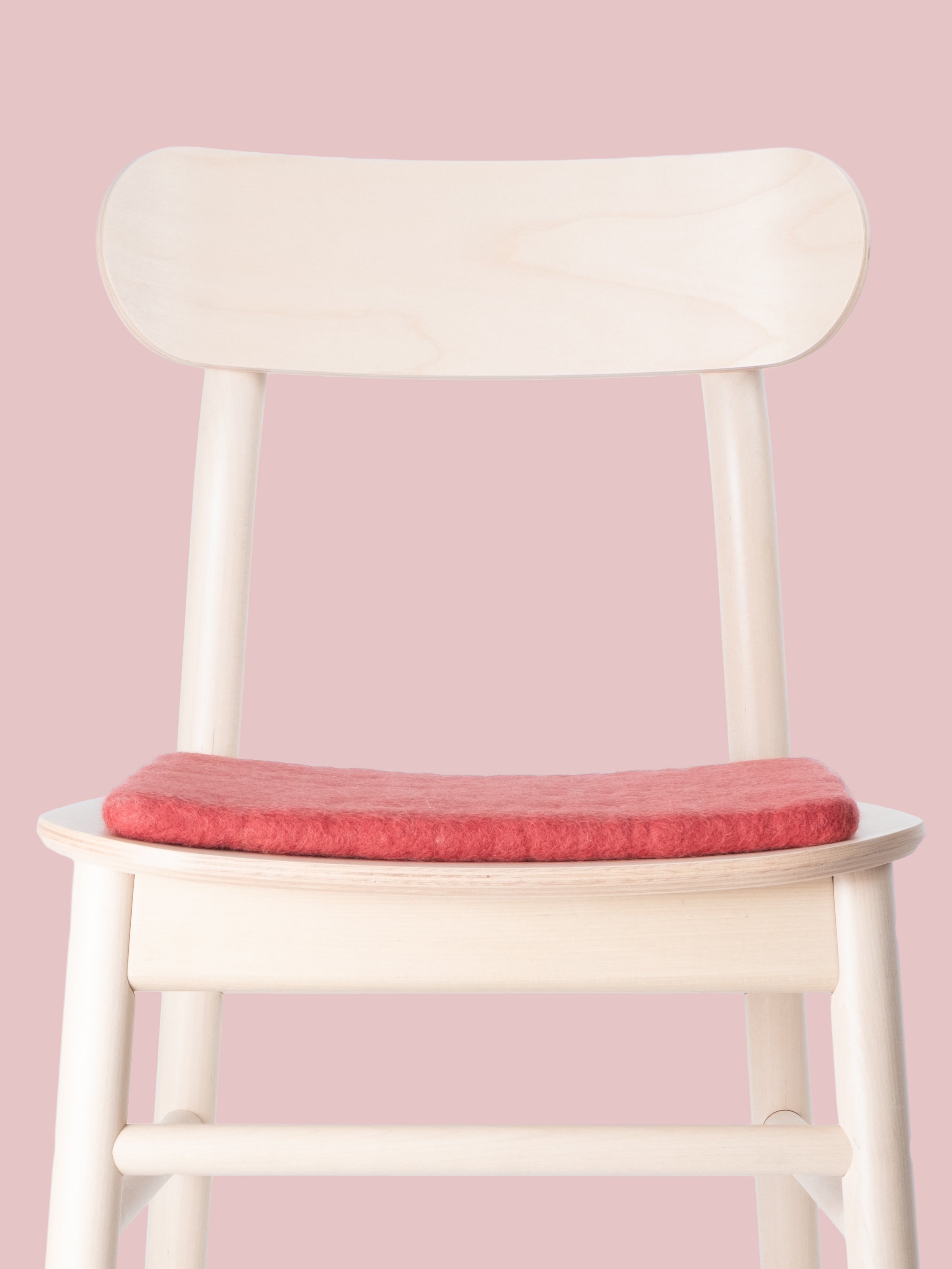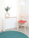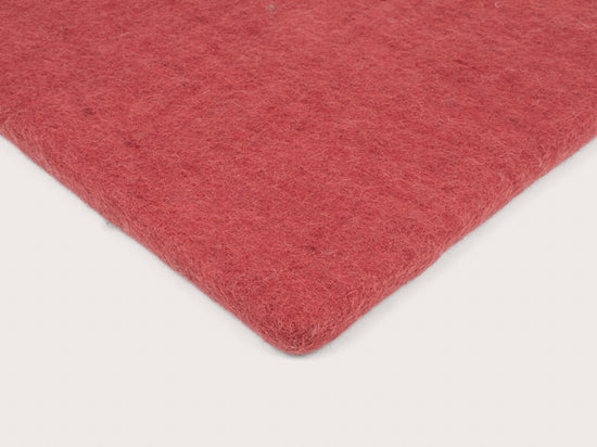 Die weinrote, flache Sitzauflage Kaja bringt Wärme und Weichheit auf deinen Lieblingsstuhl. Gefertigt aus reiner Schurwolle, von Hand in Nepal hergestellt und unter fairen Bedingungen produziert. myfelt Sitzauflagen sind wasser- und schmutzabweisend und beidseitig verwendbar.