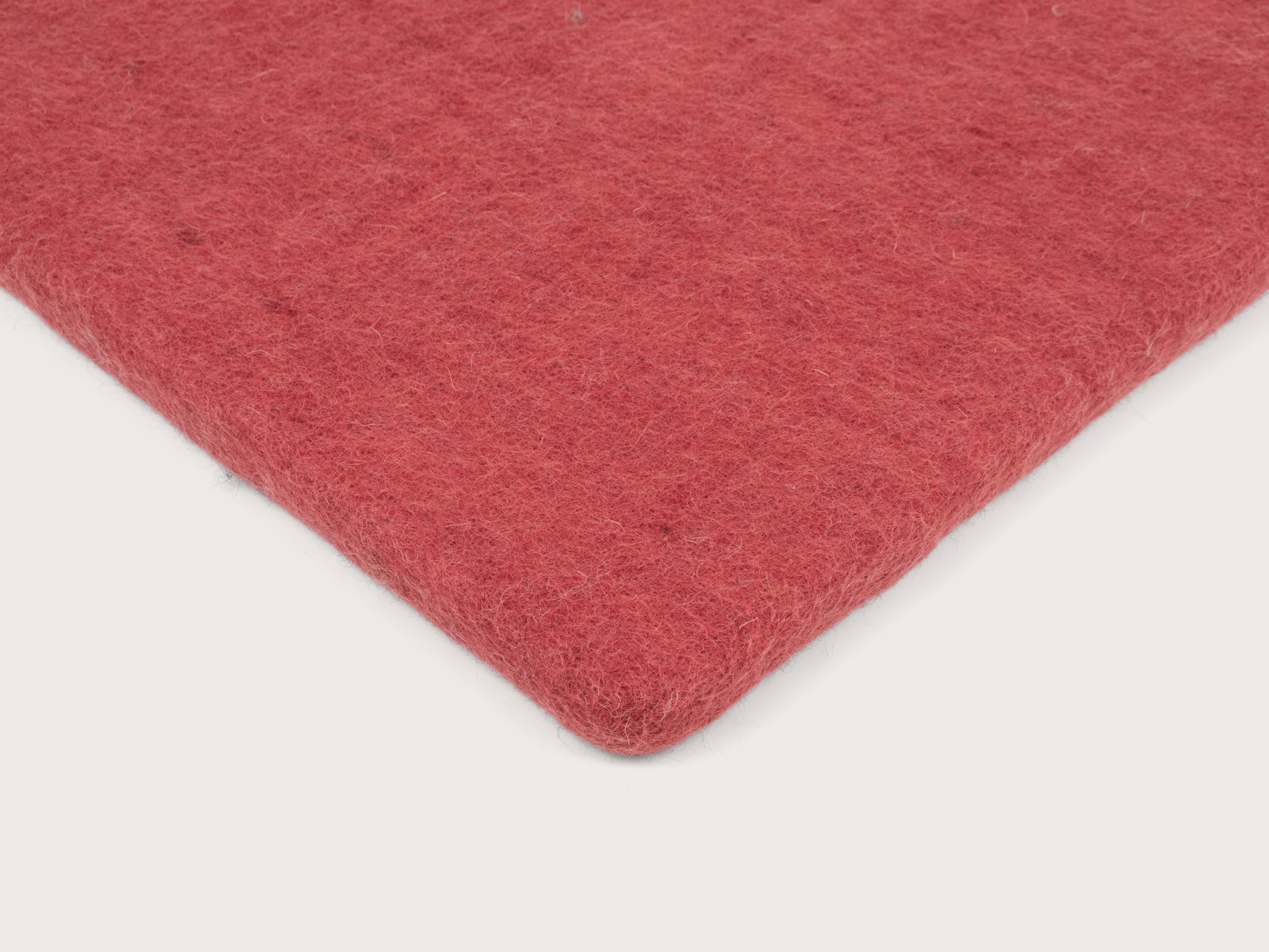 Quadratische, weinrote flache Sitzauflage aus reiner Schurwolle.