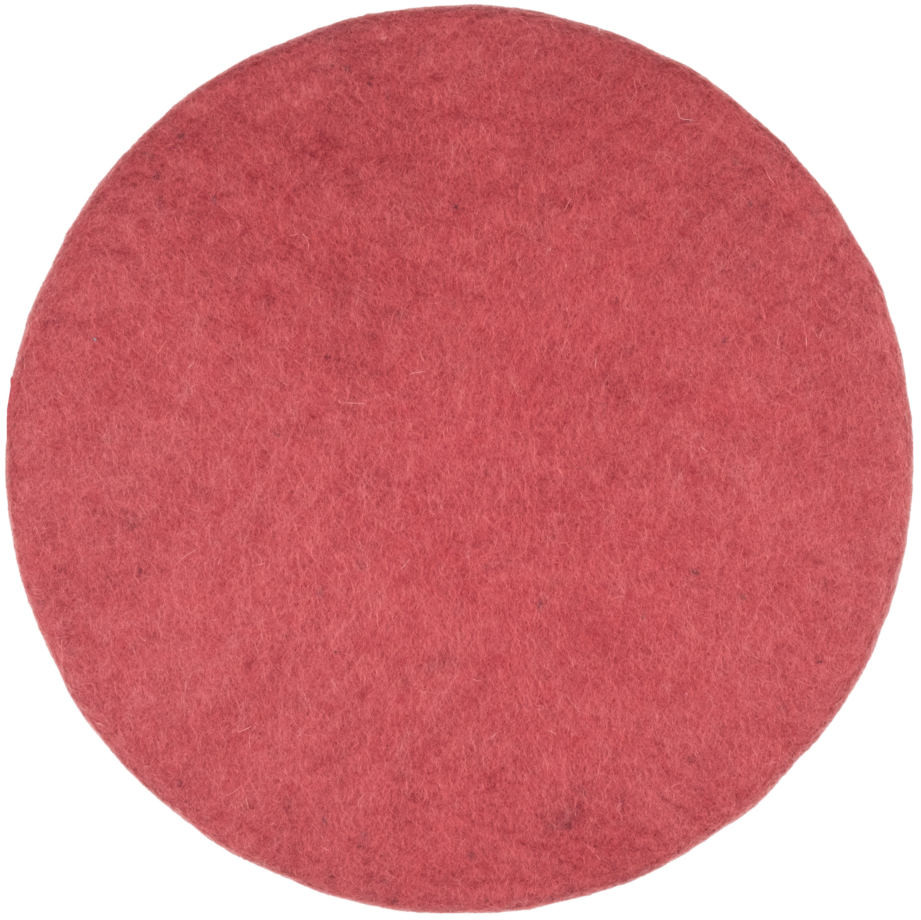 Runde, weinrote flache Sitzauflage aus reiner Schurwolle.