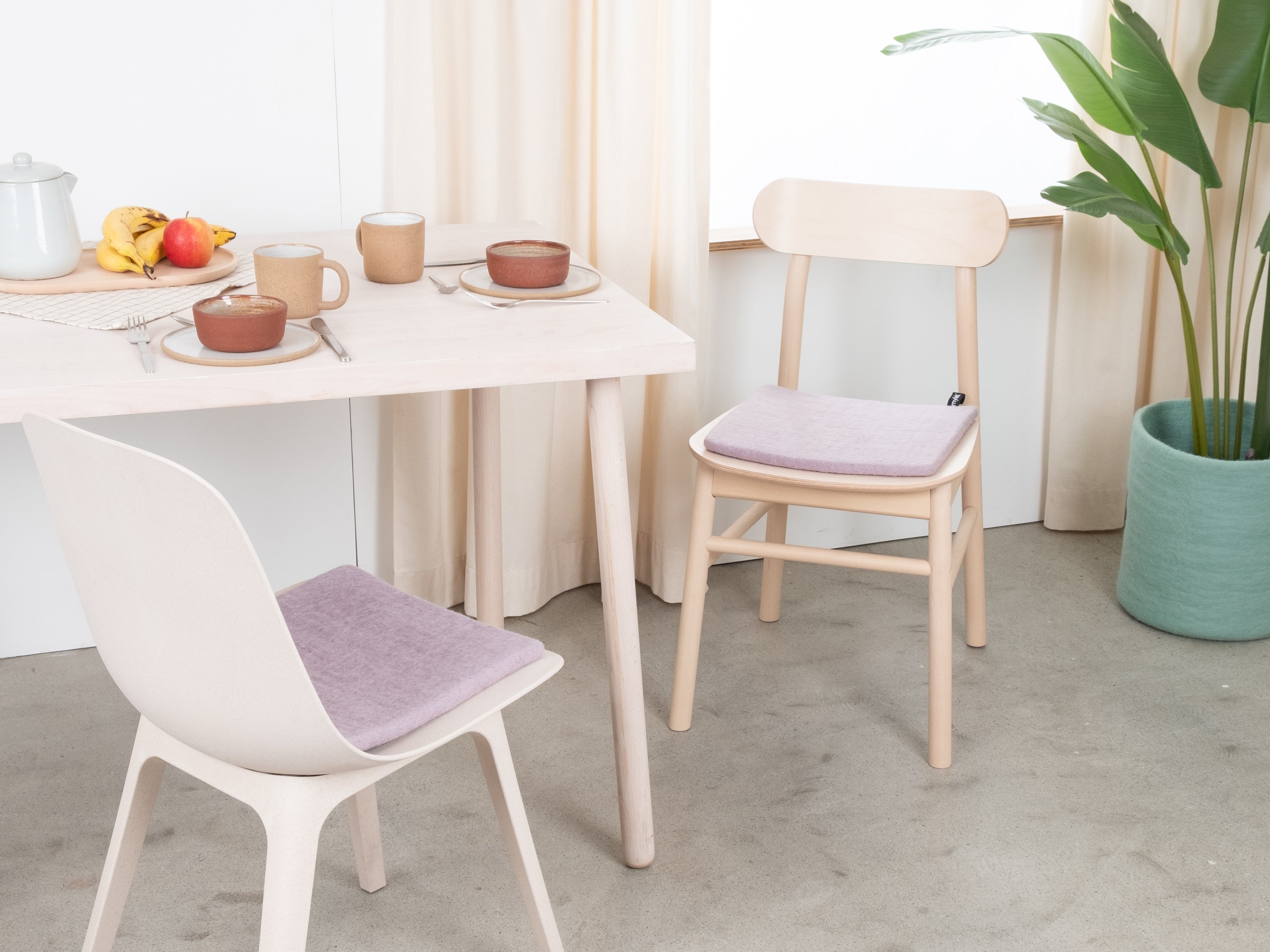 Die hellviolette, flache Sitzauflage Marla bringt Wärme und Weichheit auf deinen Lieblingsstuhl. Gefertigt aus reiner Schurwolle, von Hand in Nepal hergestellt und unter fairen Bedingungen produziert. myfelt Sitzauflagen sind wasser- und schmutzabweisend und beidseitig verwendbar.