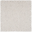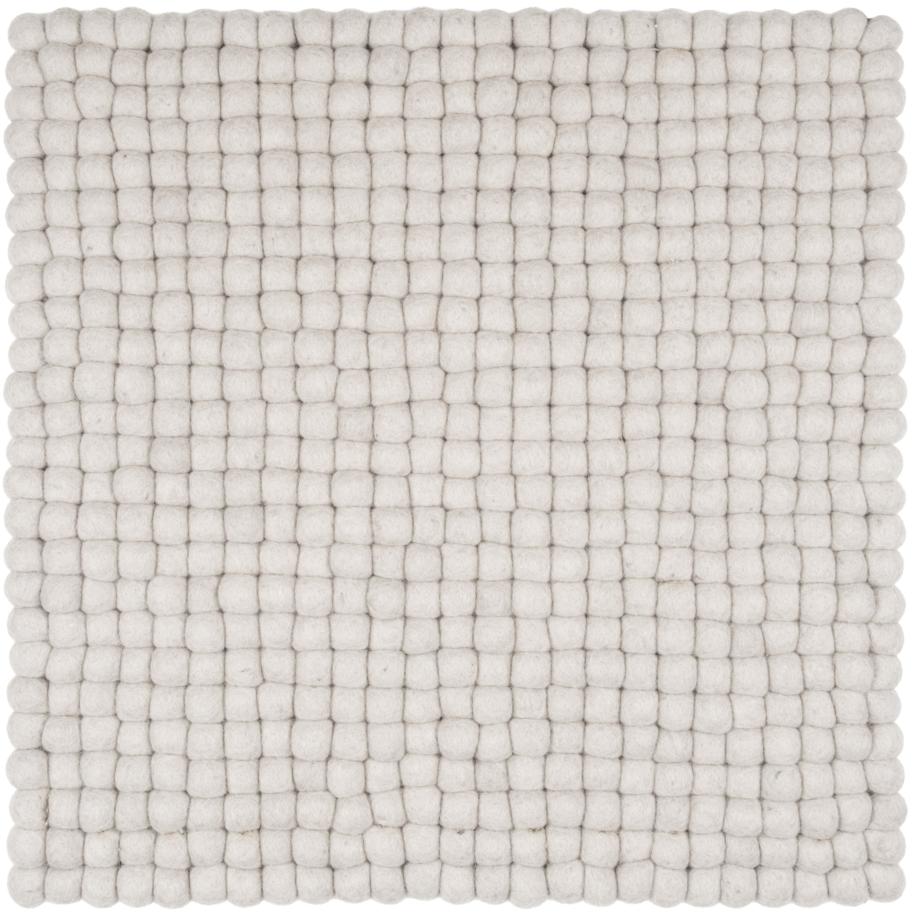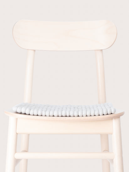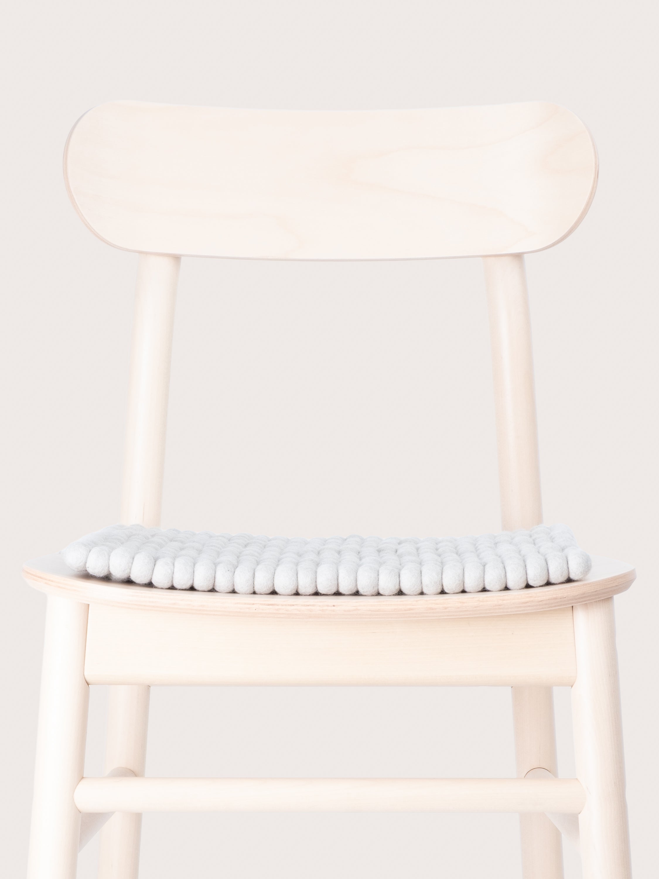 Quadratische, hellgraue Sitzauflage aus reiner Schurwolle.