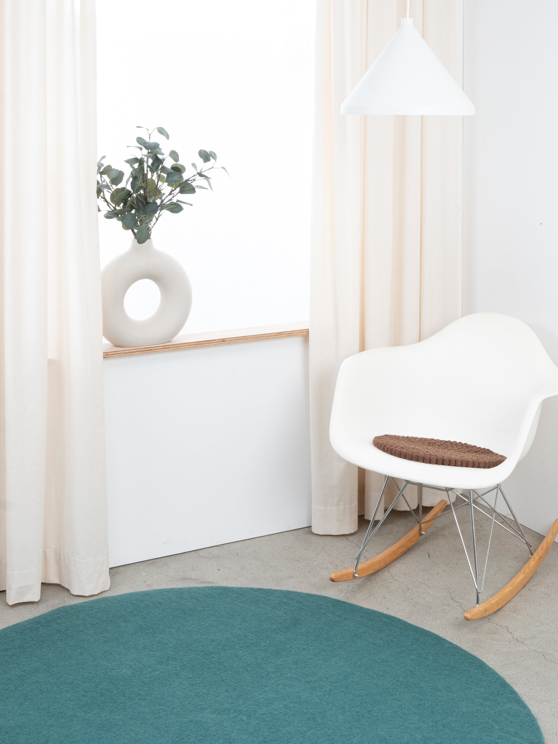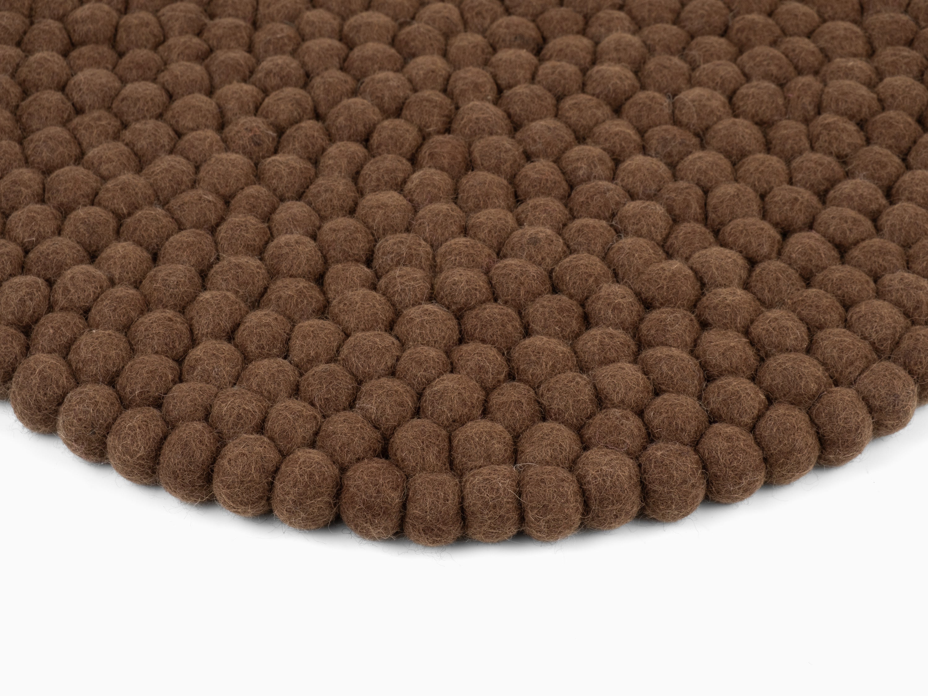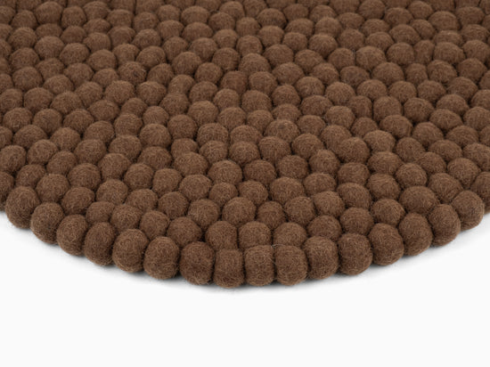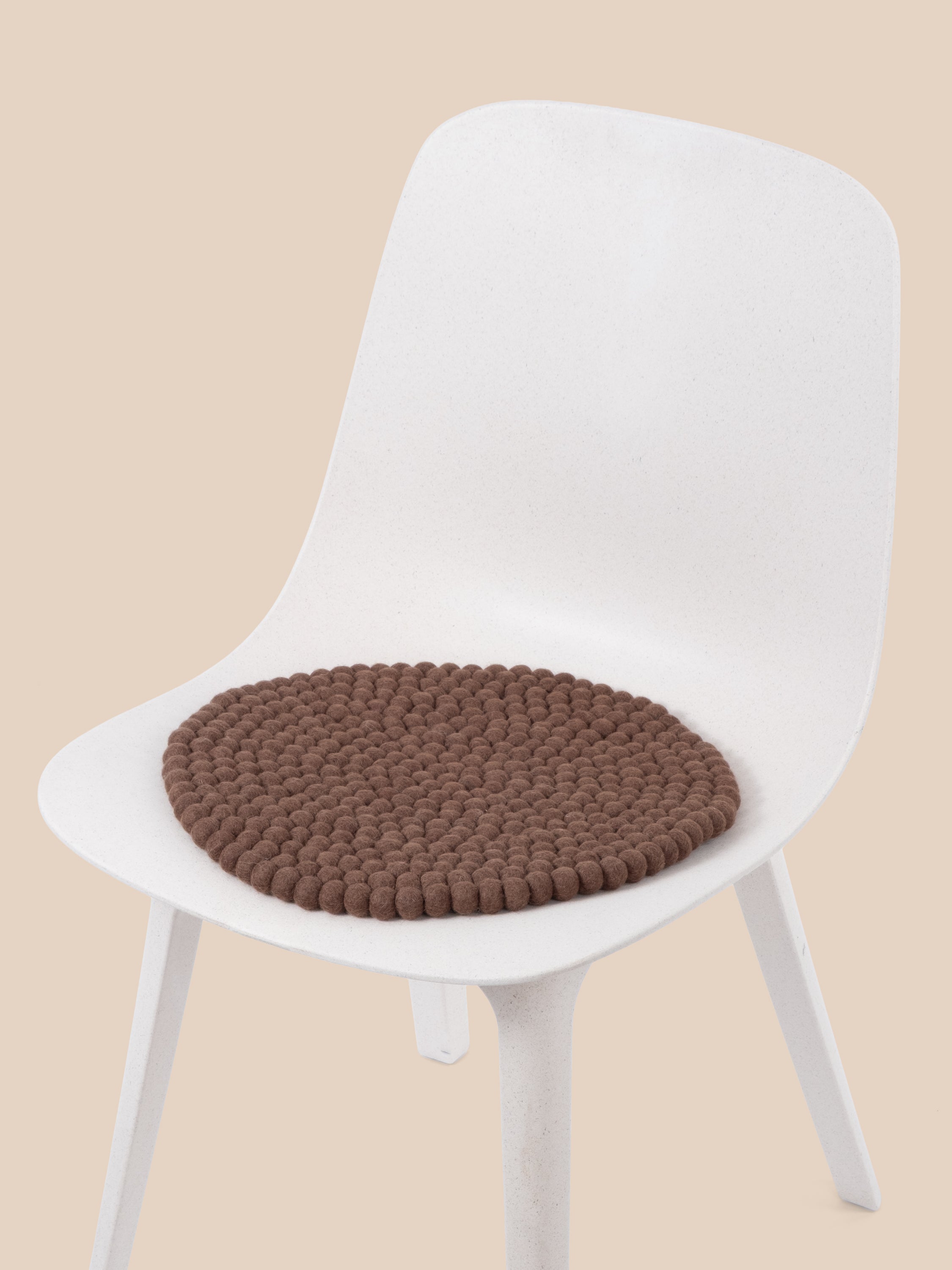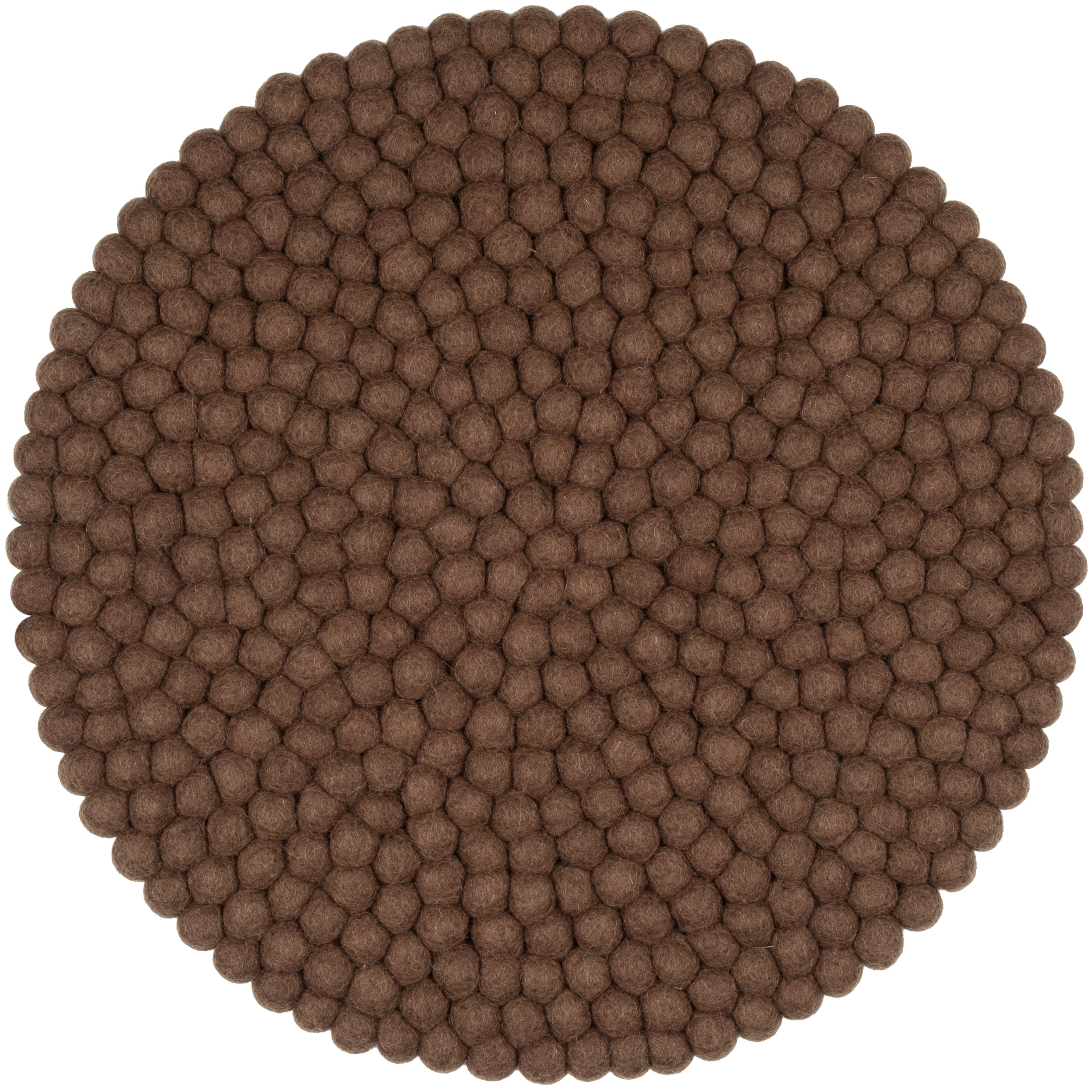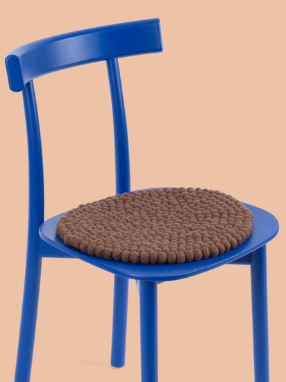 Runde, braune Sitzauflage aus reiner Schurwolle.