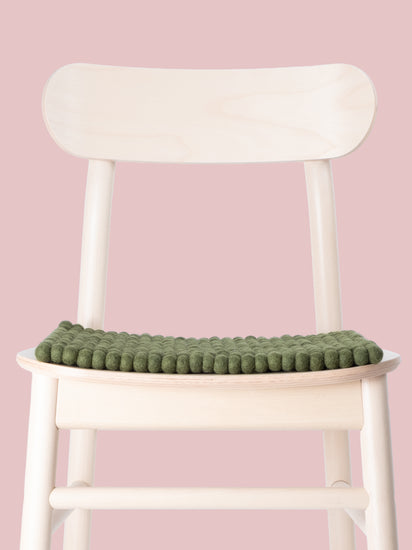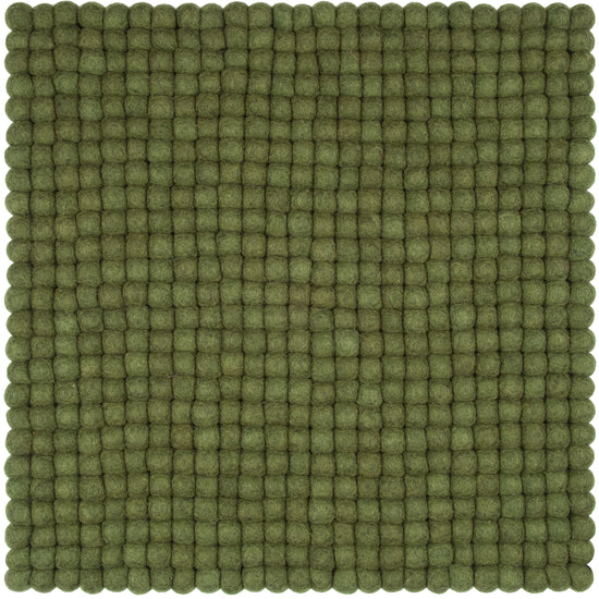 Quadratische, dunkelgrüne Sitzauflage aus reiner Schurwolle.