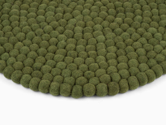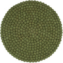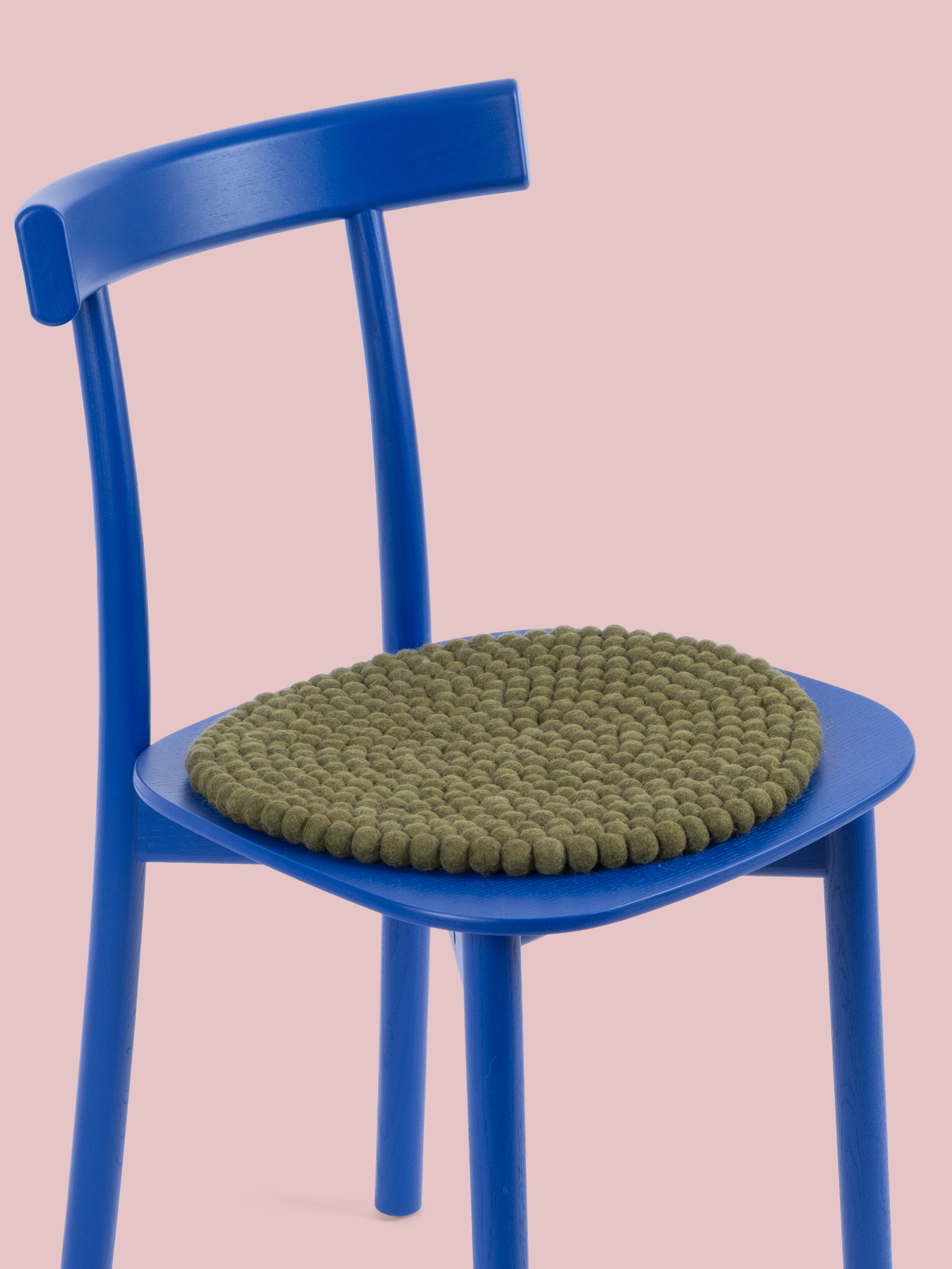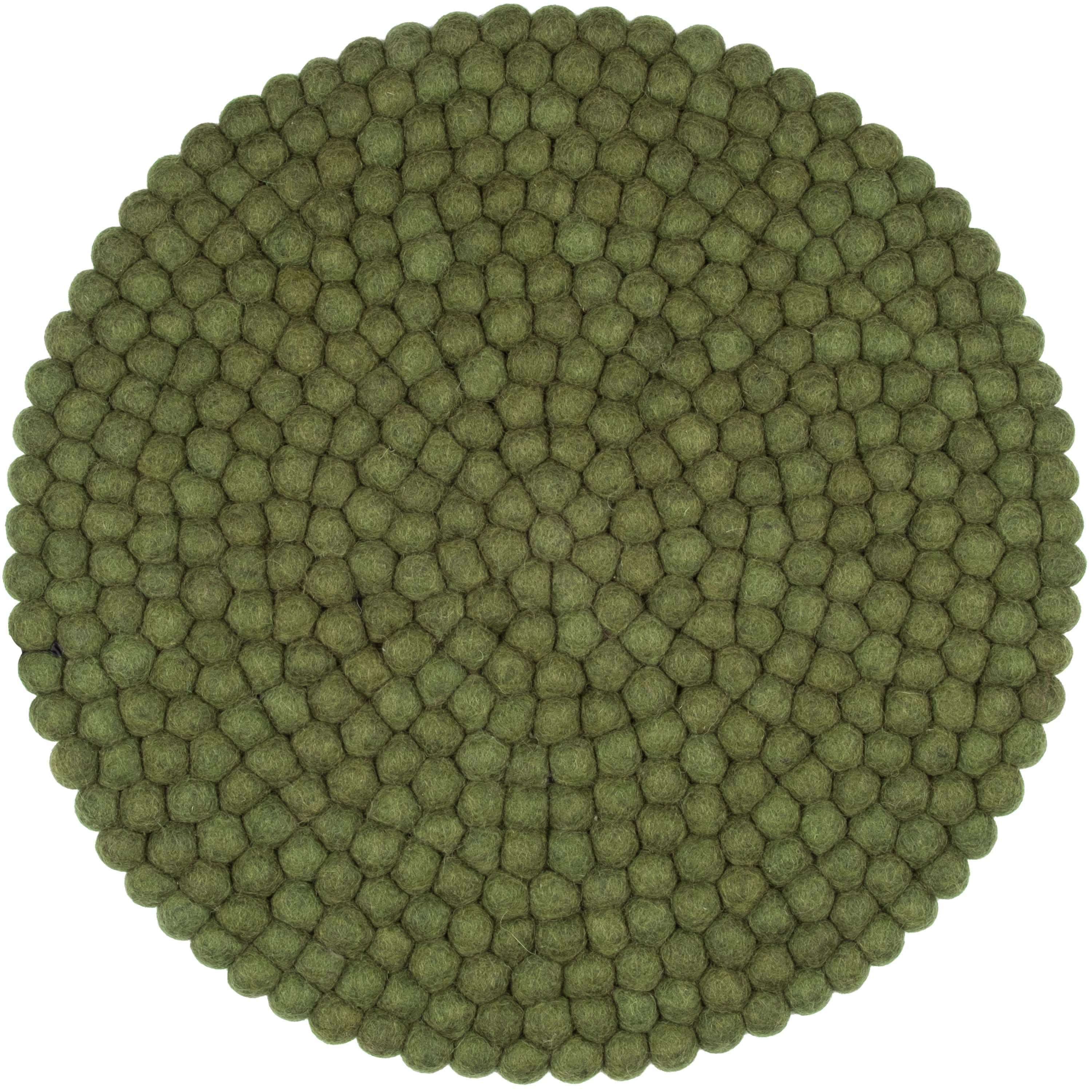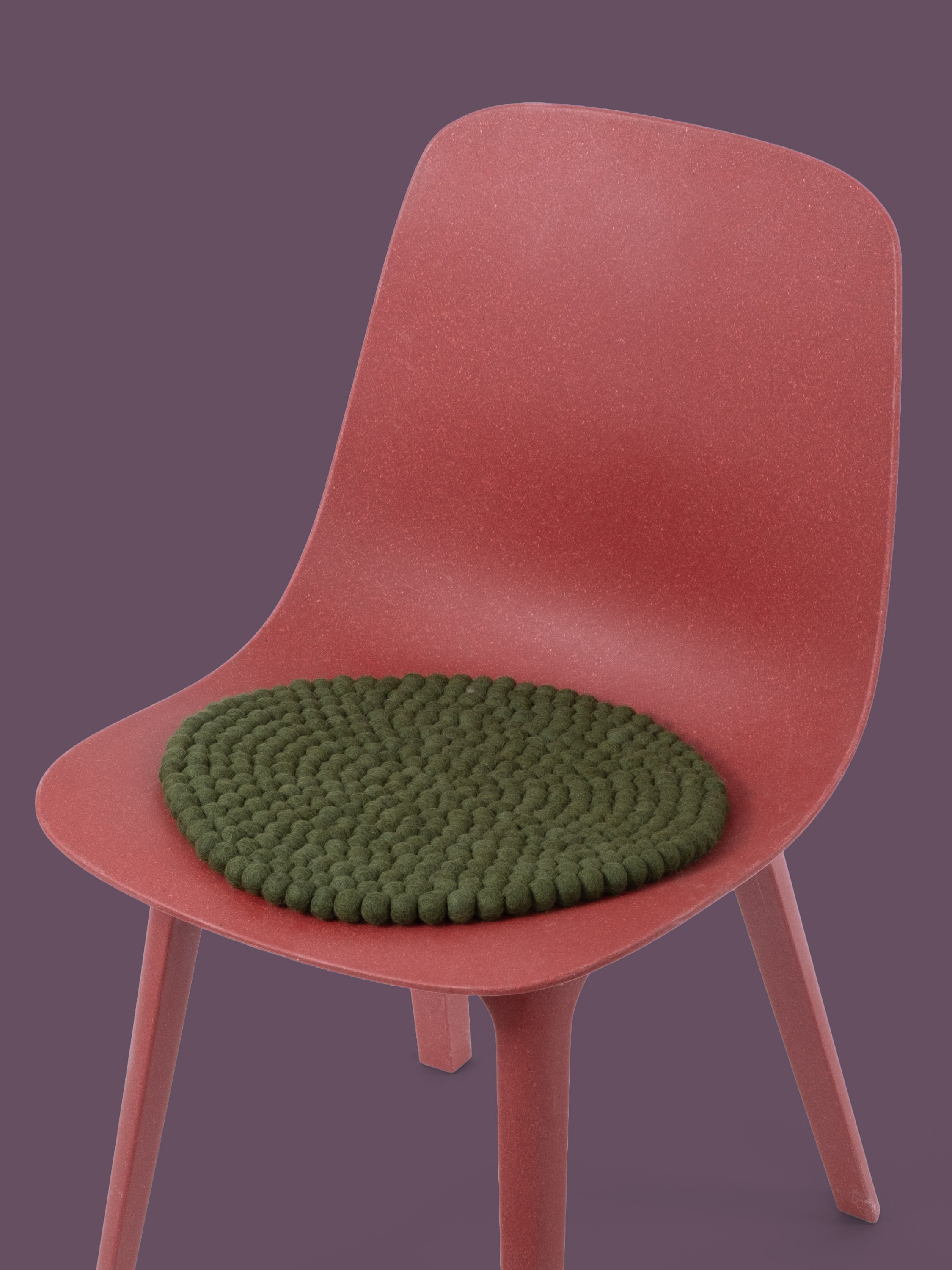 Runde, dunkelgrüne Sitzauflage aus reiner Schurwolle.