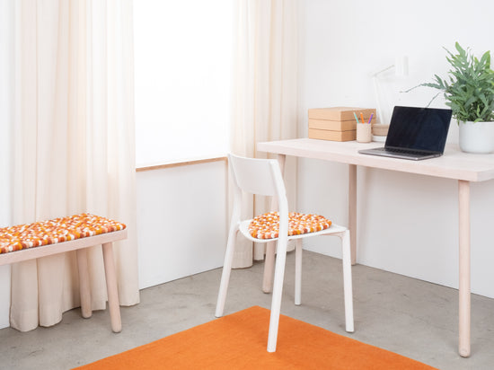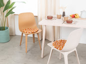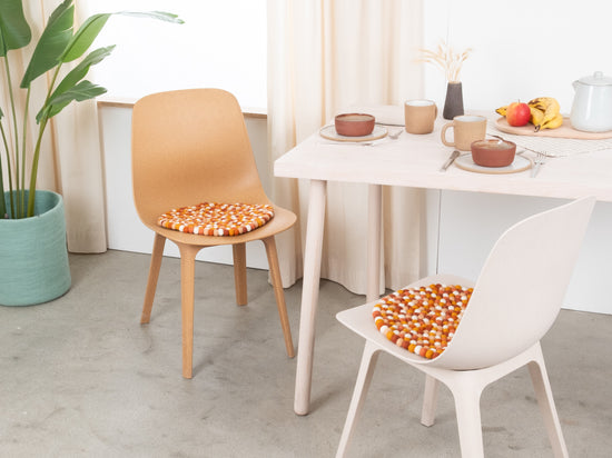 Die multifarbene Sitzauflage Juna bringt Wärme und Weichheit auf deinen Lieblingsstuhl. Gefertigt aus reiner Schurwolle, von Hand in Nepal hergestellt und unter fairen Bedingungen produziert. myfelt Sitzauflagen sind wasser- und schmutzabweisend und beidseitig verwendbar.