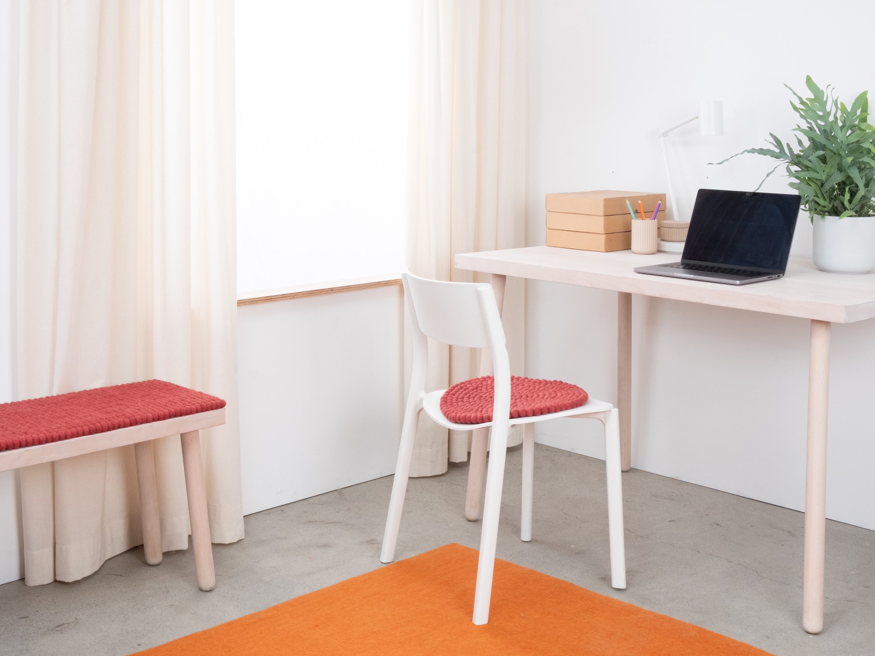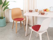 Die weinrote Sitzauflage Kaja bringt Wärme und Weichheit auf deinen Lieblingsstuhl. Gefertigt aus reiner Schurwolle, von Hand in Nepal hergestellt und unter fairen Bedingungen produziert. myfelt Sitzauflagen sind wasser- und schmutzabweisend und beidseitig verwendbar.
