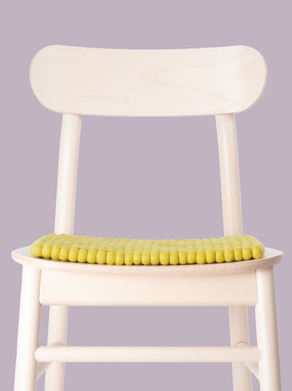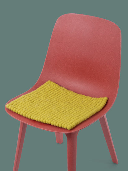 Die grüngelbe Sitzauflage Kata bringt Wärme und Weichheit auf deinen Lieblingsstuhl. Gefertigt aus reiner Schurwolle, von Hand in Nepal hergestellt und unter fairen Bedingungen produziert. myfelt Sitzauflagen sind wasser- und schmutzabweisend und beidseitig verwendbar.