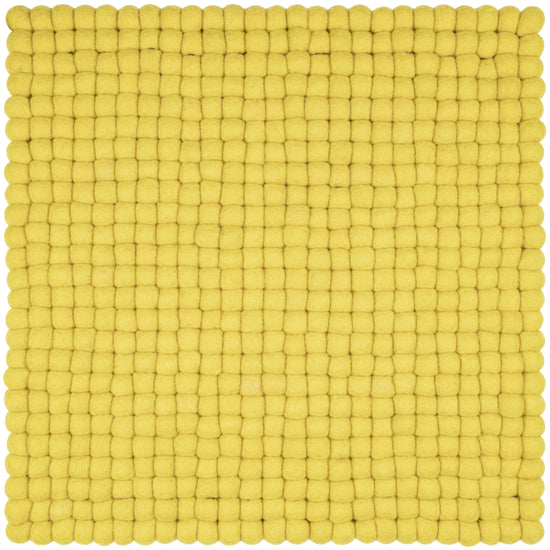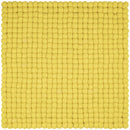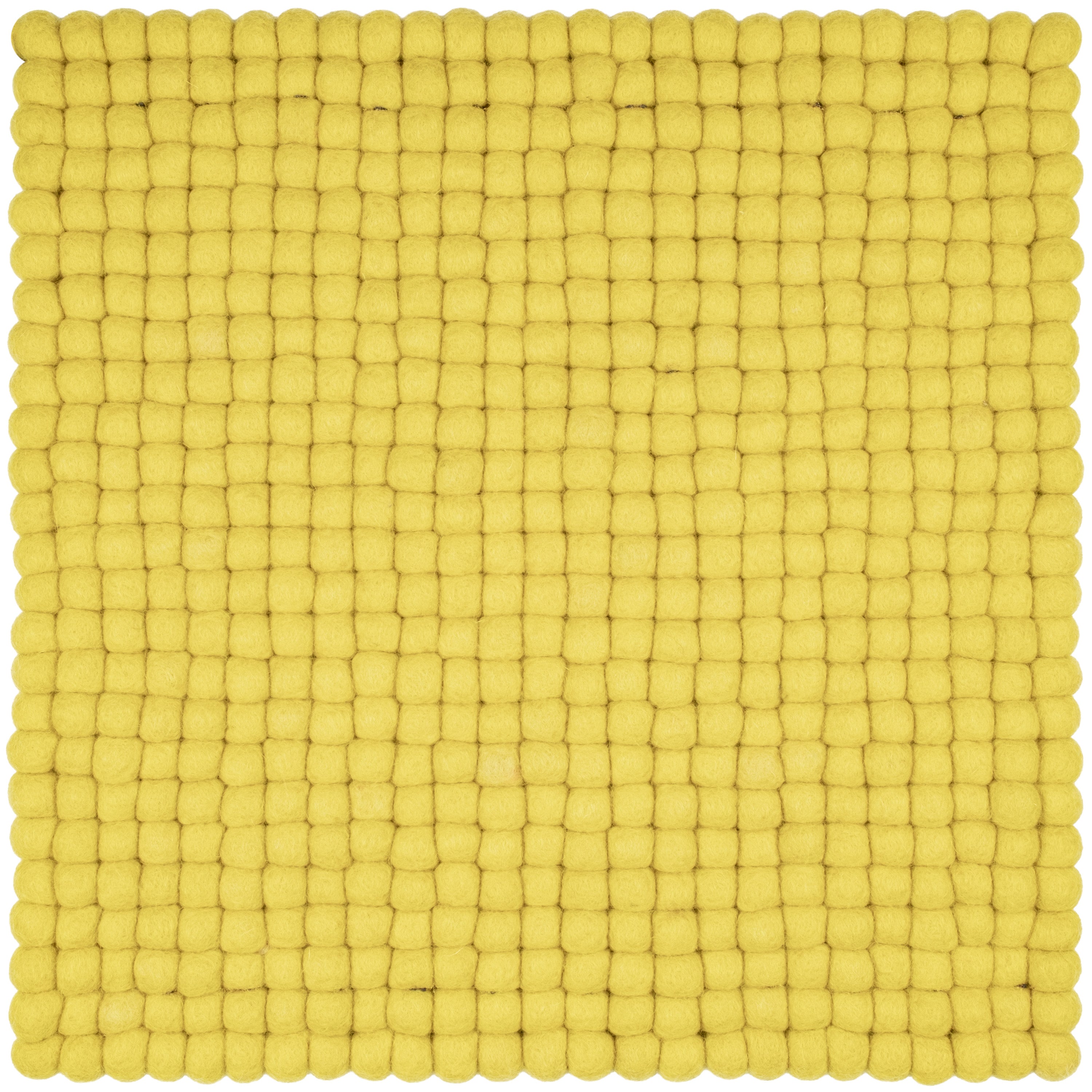 Quadratische, grüngelbe Sitzauflage aus reiner Schurwolle.