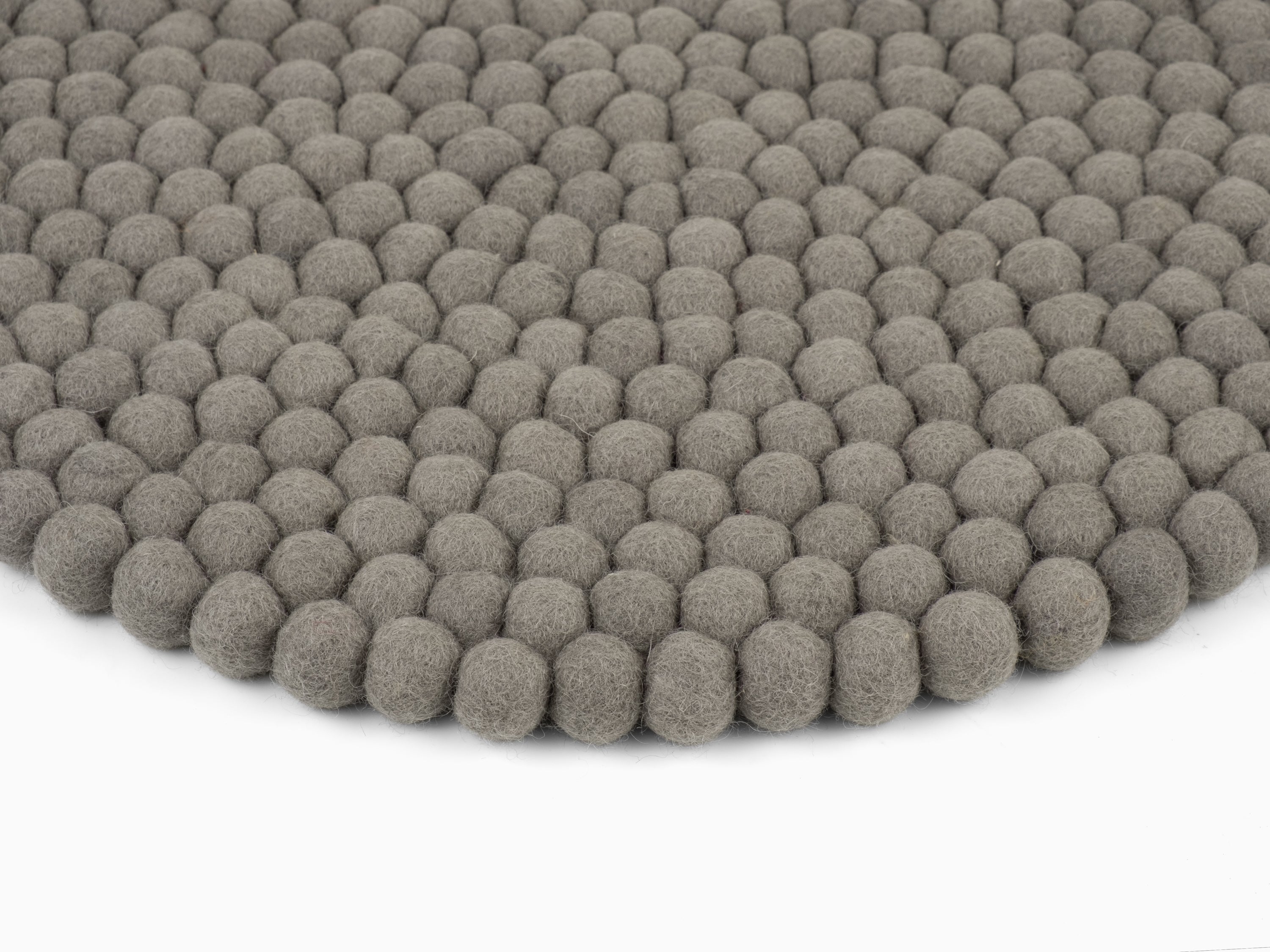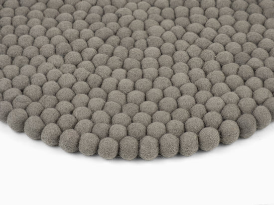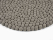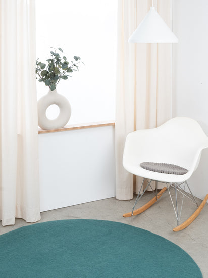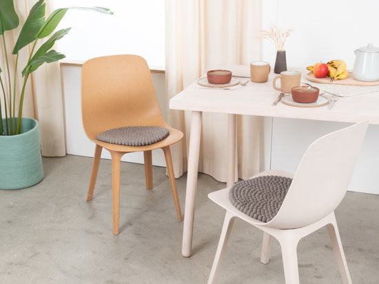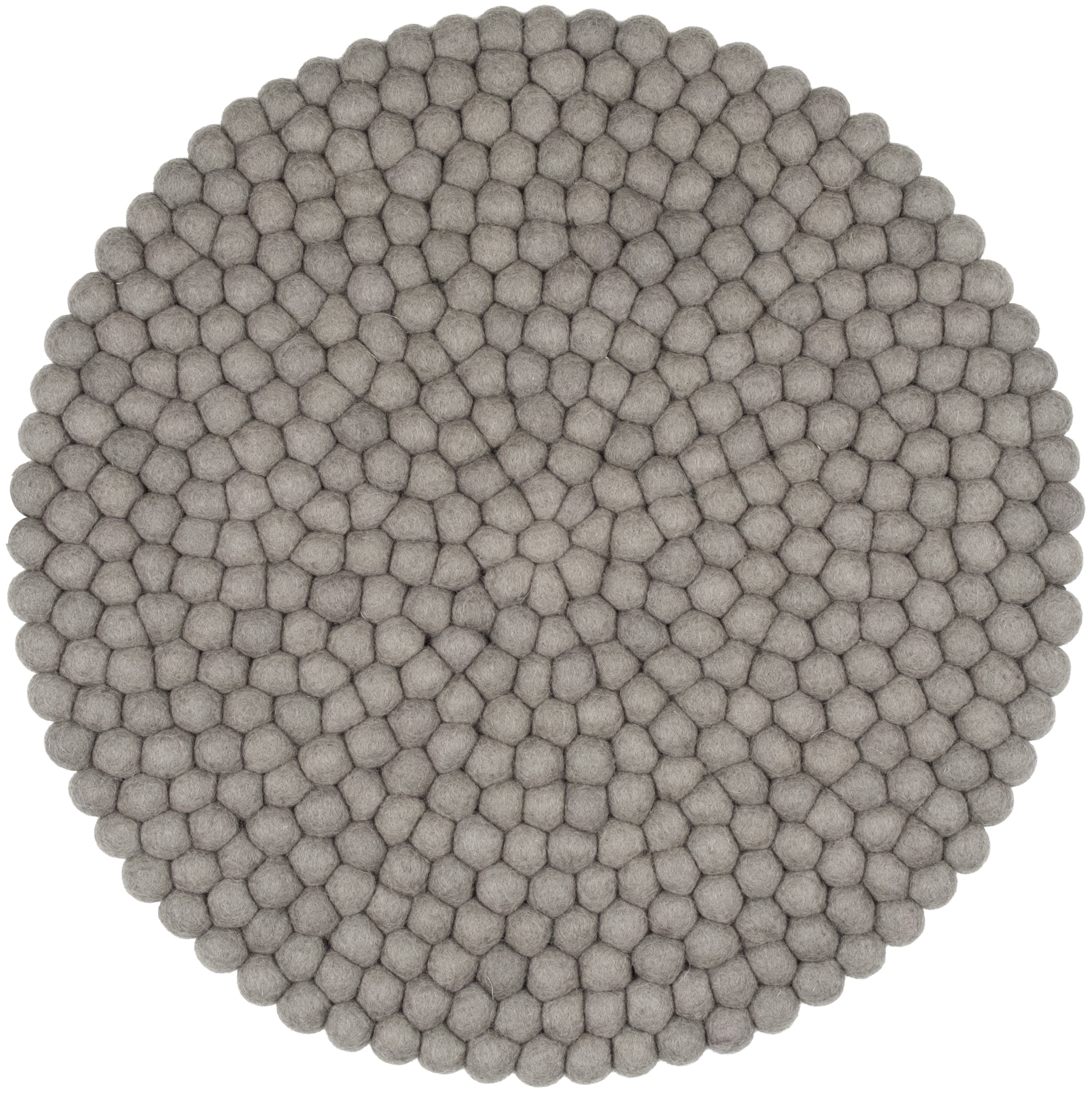 Runde, graue Sitzauflage aus reiner Schurwolle.