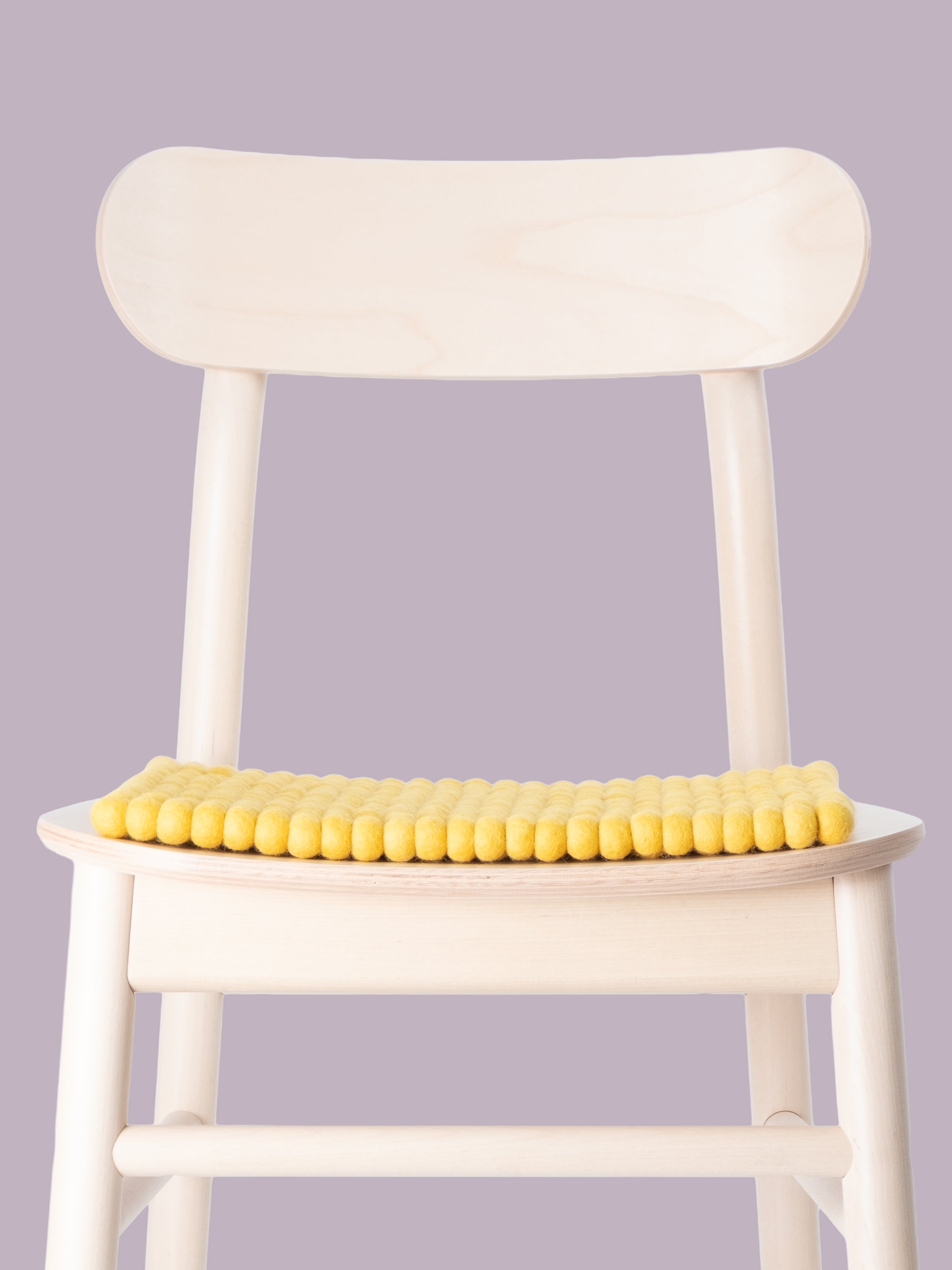 Quadratische, gelbe Sitzauflage aus reiner Schurwolle.