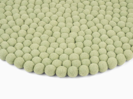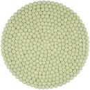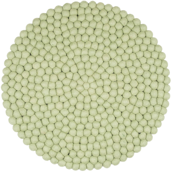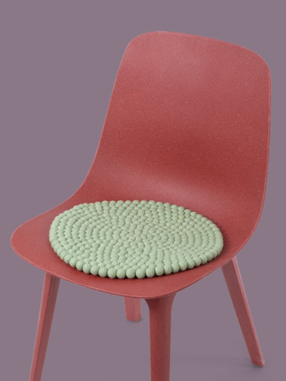 Runde, hellgrüne Sitzauflage aus reiner Schurwolle.