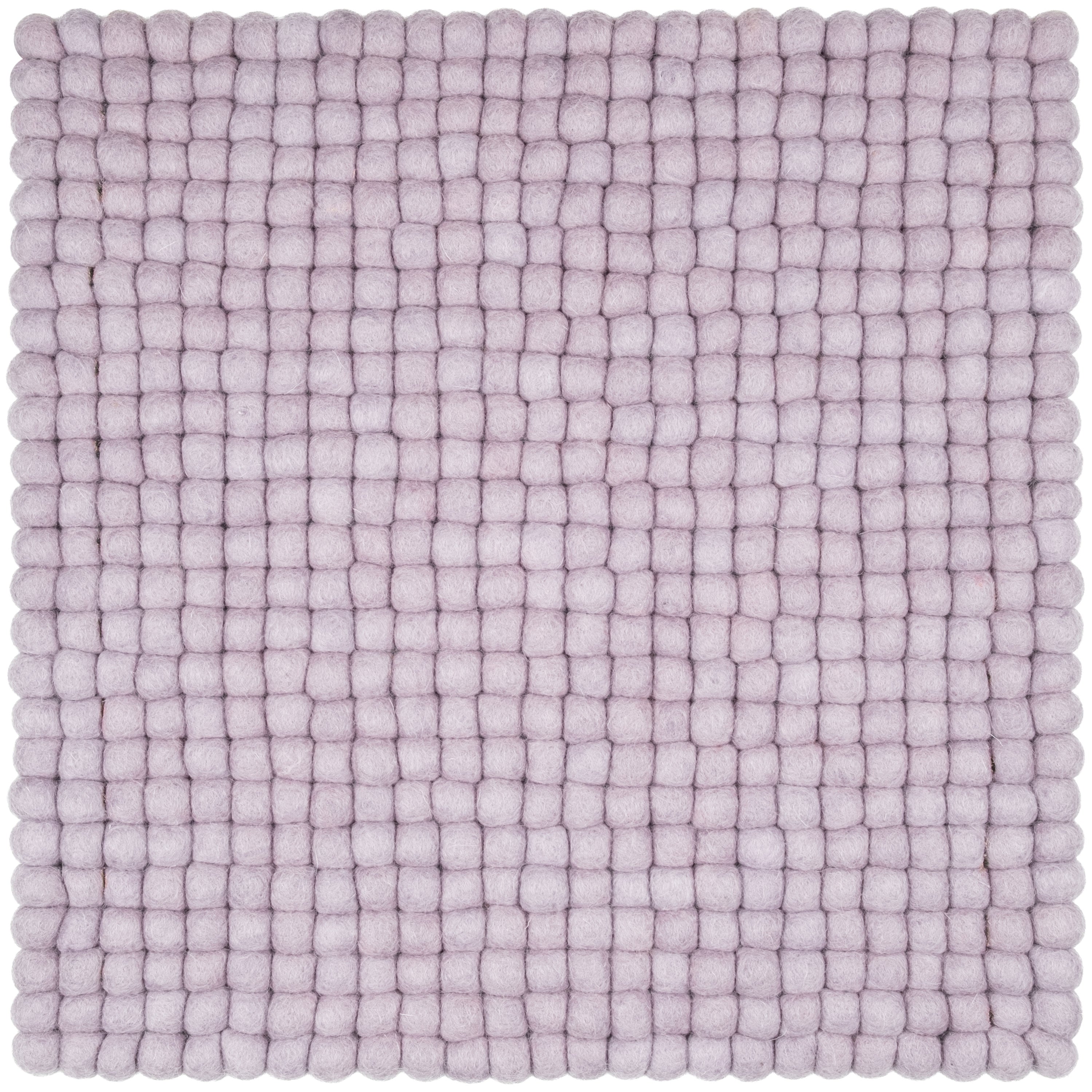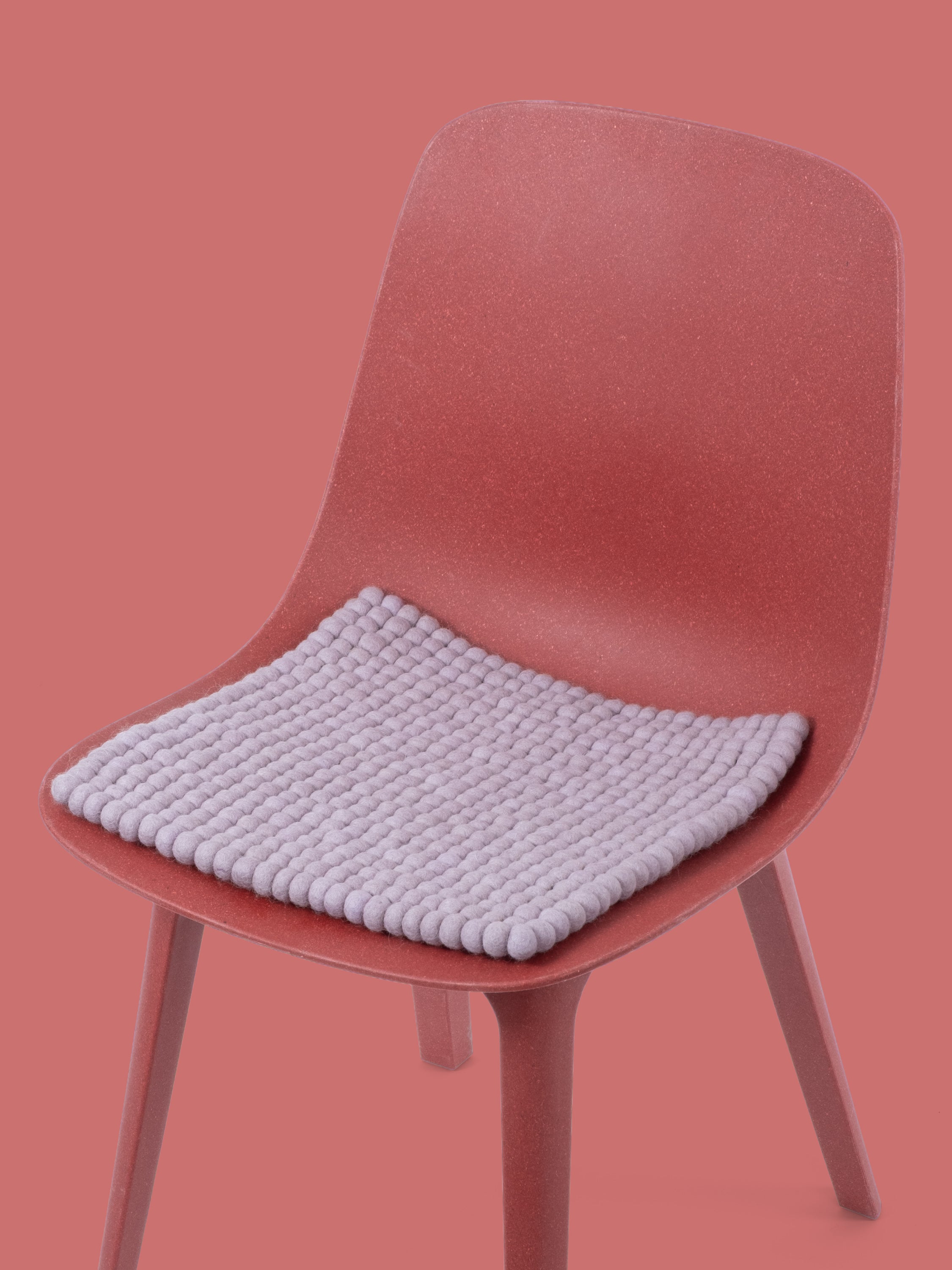 Quadratische, hellviolette Sitzauflage aus reiner Schurwolle.