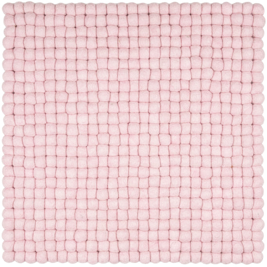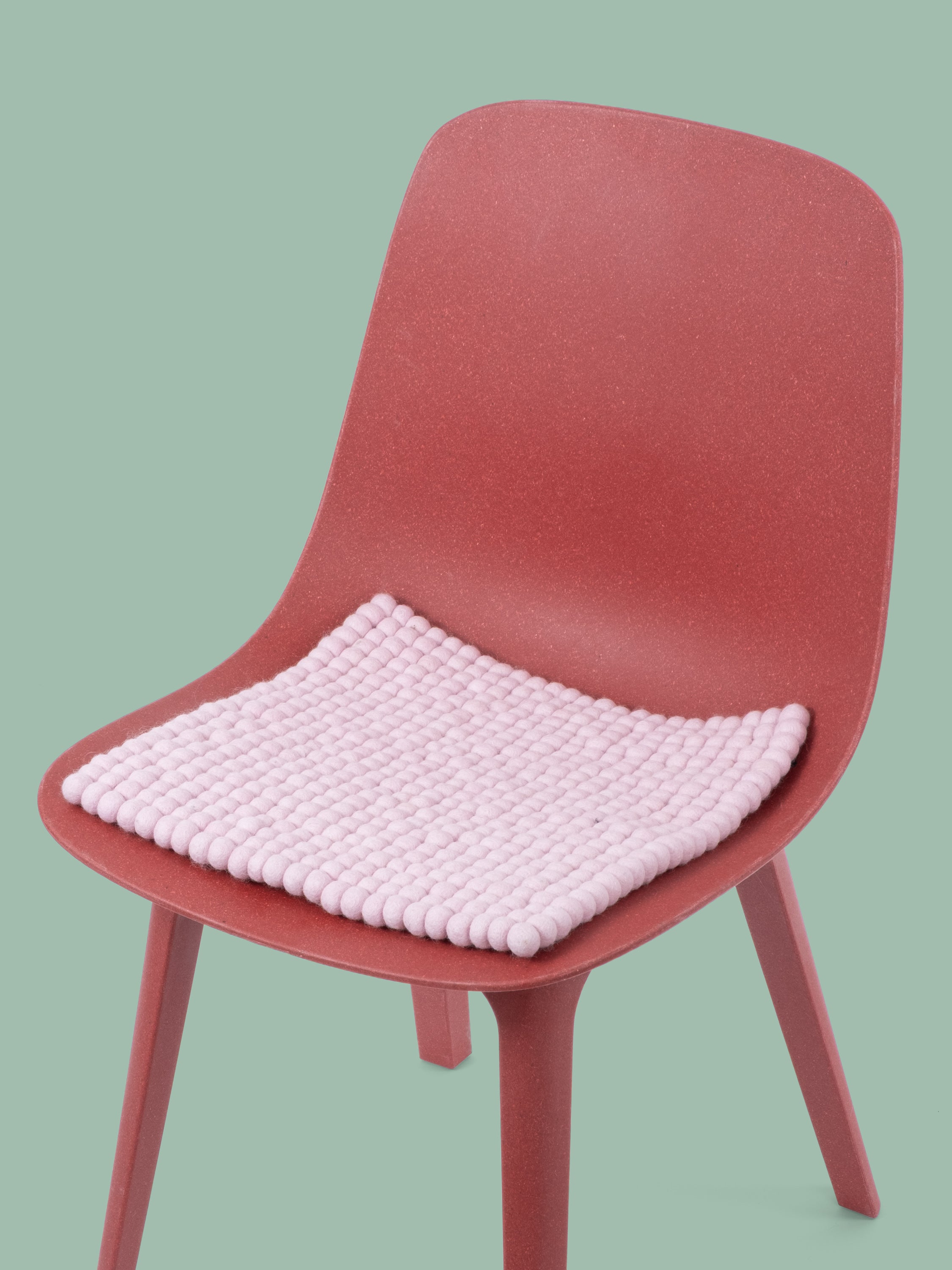 Quadratische, zartrosa Sitzauflage aus reiner Schurwolle.