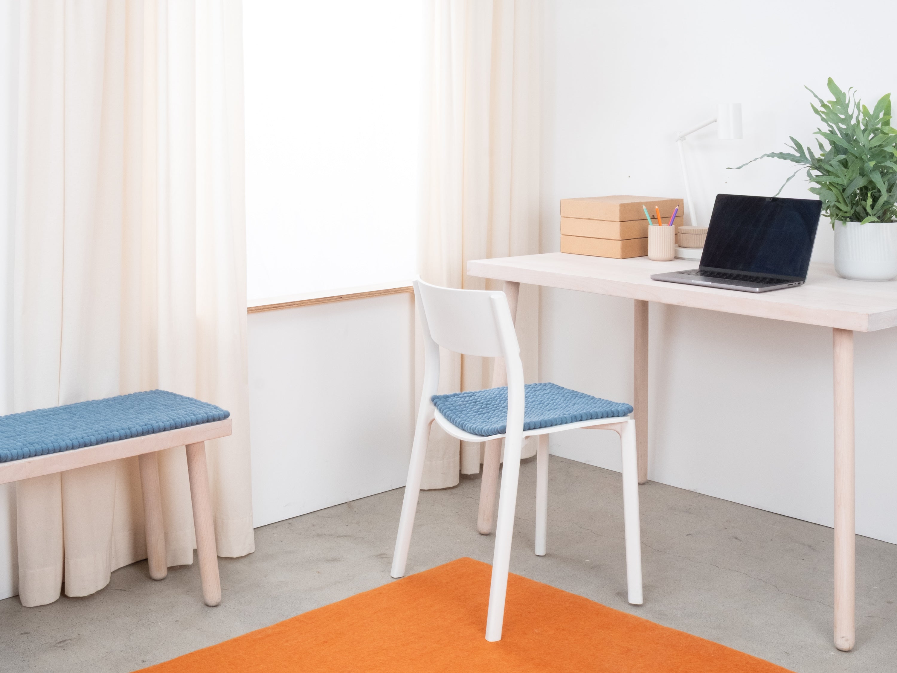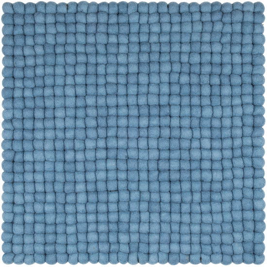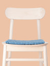 Quadratische, blaue Sitzauflage aus reiner Schurwolle.