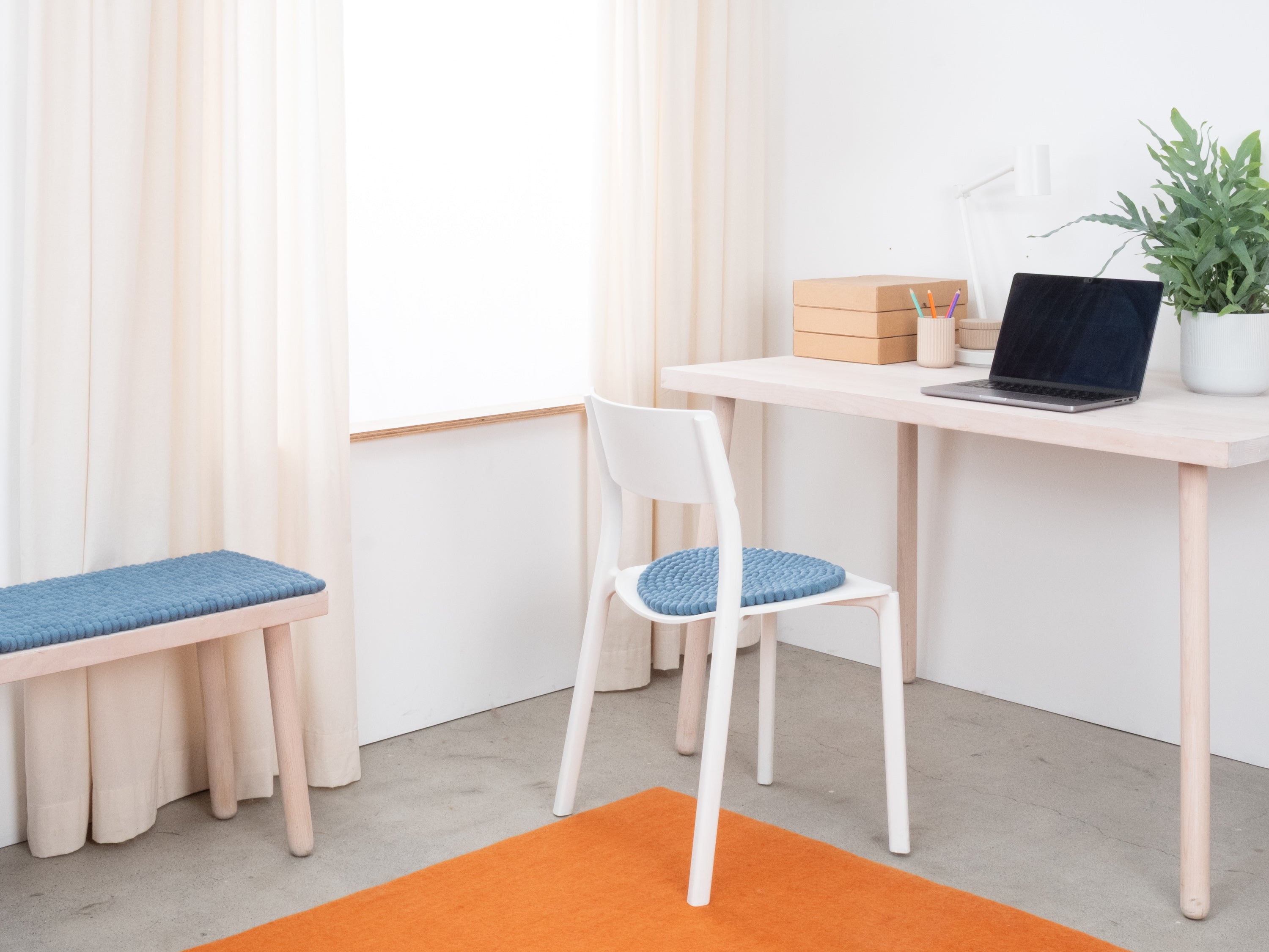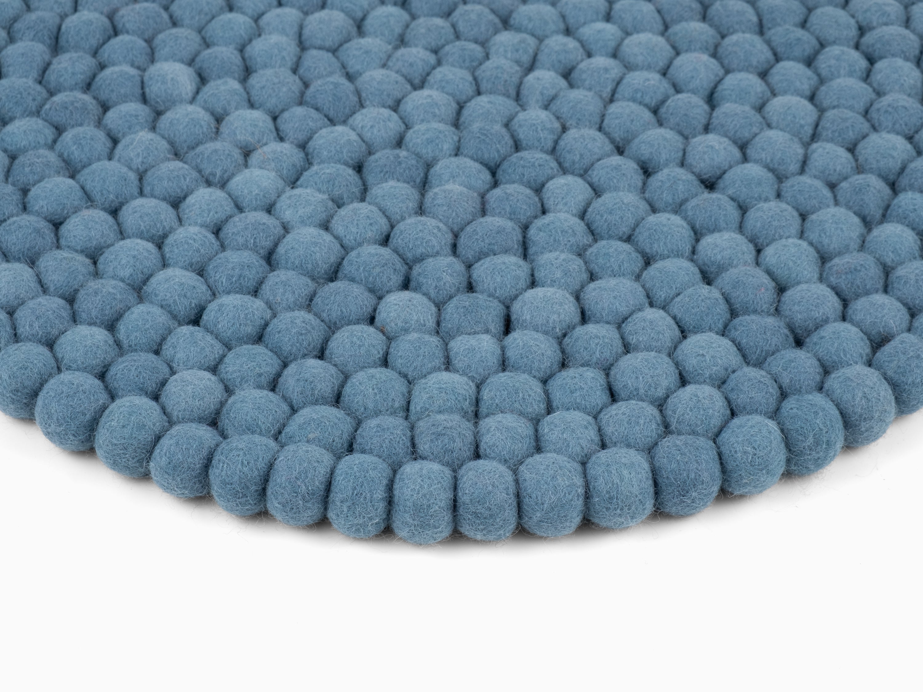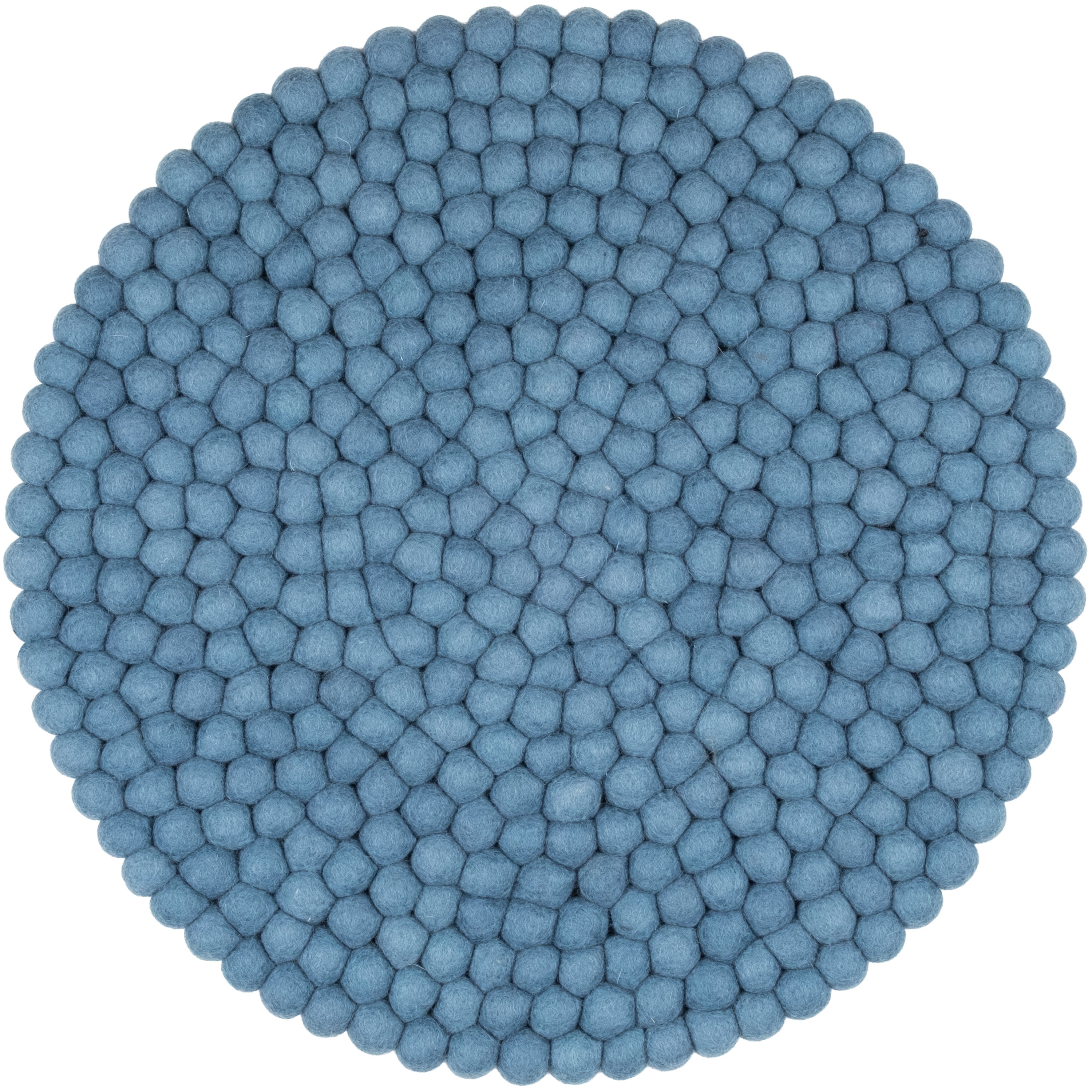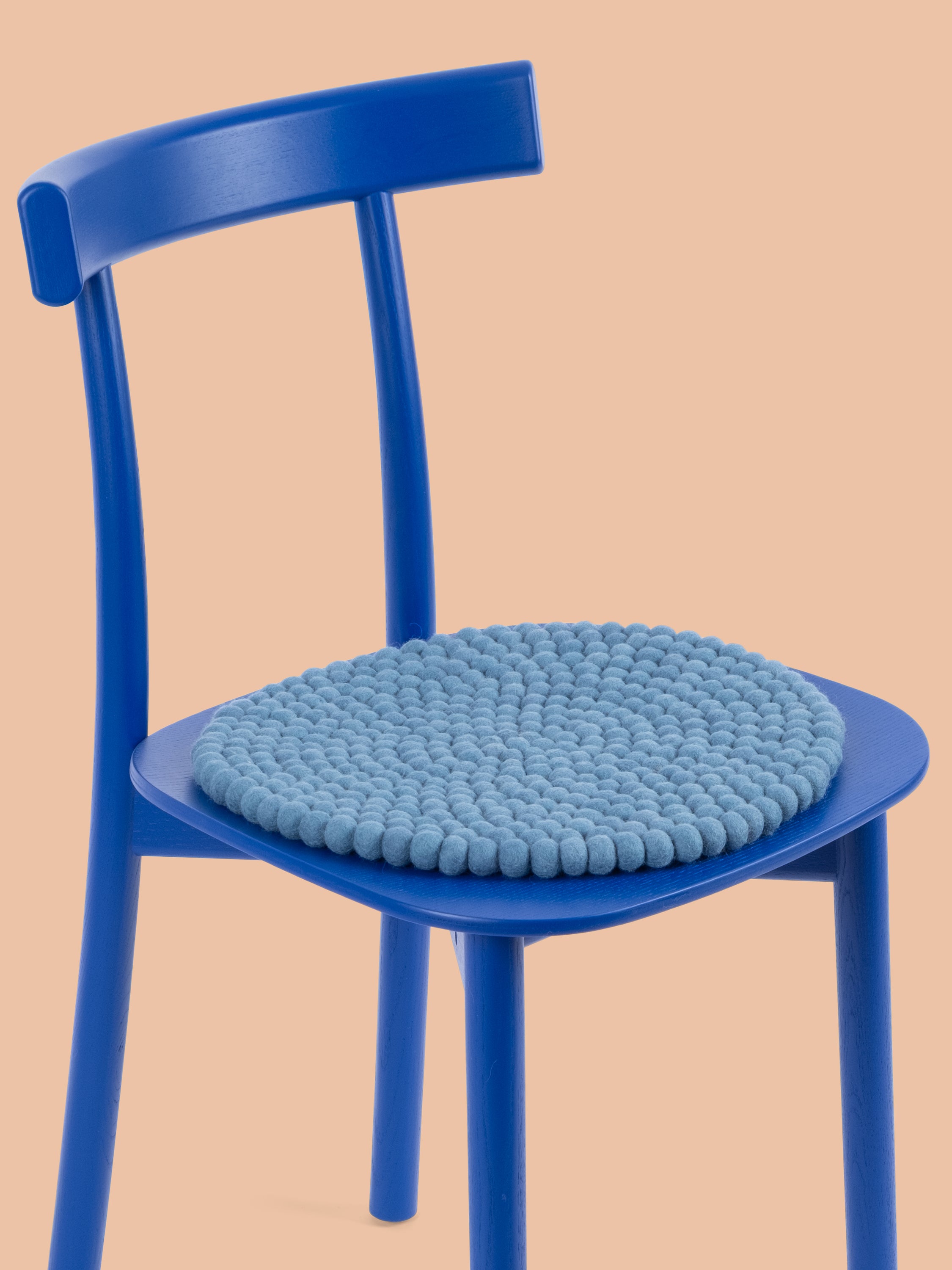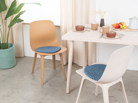 Runde, blaue Sitzauflage aus reiner Schurwolle.