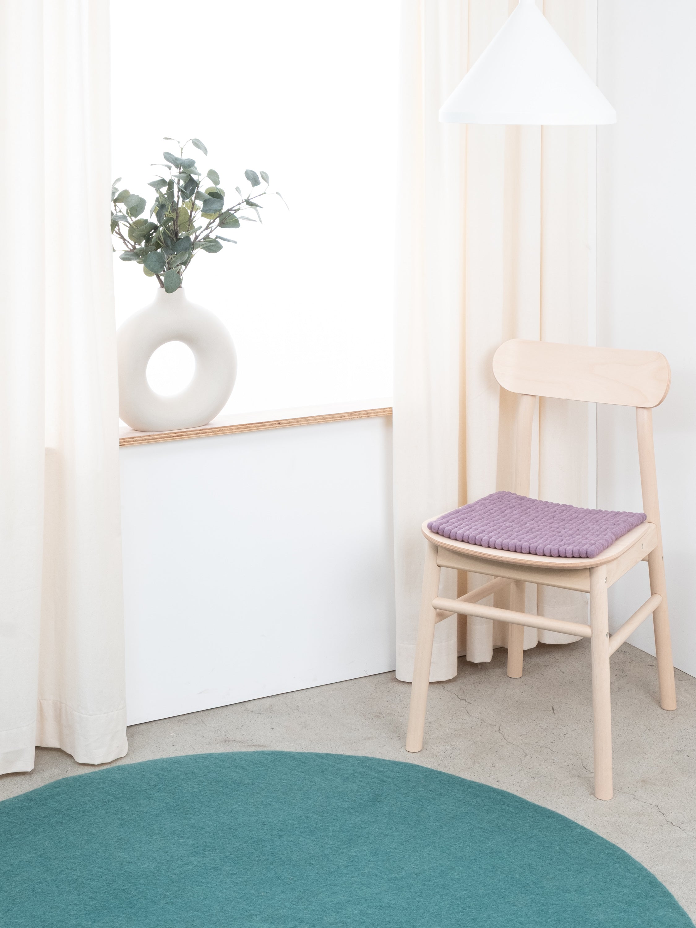 Die fliedergraue Sitzauflage Tove bringt Wärme und Weichheit auf deinen Lieblingsstuhl. Gefertigt aus reiner Schurwolle, von Hand in Nepal hergestellt und unter fairen Bedingungen produziert. myfelt Sitzauflagen sind wasser- und schmutzabweisend und beidseitig verwendbar.