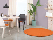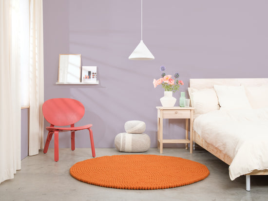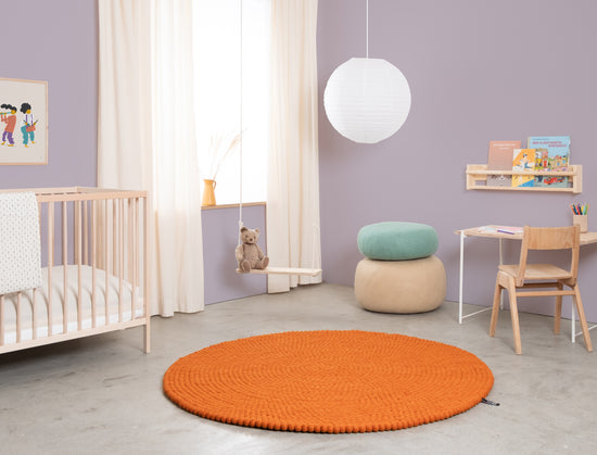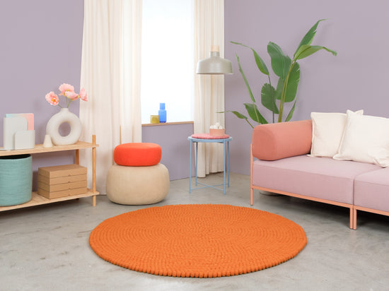 Afra bringt ein warmes Orange in den Raum. Der Filzkugelteppich wirkt einladend und energiegeladen, ohne laut zu werden. Perfekt, um kühle Räume zu erwärmen oder Akzente zu setzen. Robust, pflegeleicht und angenehm im Tritt. In Nepal handgefertigt – aus 100 % reiner Schurwolle.