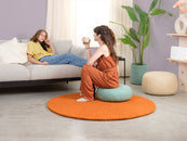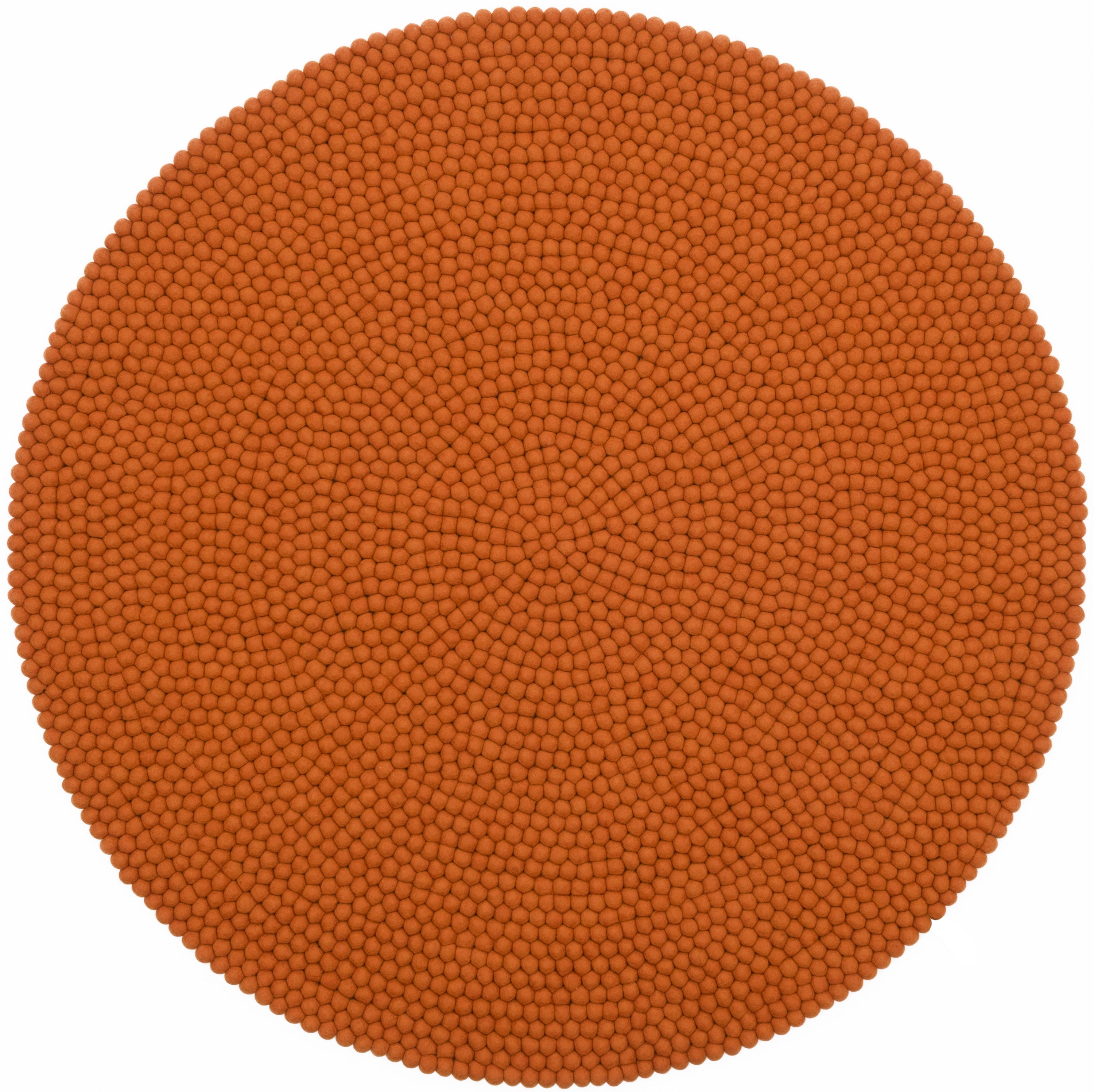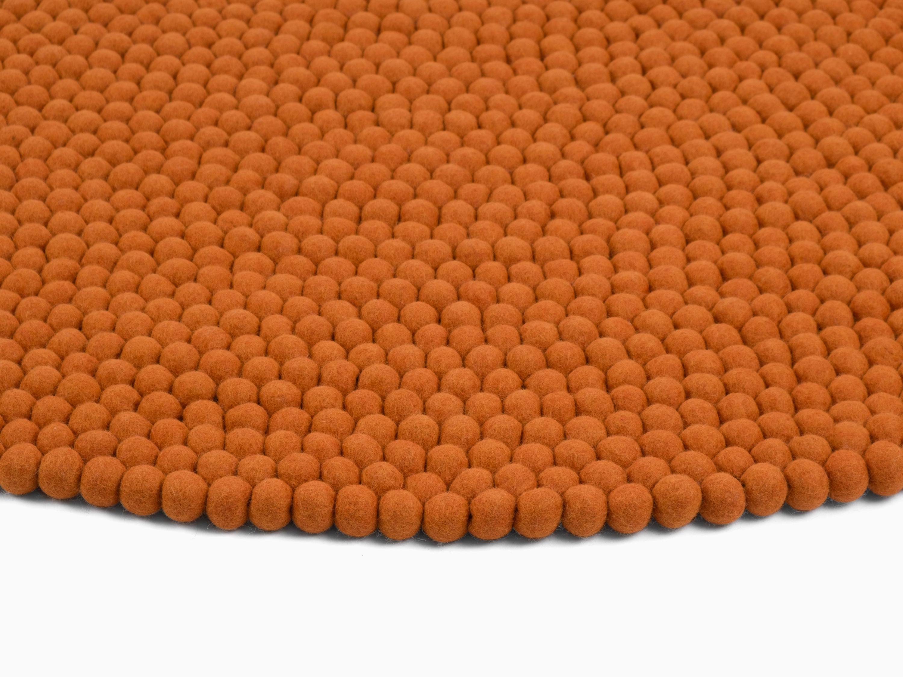 Runder Filzkugelteppich, hergestellt aus reiner Schurwolle.