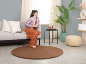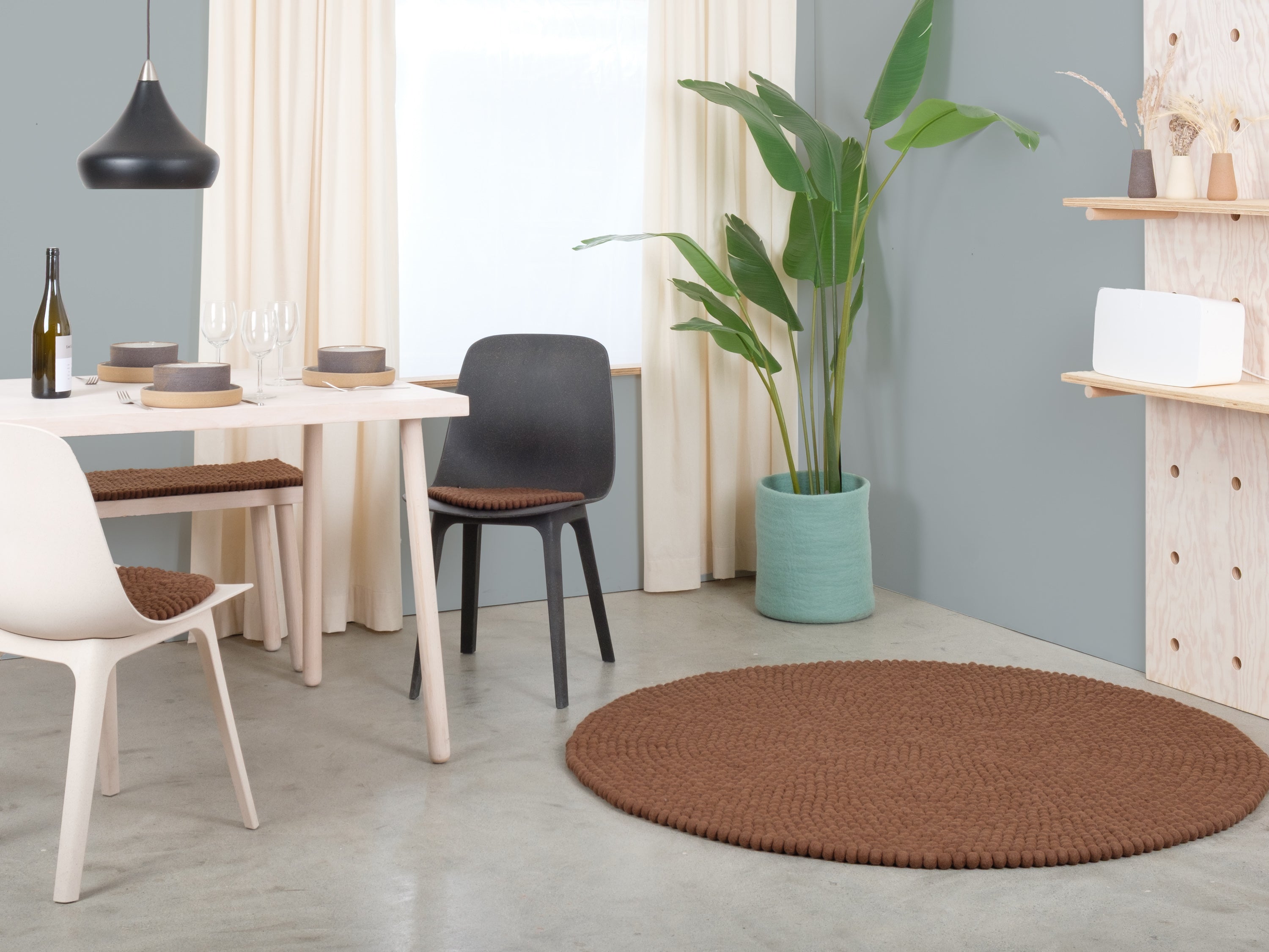 Runder Filzkugelteppich, hergestellt aus reiner Schurwolle.