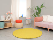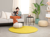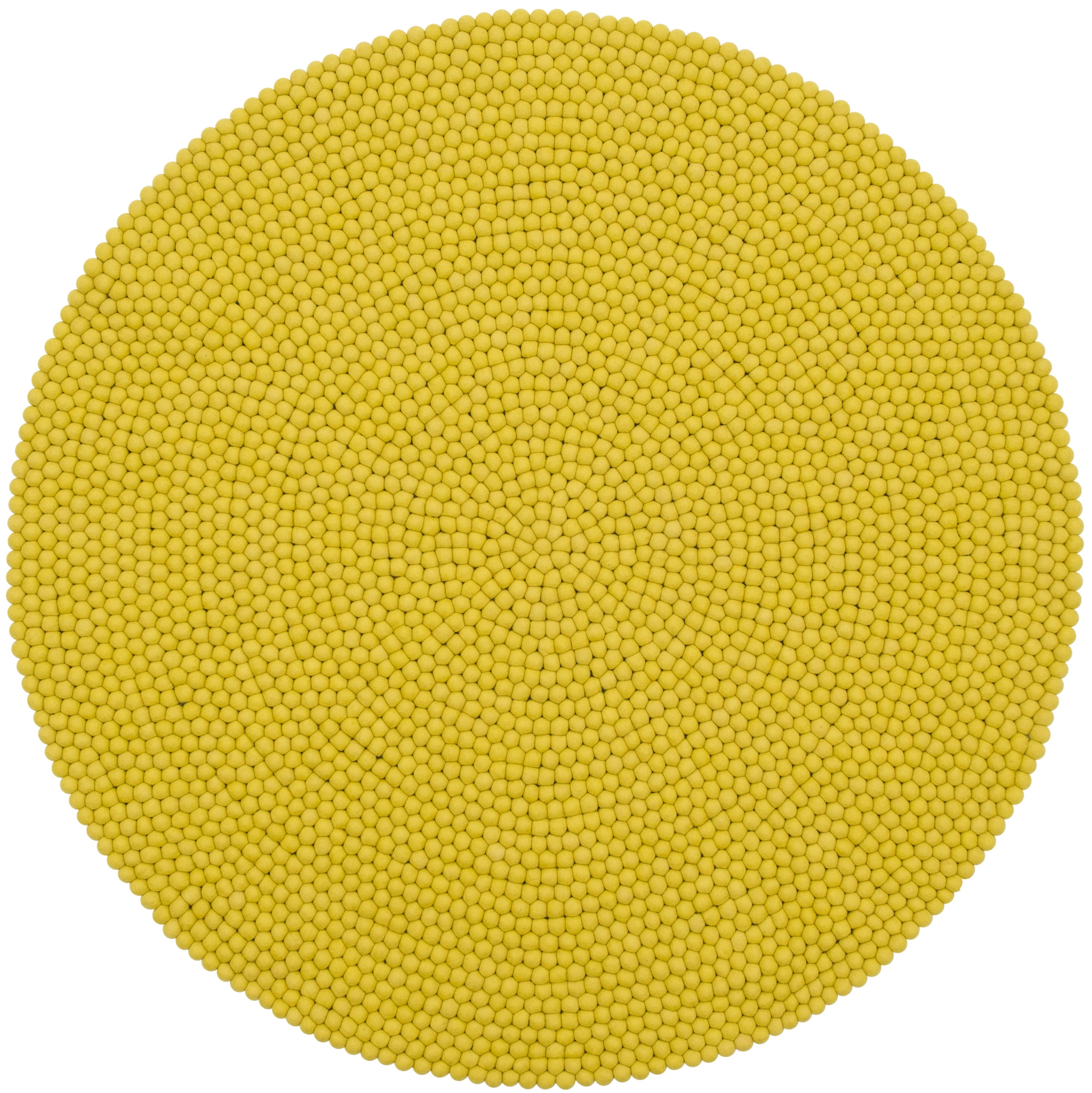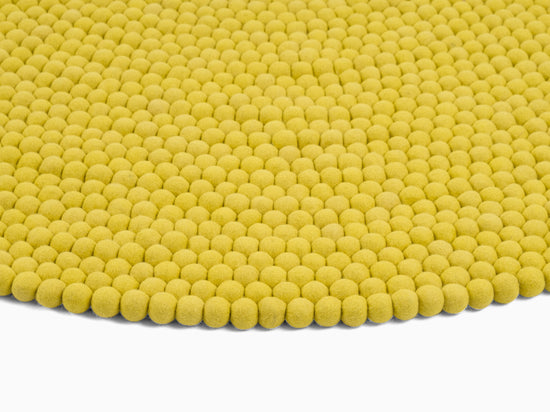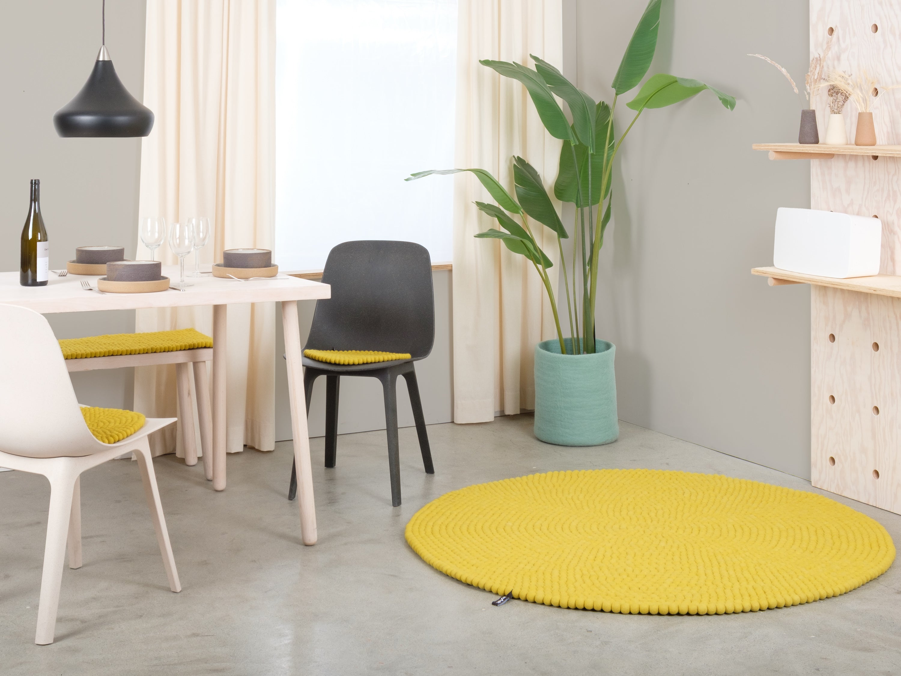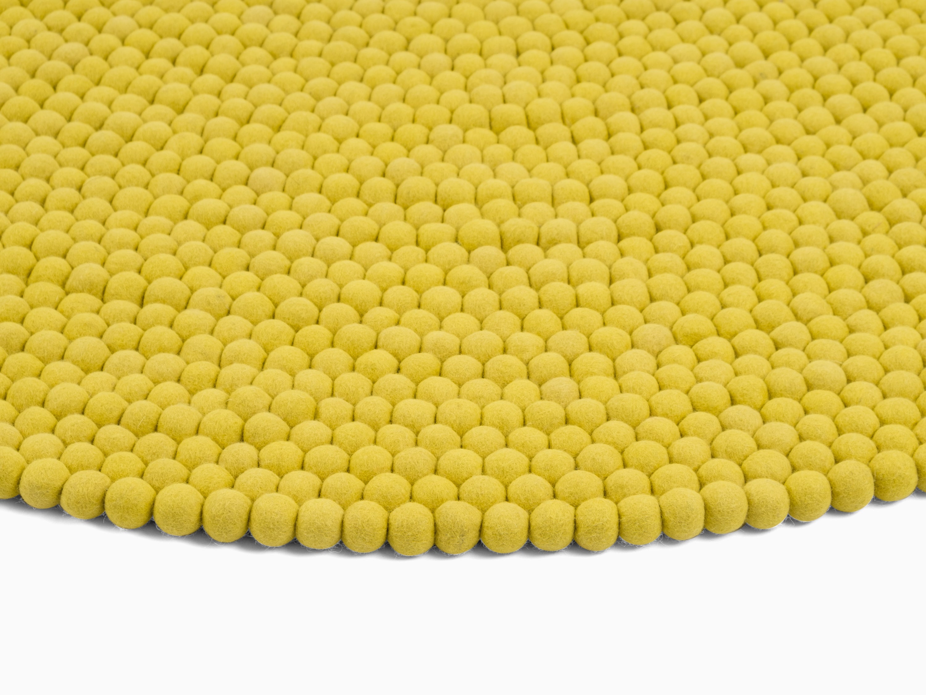 Runder Filzkugelteppich, hergestellt aus reiner Schurwolle.