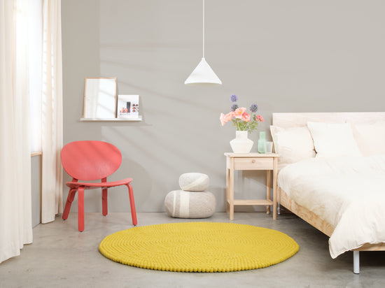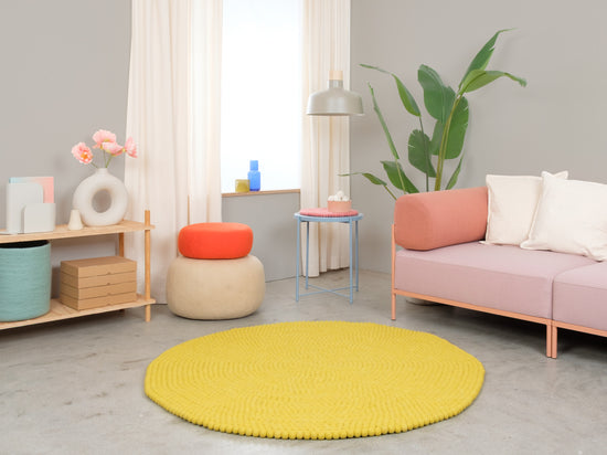 Kata ist ein Filzkugelteppich in frischem Gelbgrün. Leuchtend, vital und voller Energie bringt er Bewegung in den Raum. Ob als fröhlicher Akzent im Wohnzimmer oder als Lichtpunkt im Arbeitsbereich. Kata sorgt für Lebendigkeit und Leichtigkeit. Weich, robust und pflegeleicht. Handgefertigt in Nepal aus 100 % reiner Schurwolle.