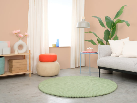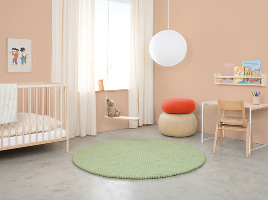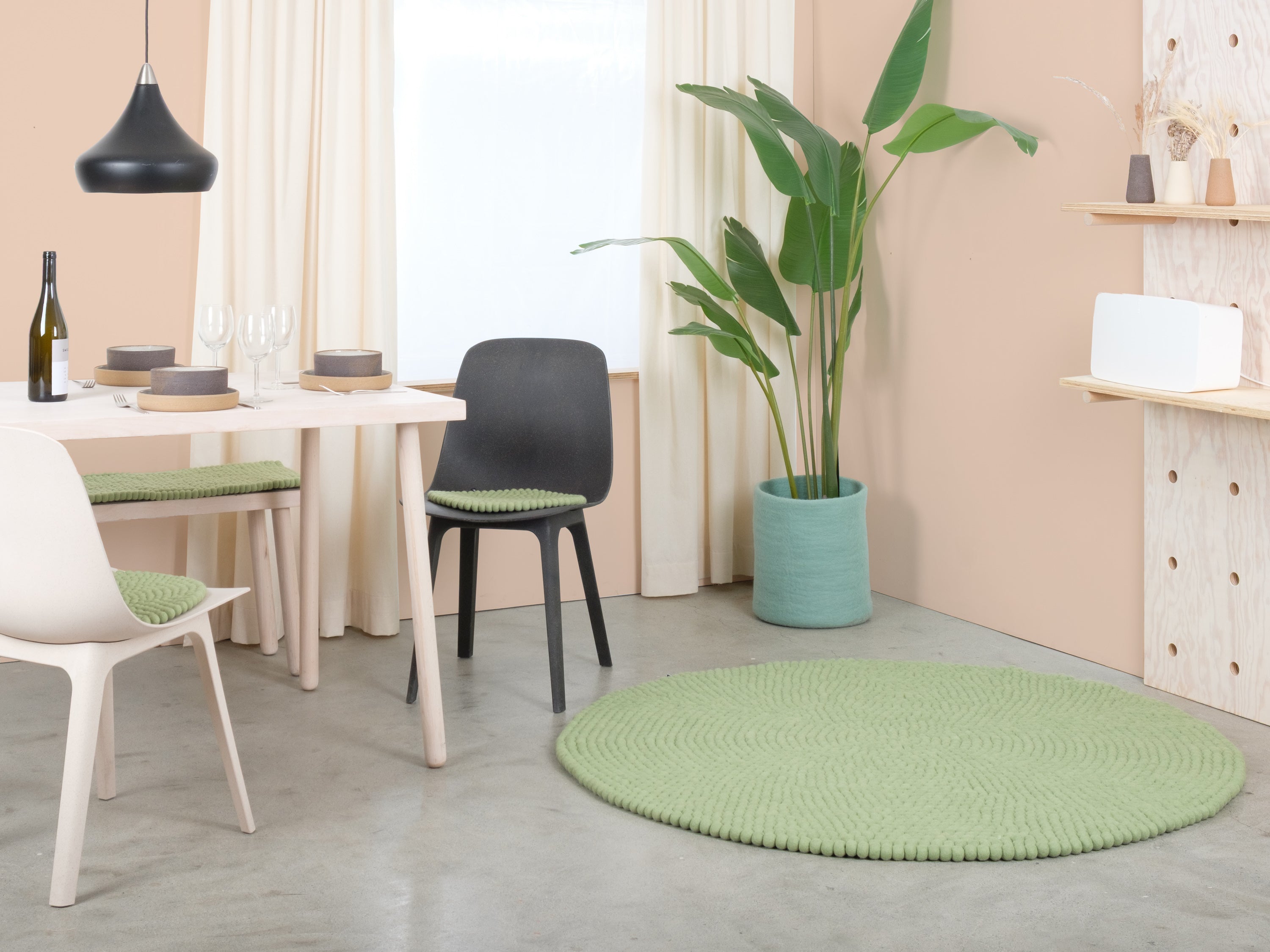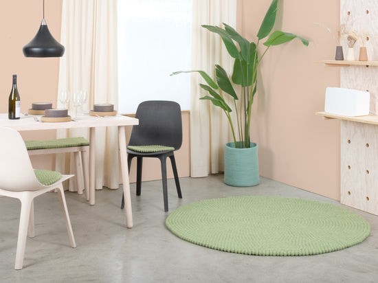 Lasse ist ein Filzkugelteppich in sanftem Salbeigrün. Er bringt Ruhe und Leichtigkeit in den Raum und harmoniert mit Holz, Weiß und Naturtönen. Weich im Tritt, robust im Alltag, von Natur aus schmutzabweisend. Handgefertigt in Nepal aus 100 % reiner Schurwolle.