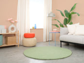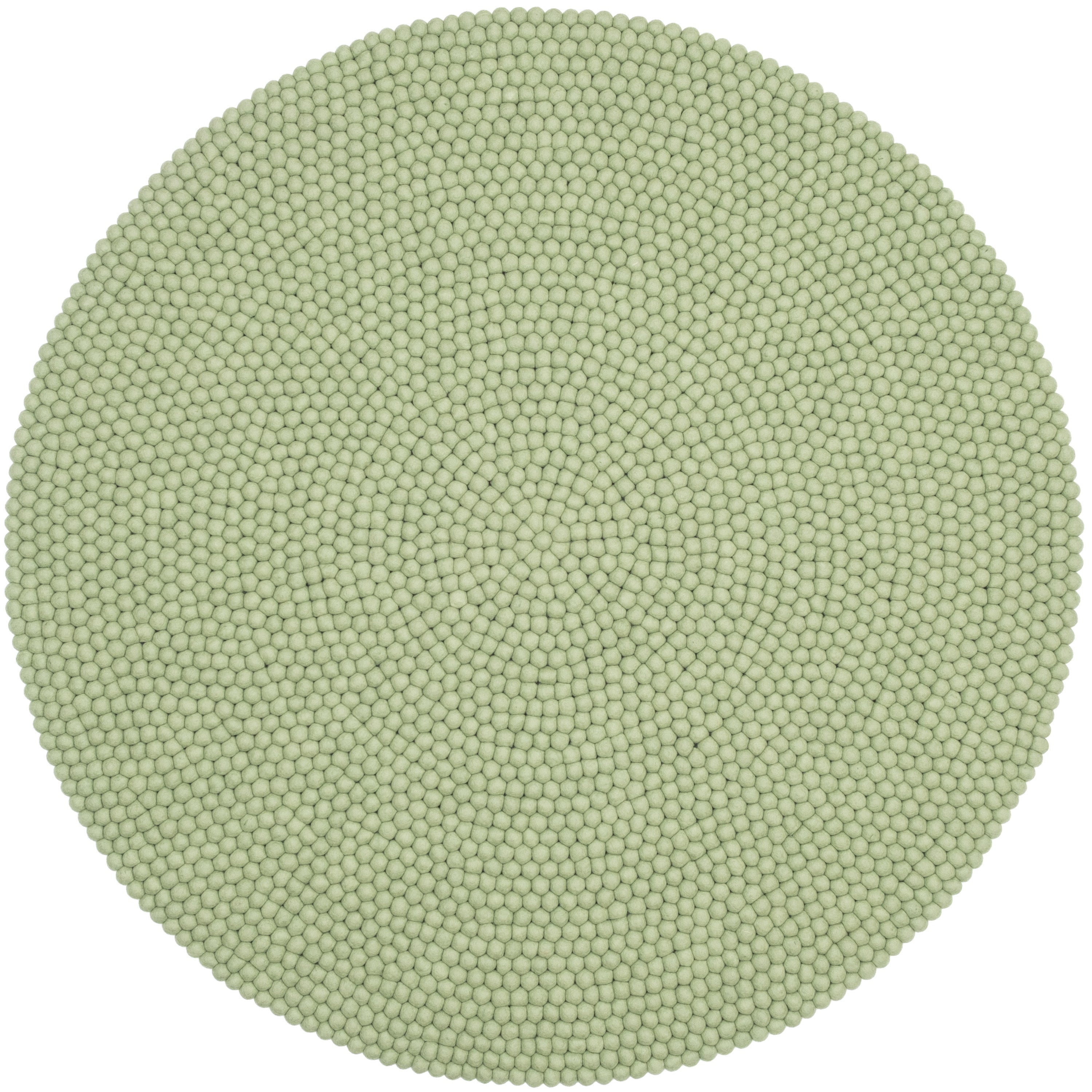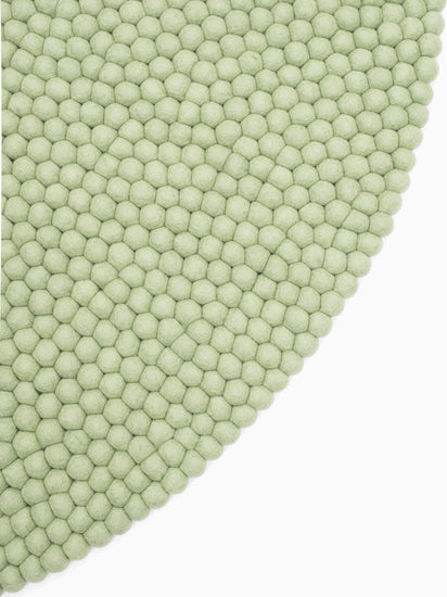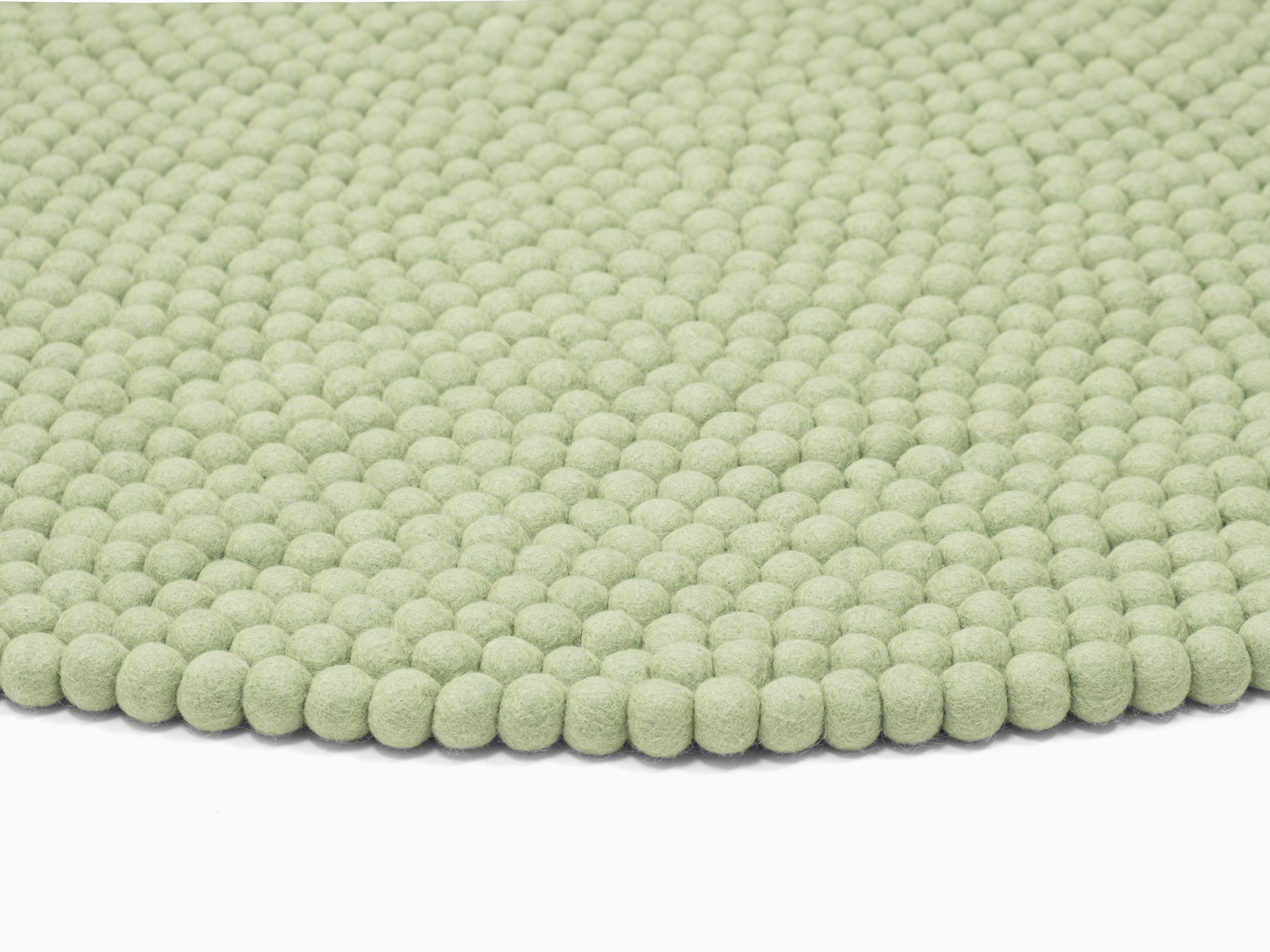 Runder Filzkugelteppich, hergestellt aus reiner Schurwolle.