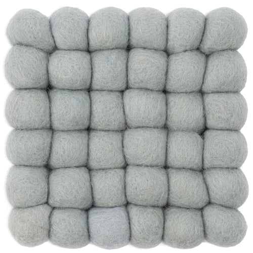 Rechteckiger Filzkugelteppich, hergestellt aus reiner Schurwolle.