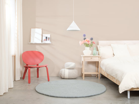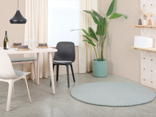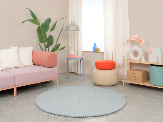 Liv ist ein Filzkugelteppich in kühlem Hellblau. Er bringt Klarheit und Leichtigkeit in den Raum und lässt kleine Zimmer größer wirken. Passt zu Weiß, Eiche und neutralen Tönen – als ruhige Basis oder frischer Akzent. Weich, schalldämpfend und von Natur aus schmutzabweisend. Handgefertigt in Nepal aus 100 % reiner Schurwolle.