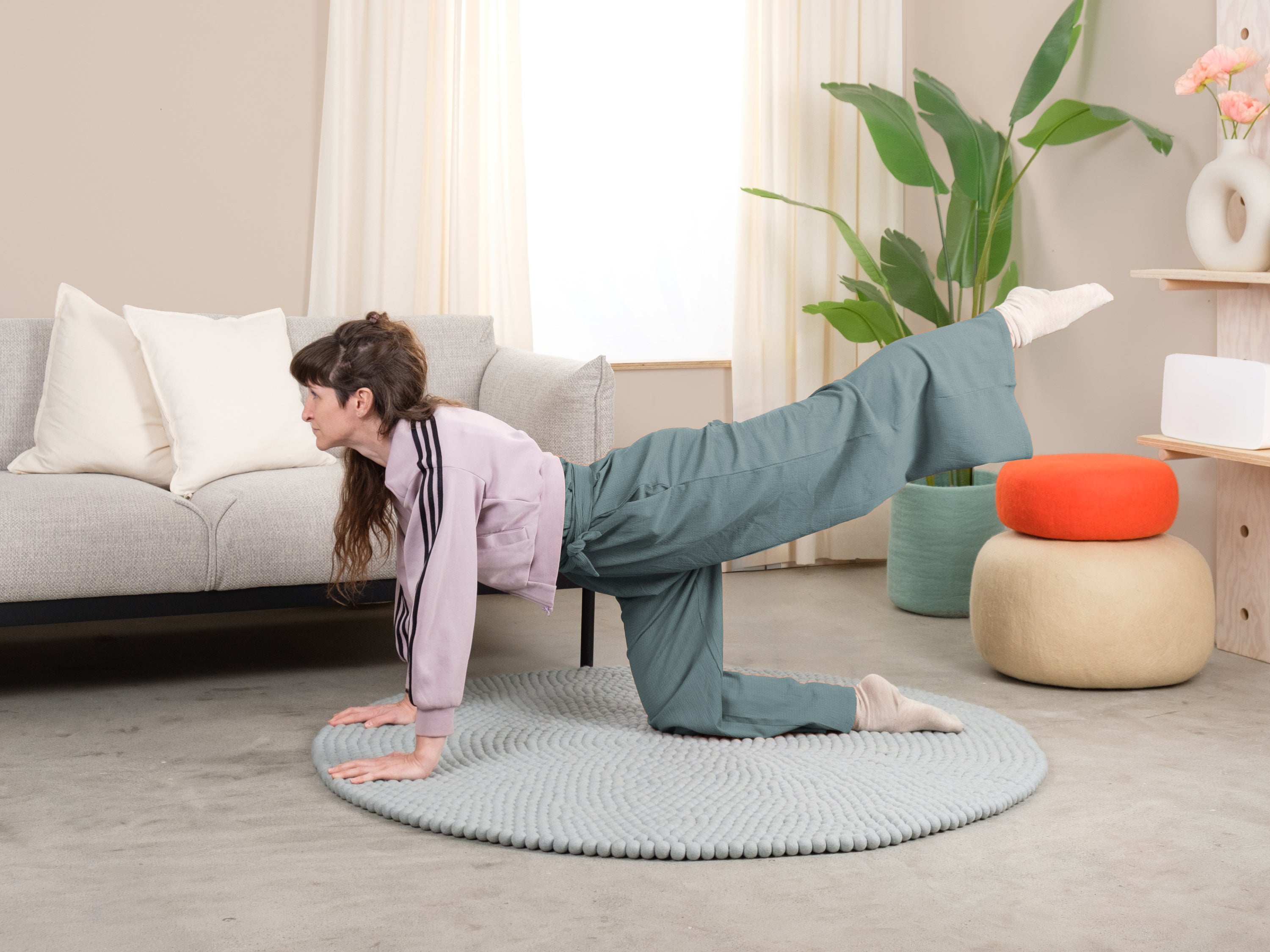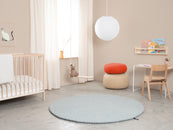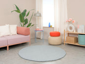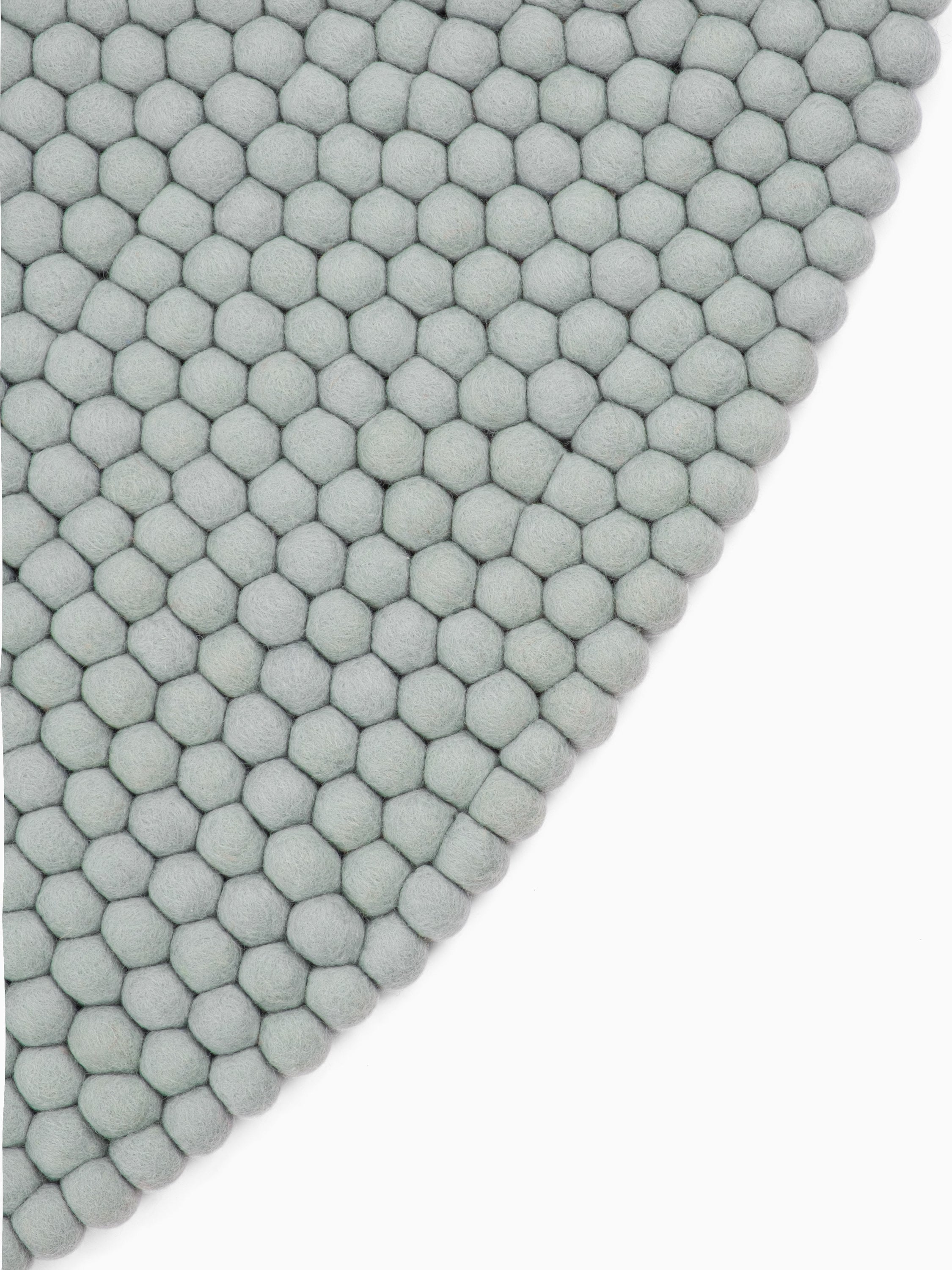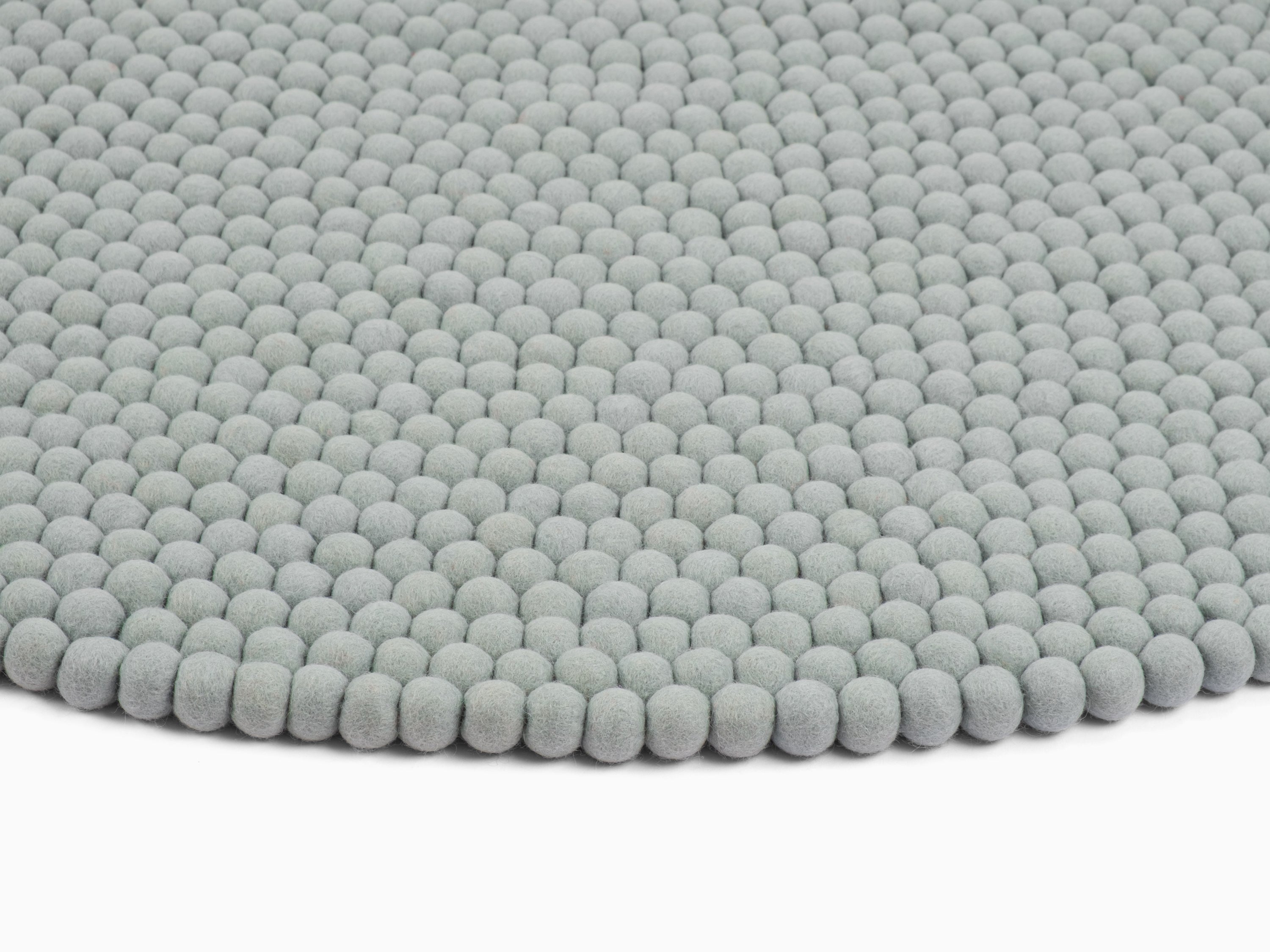 Runder Filzkugelteppich, hergestellt aus reiner Schurwolle.