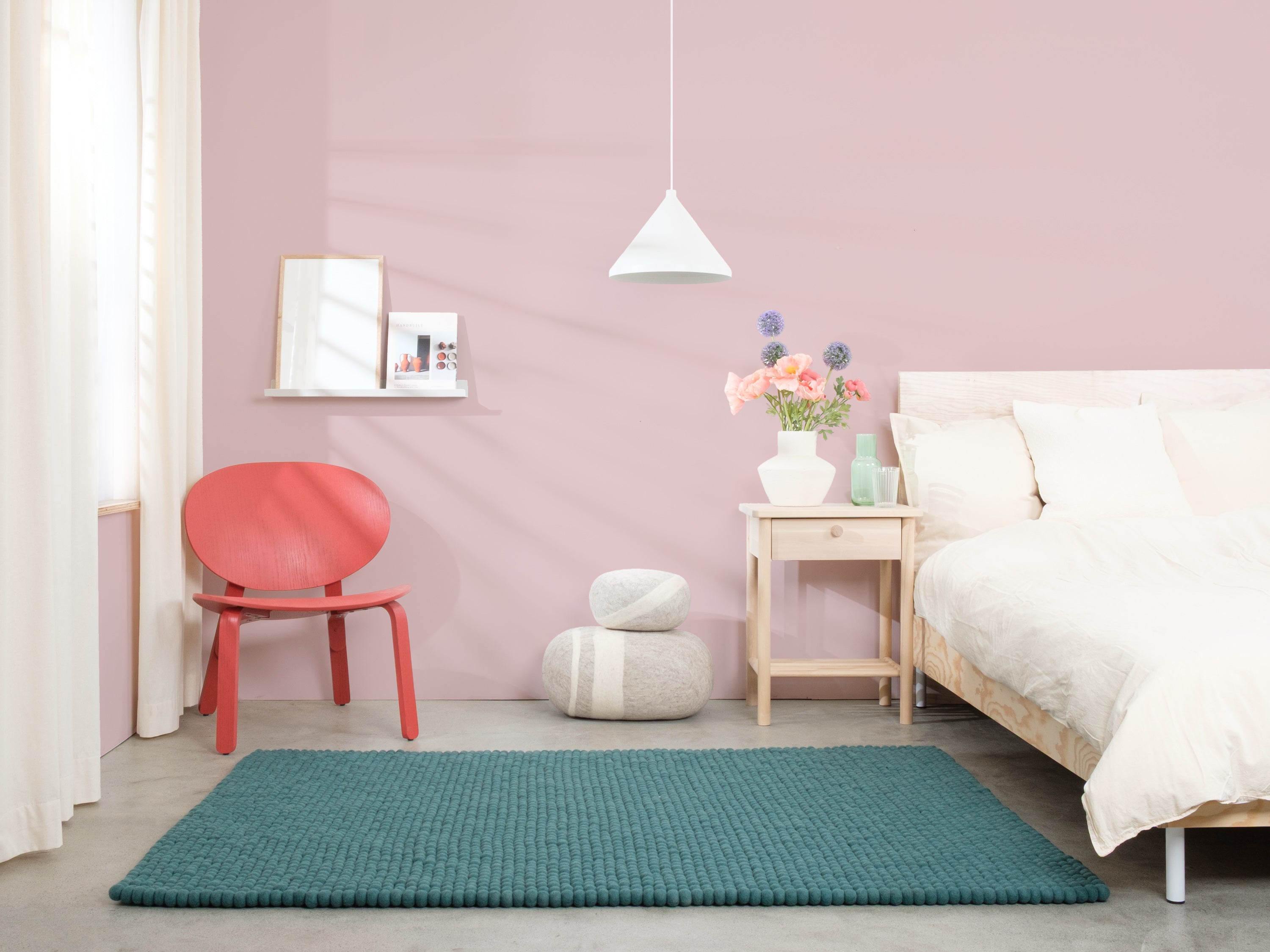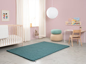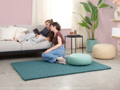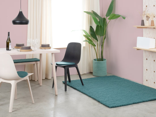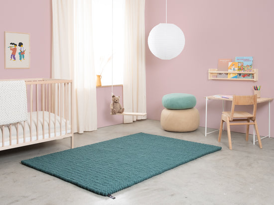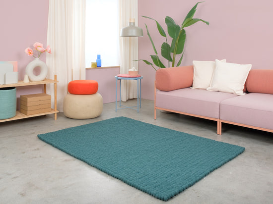 Noah ist ein Filzkugelteppich in tiefem Petrol. Kraftvoll, klar und trotzdem entspannend – als Statement oder ruhige Basis. Er passt zu hellem Holz, Beton und neutralen Farben. Spürbar weich, langlebig und pflegeleicht. In Nepal handgefertigt aus 100 % reiner Schurwolle.