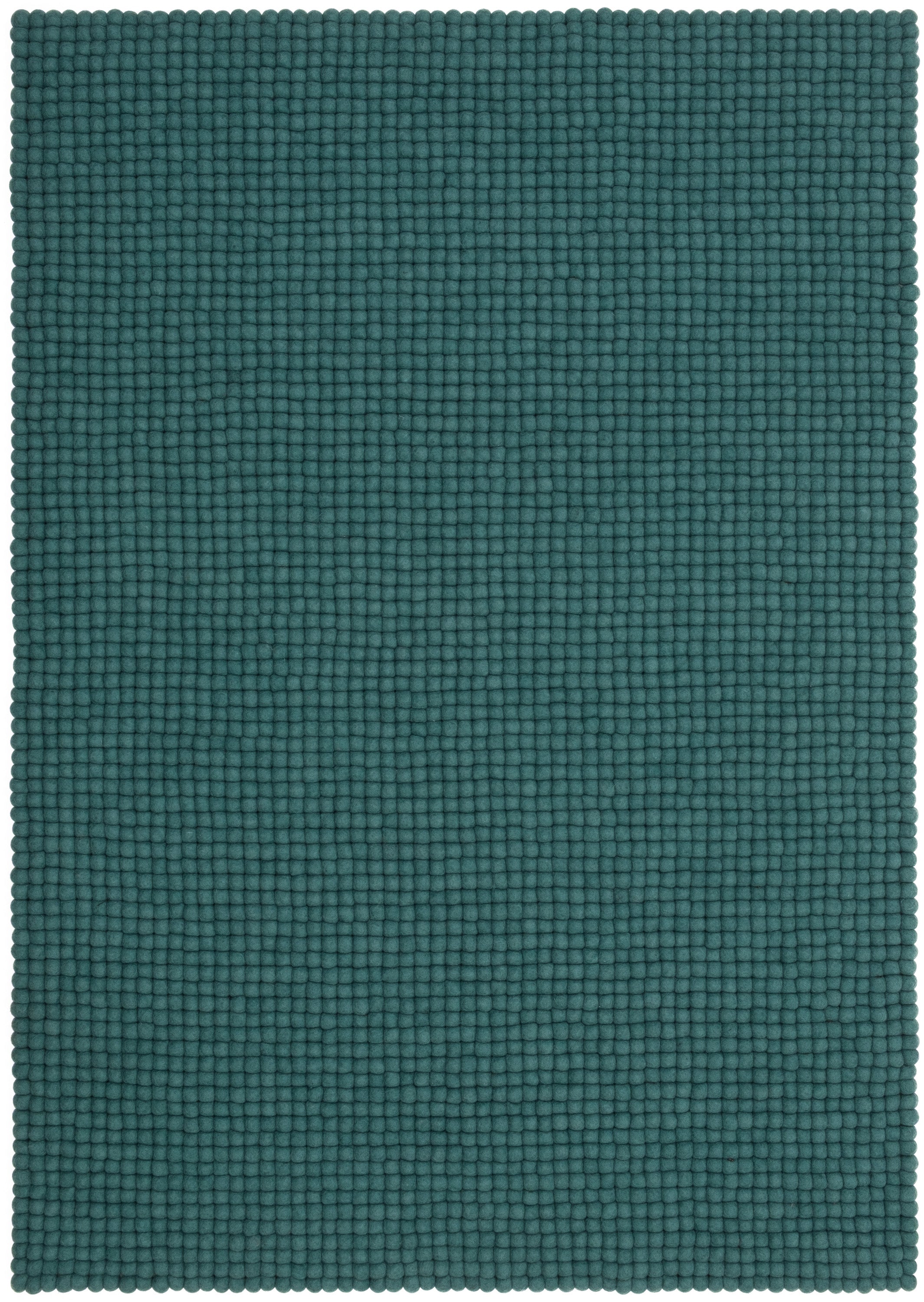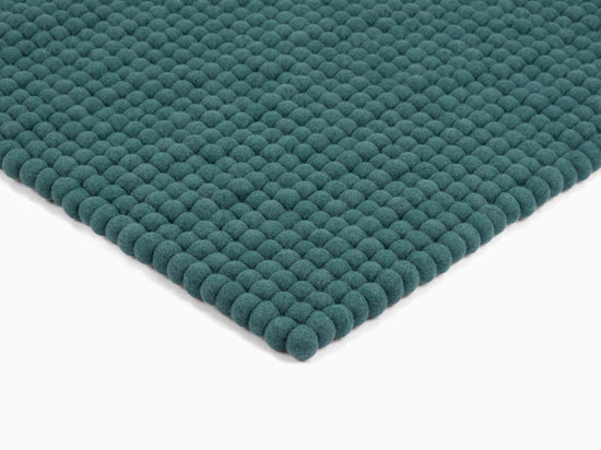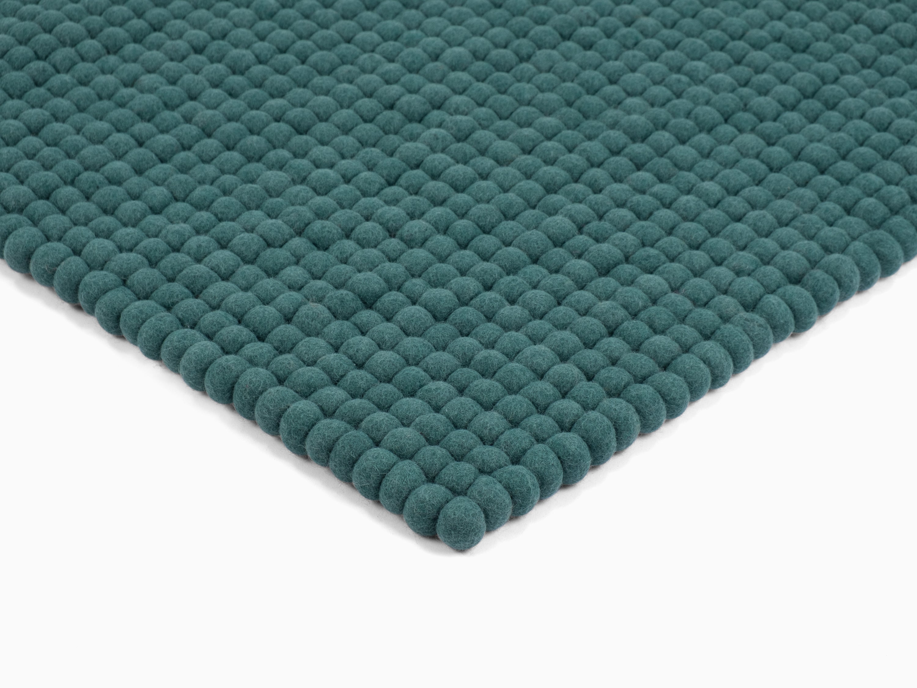 Rechteckiger Filzkugelteppich, hergestellt aus reiner Schurwolle.