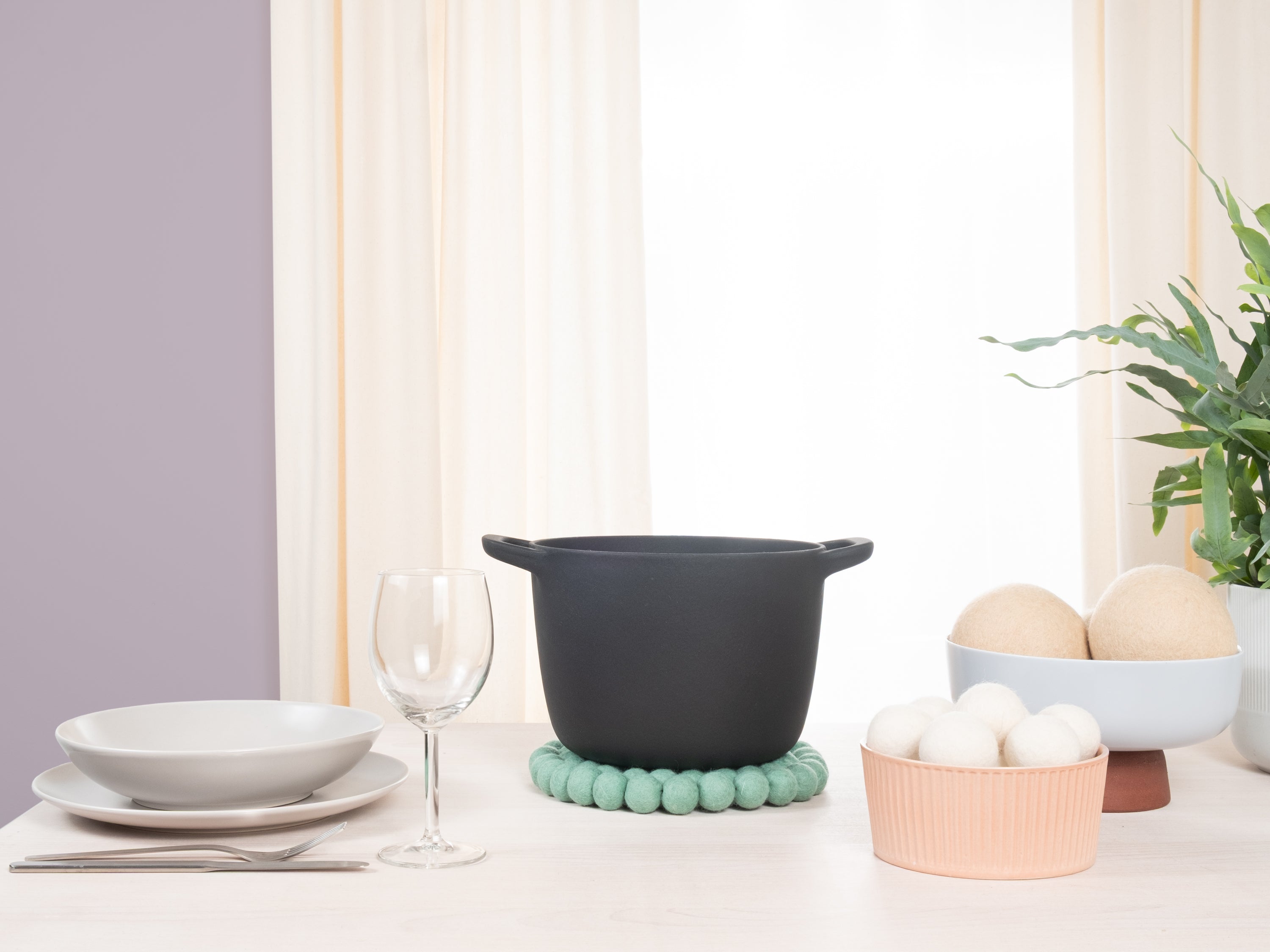 Der Topfuntersetzer Fine in der Farbe Türkis verbindet Funktion mit charmanter Optik. Robust, hitzebeständig, wasser- und schmutzabweisend sowie beidseitig verwendbar. Gefertigt aus reiner Schurwolle, von Hand in Nepal hergestellt und unter fairen Bedingungen produziert.