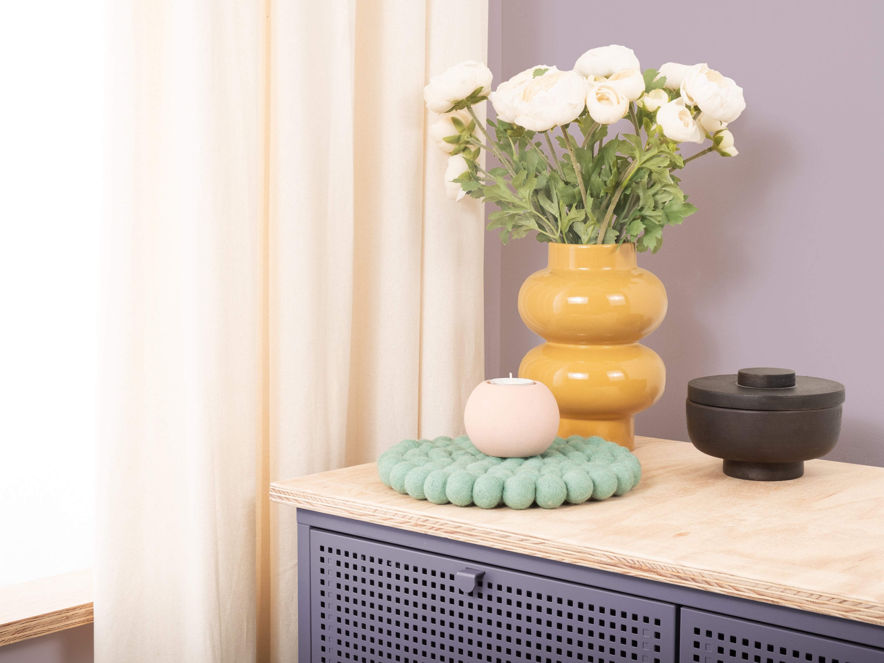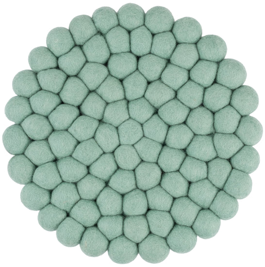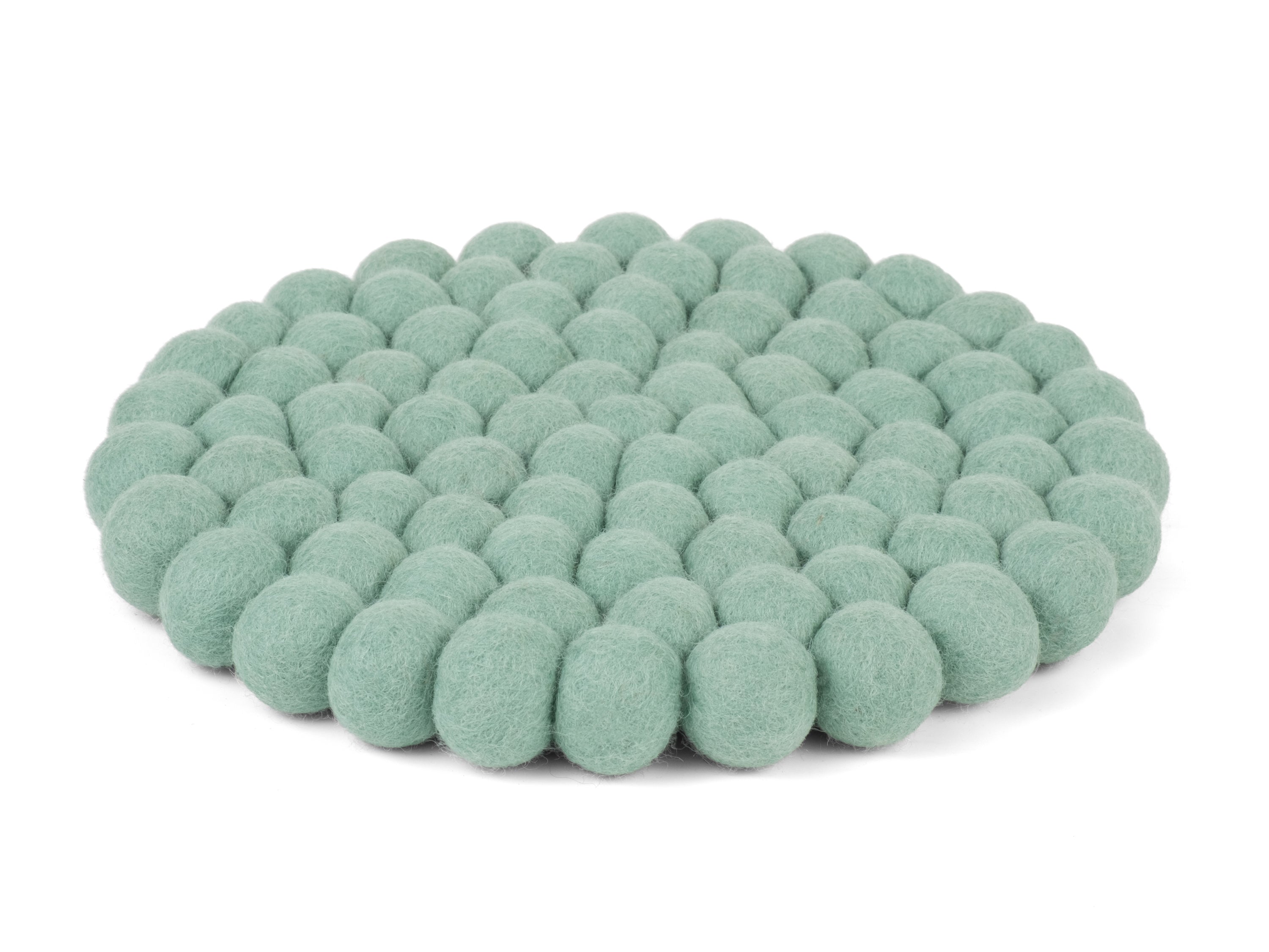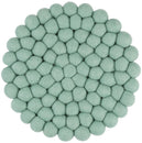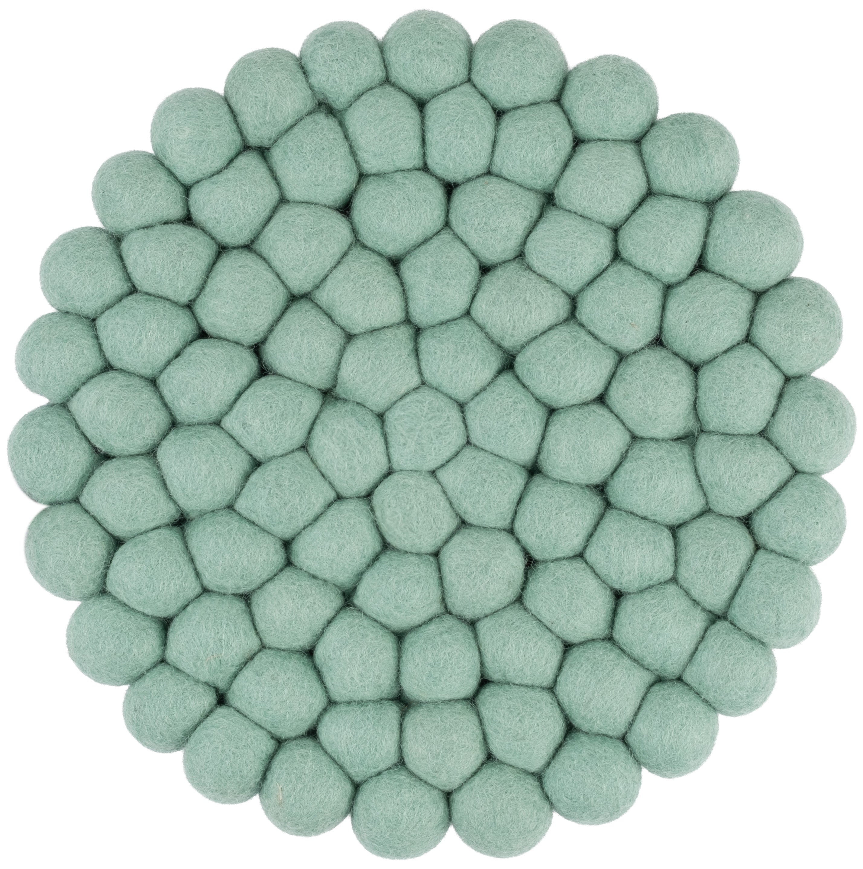 Runder, türkisfarbener Topfuntersetzer aus reiner Schurwolle