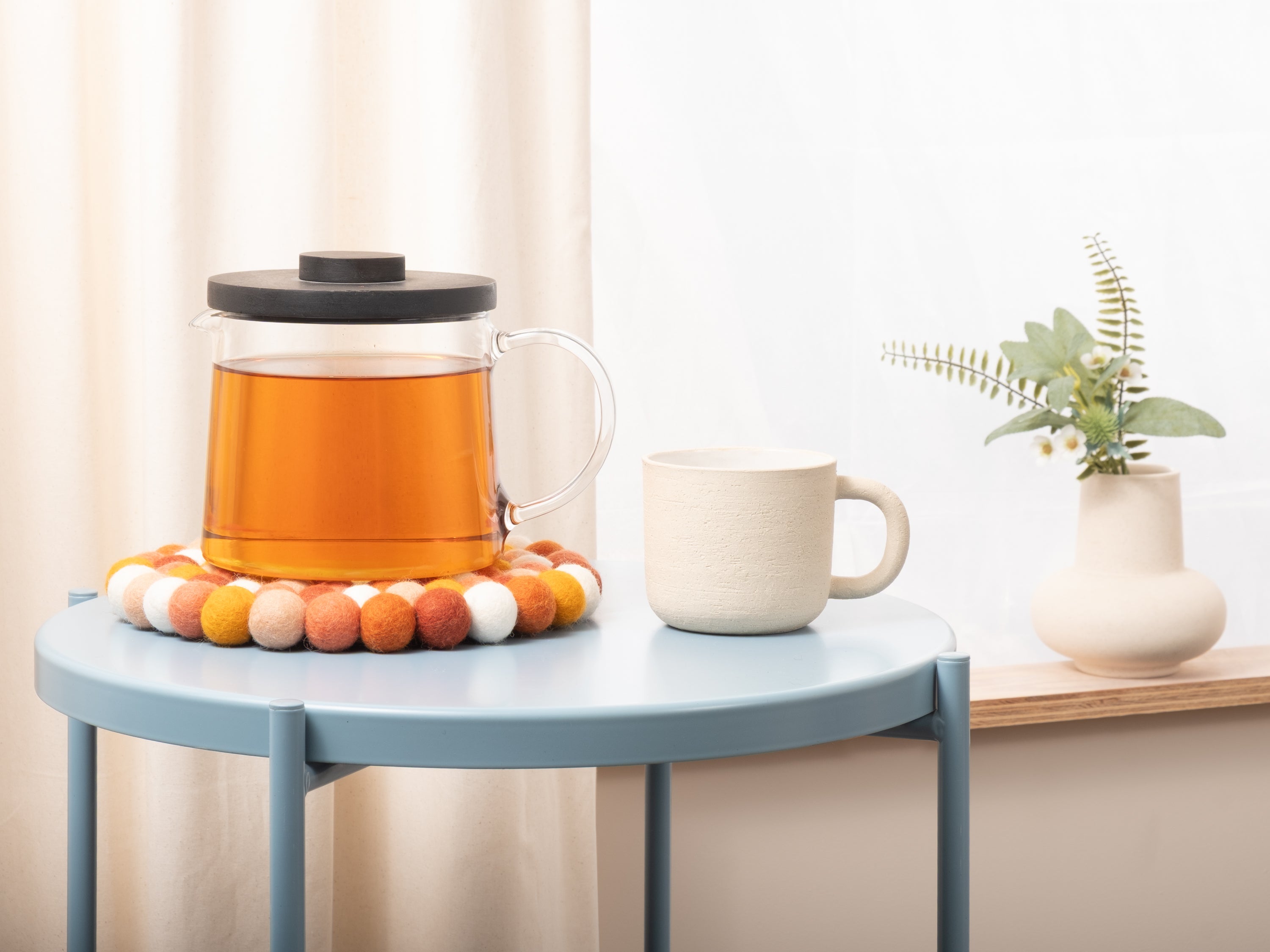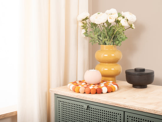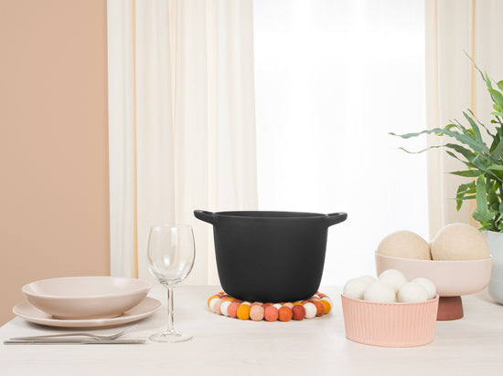Runder, multifarbener Topfuntersetzer aus reiner Schurwolle