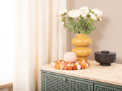 Der Topfuntersetzer Juna in den Farben Rot, Orange und Weiß verbindet Funktion mit charmanter Optik. Robust, hitzebeständig, wasser- und schmutzabweisend sowie beidseitig verwendbar. Gefertigt aus reiner Schurwolle, von Hand in Nepal hergestellt und unter fairen Bedingungen produziert.