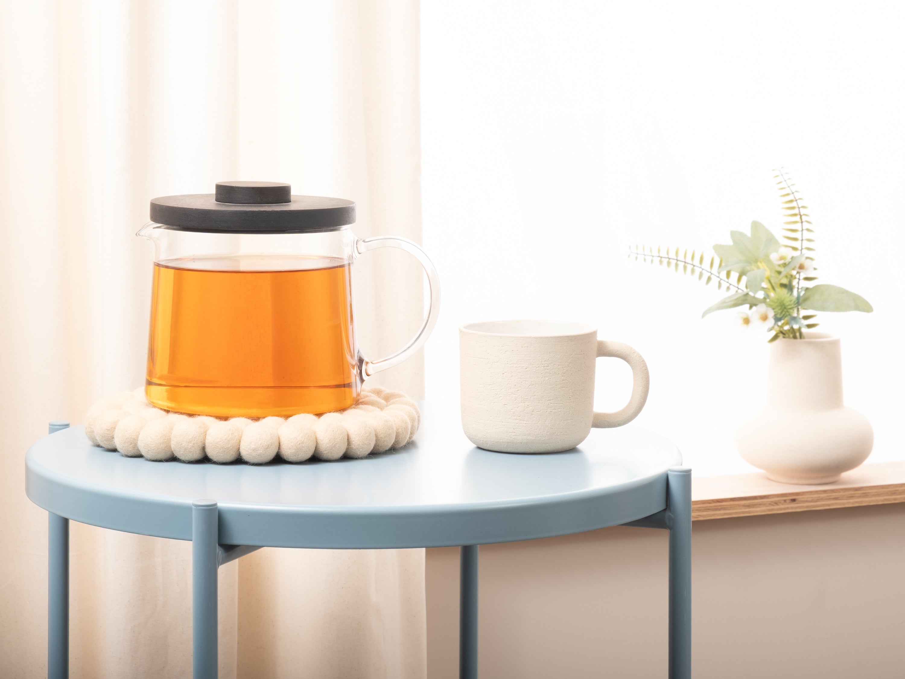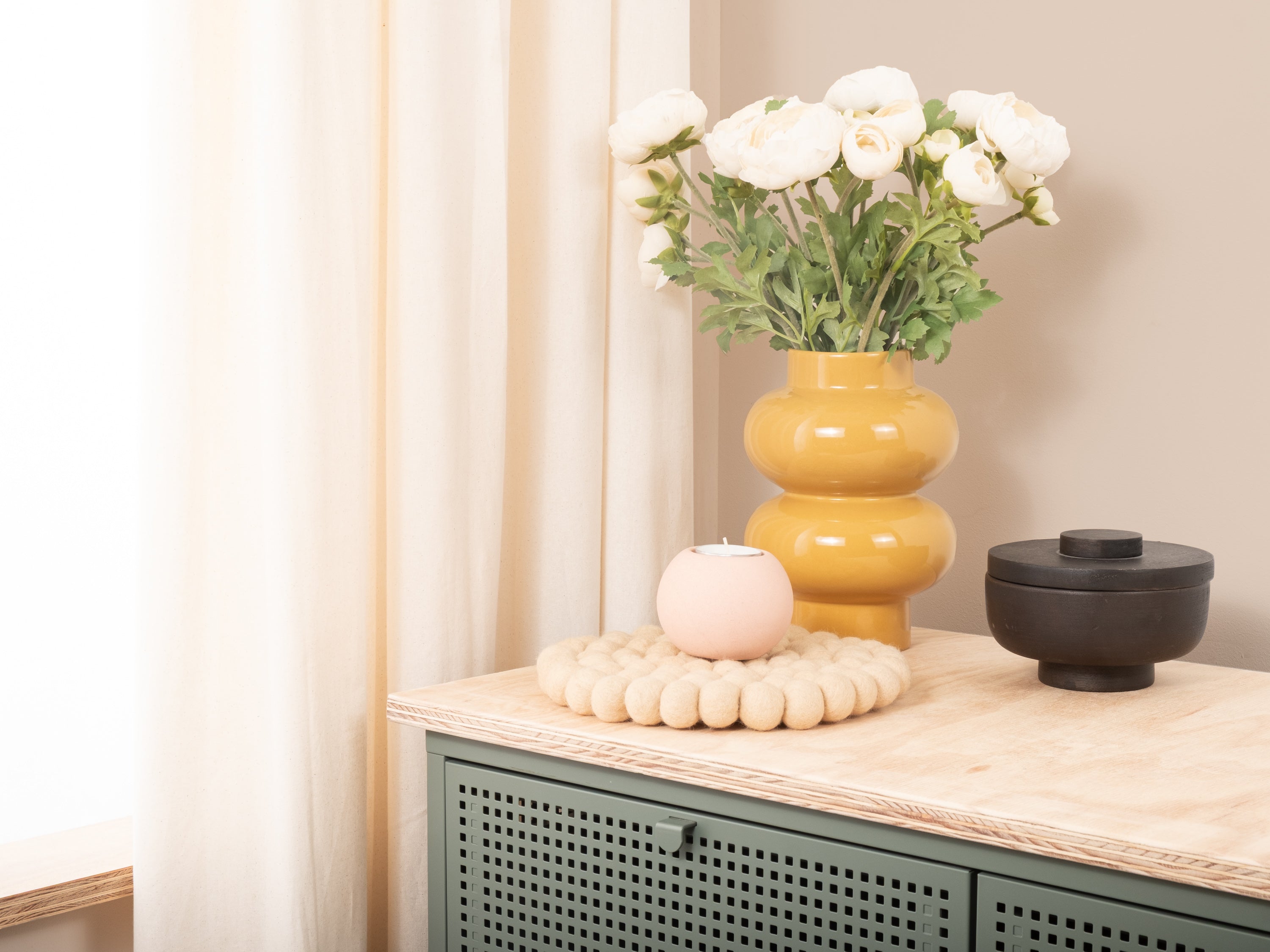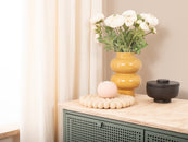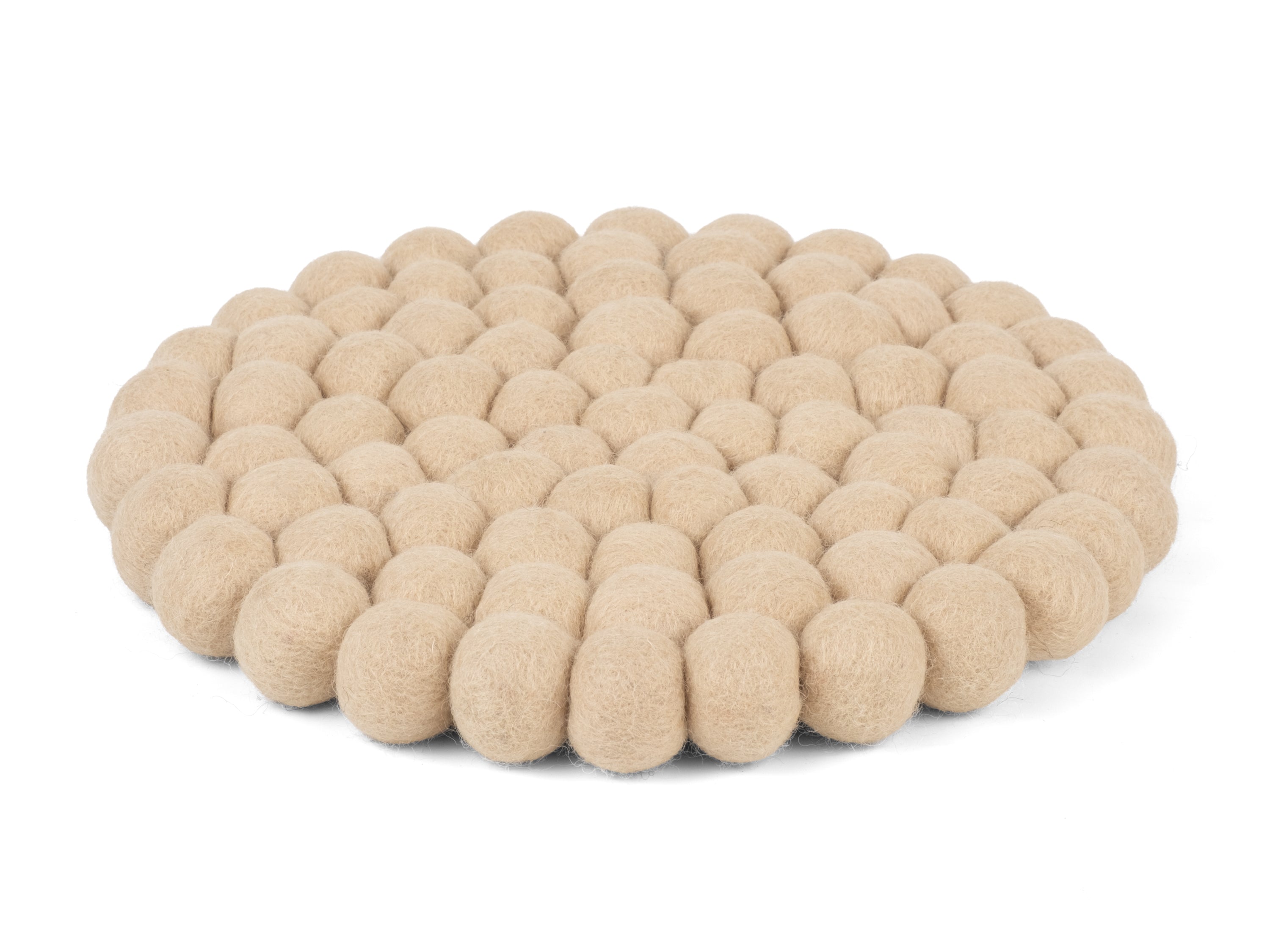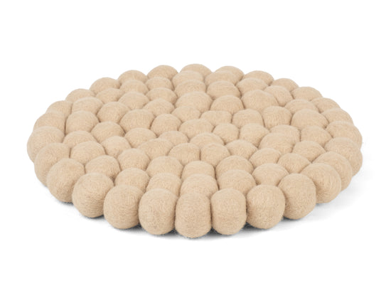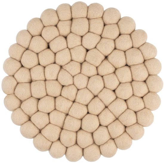 Runder, beiger Topfuntersetzer aus reiner Schurwolle