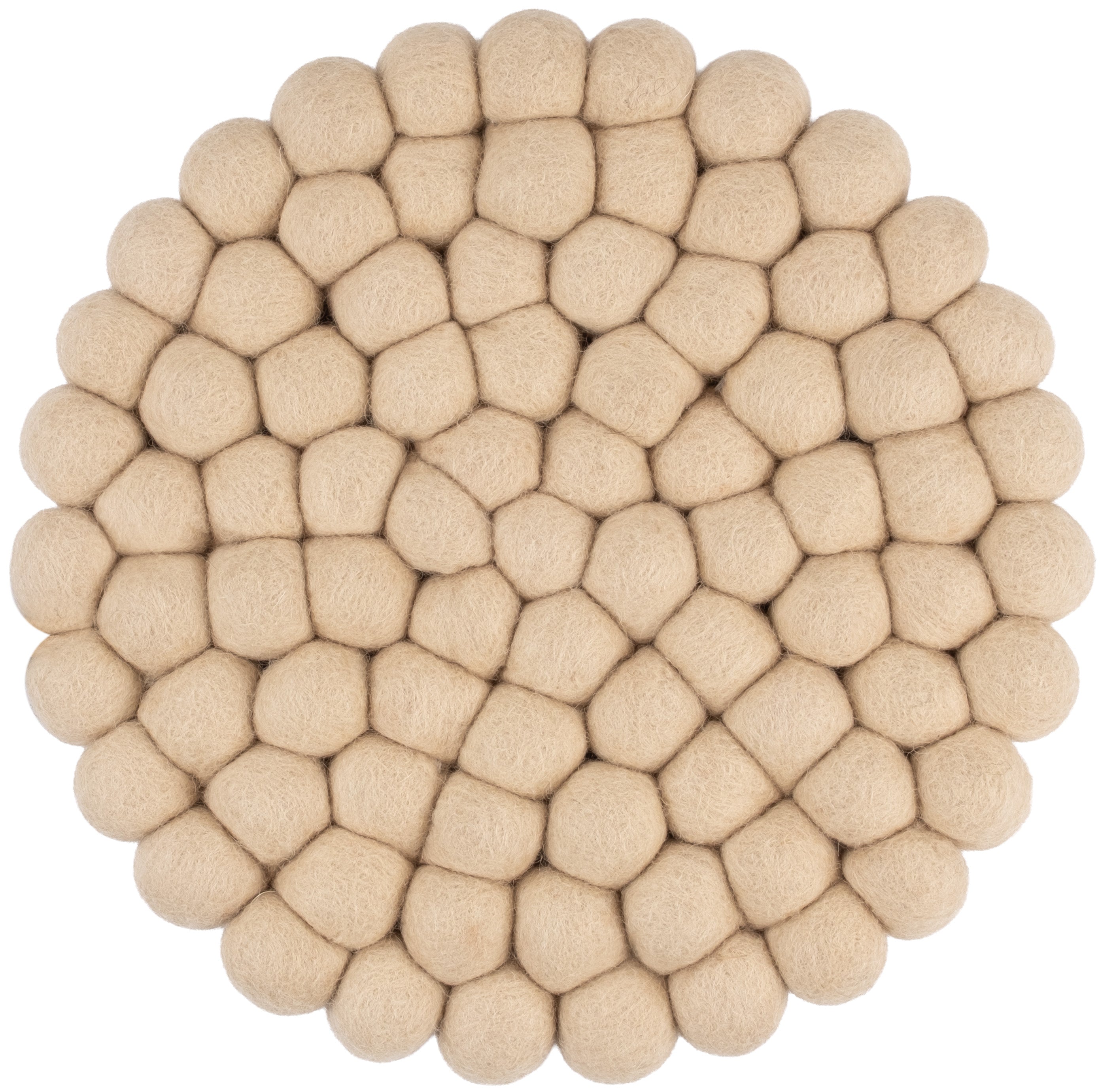 Der Topfuntersetzer Levi in der Farbe Beige verbindet Funktion mit charmanter Optik. Robust, hitzebeständig, wasser- und schmutzabweisend sowie beidseitig verwendbar. Gefertigt aus reiner Schurwolle, von Hand in Nepal hergestellt und unter fairen Bedingungen produziert.