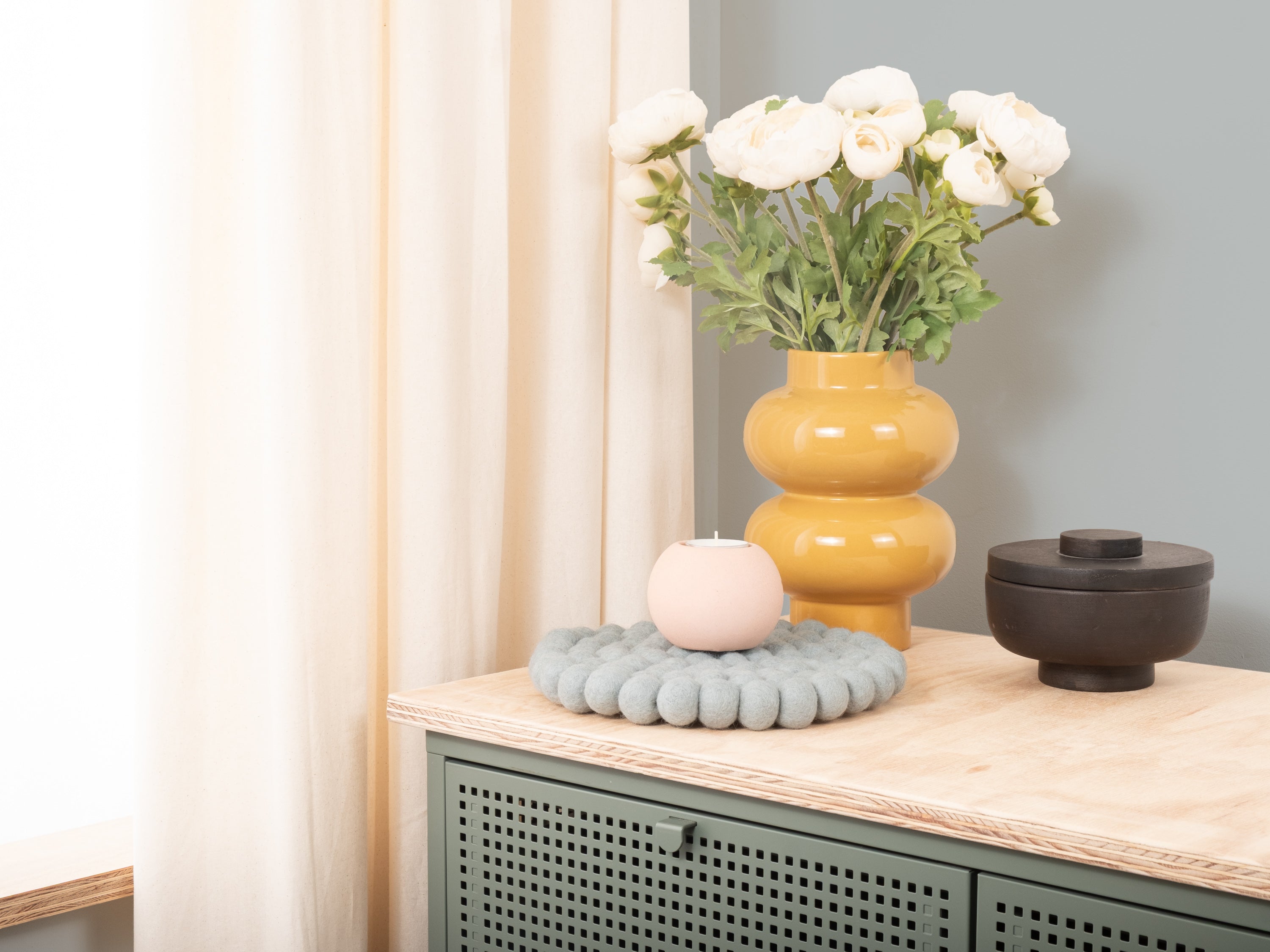 Der Topfuntersetzer Liv in der Farbe Hellblau verbindet Funktion mit charmanter Optik. Robust, hitzebeständig, wasser- und schmutzabweisend sowie beidseitig verwendbar. Gefertigt aus reiner Schurwolle, von Hand in Nepal hergestellt und unter fairen Bedingungen produziert.