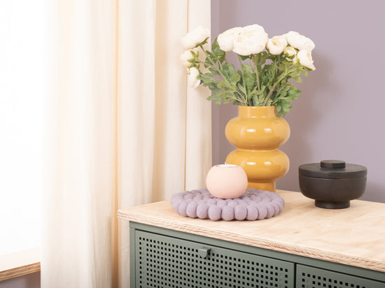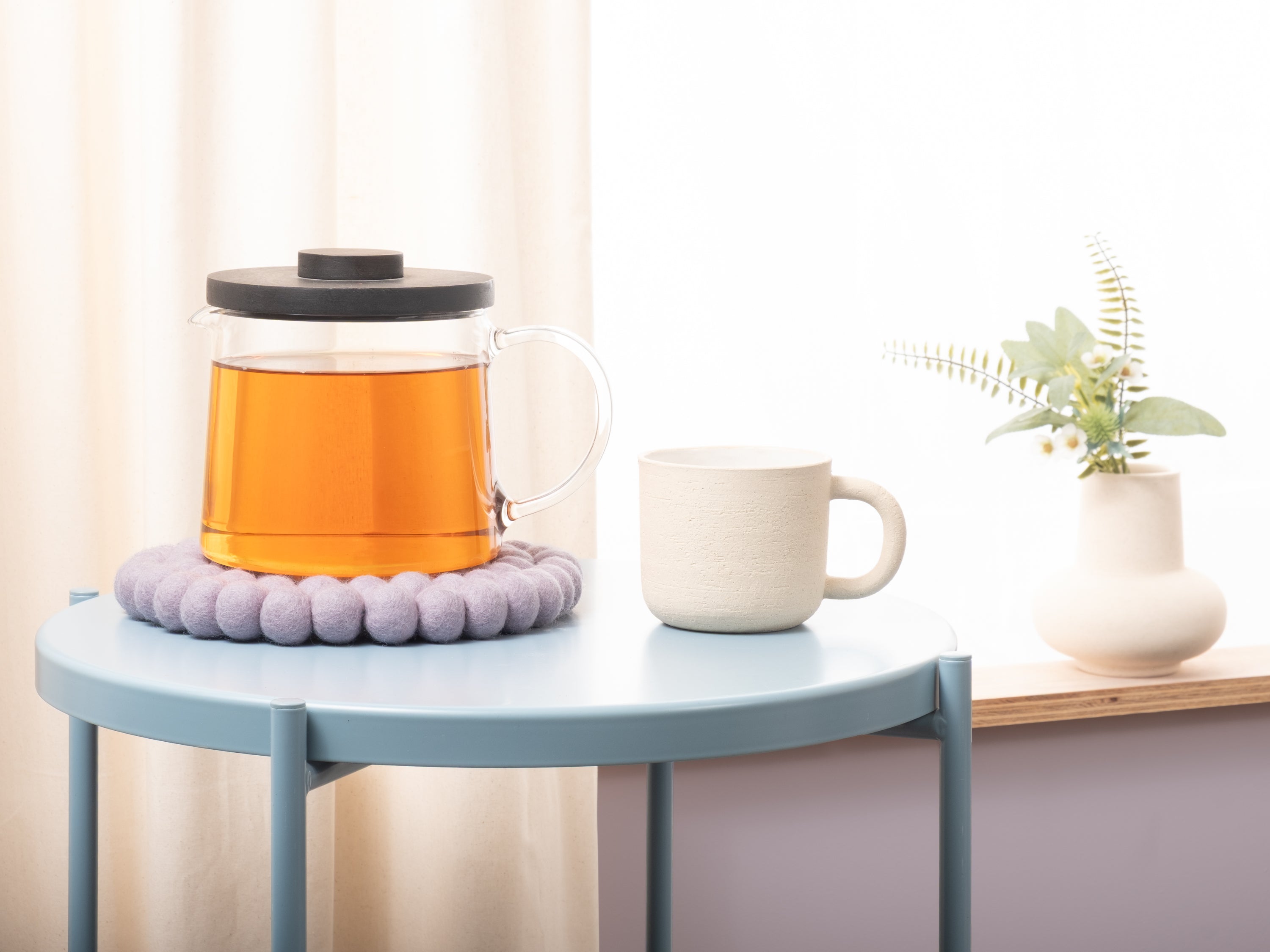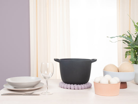 Der Topfuntersetzer Marla in der Farbe Hell violett verbindet Funktion mit charmanter Optik. Robust, hitzebeständig, wasser- und schmutzabweisend sowie beidseitig verwendbar. Gefertigt aus reiner Schurwolle, von Hand in Nepal hergestellt und unter fairen Bedingungen produziert.