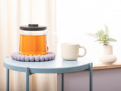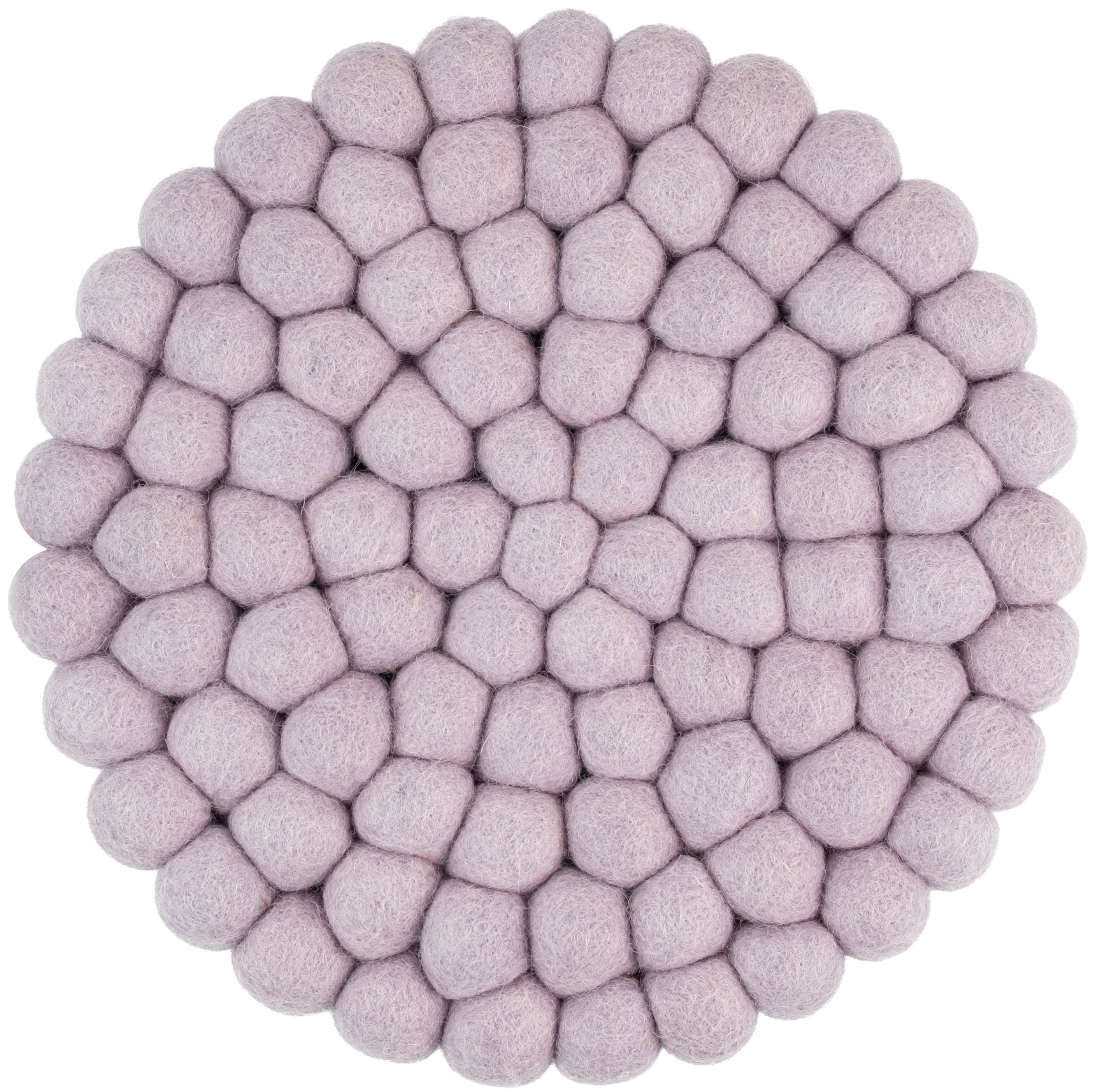 Runder, hellvioletter Topfuntersetzer aus reiner Schurwolle