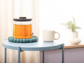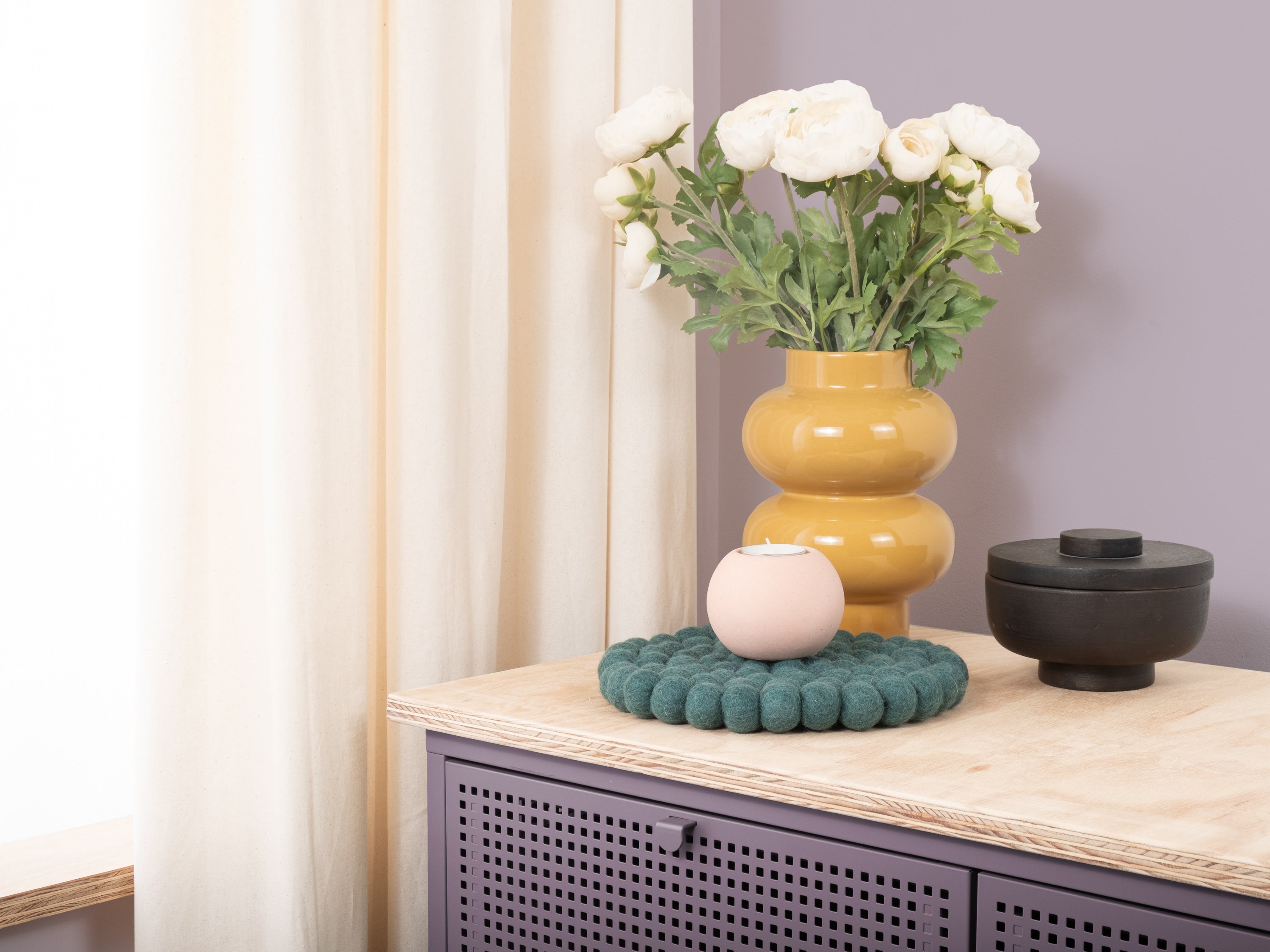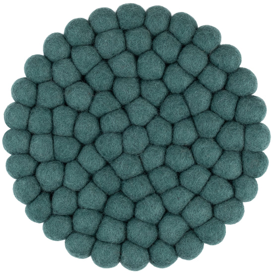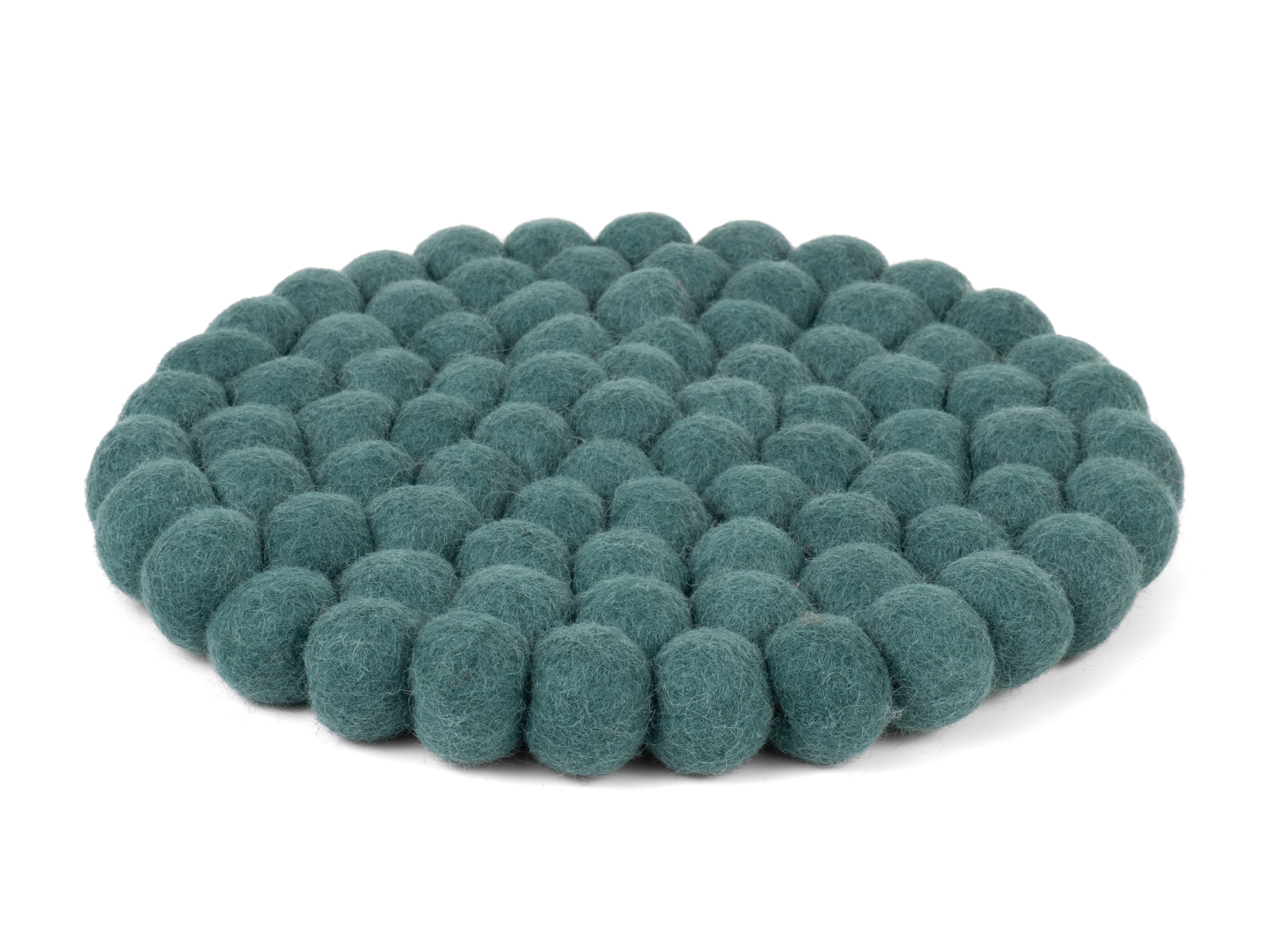 Runder, petrolfarbener Topfuntersetzer aus reiner Schurwolle