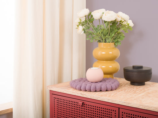 Der Topfuntersetzer Tove in der Farbe Fliedergrau verbindet Funktion mit charmanter Optik. Robust, hitzebeständig, wasser- und schmutzabweisend sowie beidseitig verwendbar. Gefertigt aus reiner Schurwolle, von Hand in Nepal hergestellt und unter fairen Bedingungen produziert.