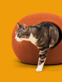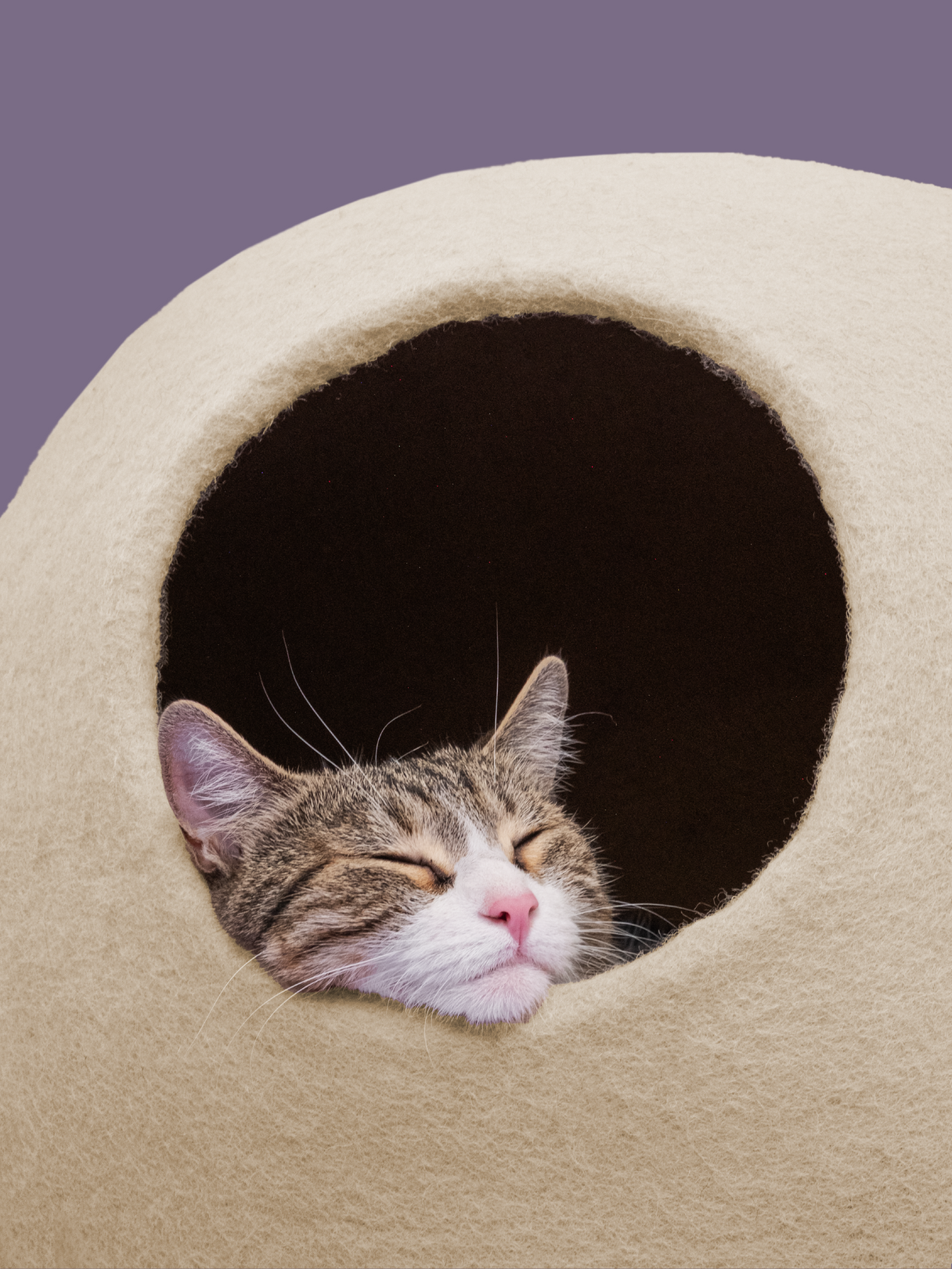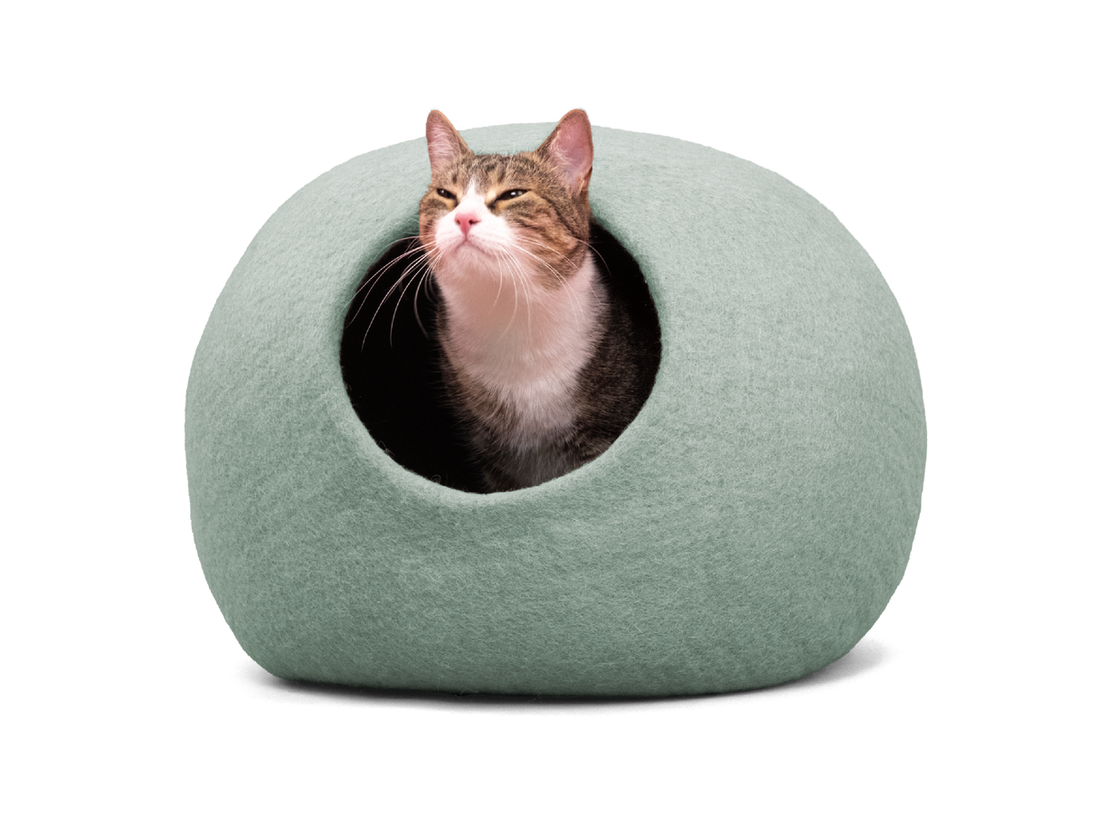 In den aus reiner Schurwolle handgefertigten Höhlen und Körben fühlen sich kleine und große Katzen wohl und geborgen. Das nachhaltige Material ist dank des natürlichen Wollfetts pflegeleicht, hygienisch und antibakteriell. Wollfilz besitzt antistatische Eigenschaften und ist temperaturregulierend. Die Ruheoasen aus Filz sind im Winter warm und behaglich und im Sommer angenehm kühl.