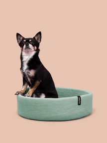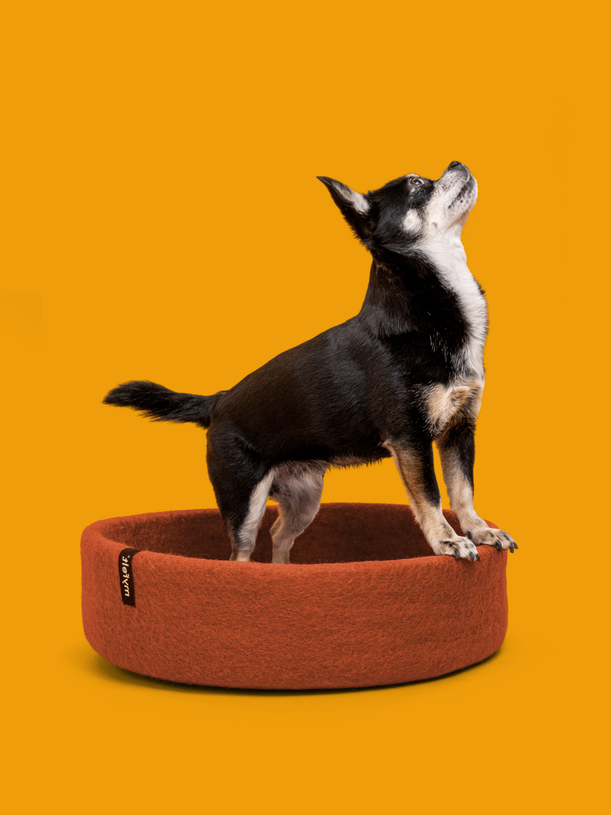In dem aus reiner Schurwolle handgefertigten Hundekorb fühlen sich kleine und große Hunde wohl und geborgen. Mit einem Durchmesser von 40 cm oder 60 cm, in drei Farben und sechs verschiedenfarbigen Inlays, sind eine Vielzahl an Farbkombinationen möglich. Das fest gefilzte Material bietet Formstabilität auf höchstem Niveau und gewährleistet so jahrelange Freude.