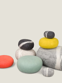 Die unifarbenen myfelt Poufs und die realistisch anmutenden Filzkieselsteine eignen sich nicht nur ideal als hochwertige Deko-Elemente im Wohnraum. Auch als bequeme und naturbelassene Sitzkissen oder als weicher Hocker für autogenes Training, Yoga und Meditation sind sie beliebt und in verschiedenen Größen erhältlich.